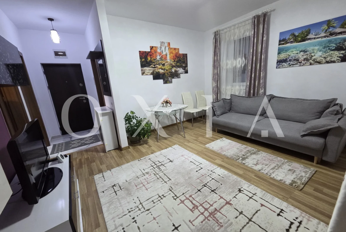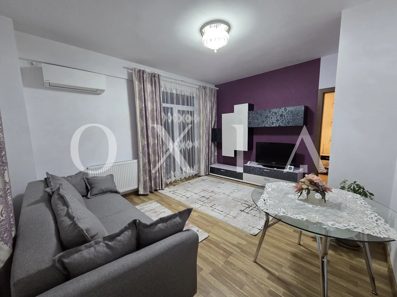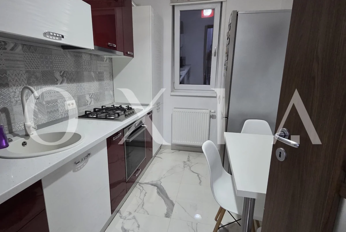 OXIA The Real Estate Agency prezinta spre inchiriere apartament cu 2 camere, situat in Timisoara, Girocului, zona benzinariei Eso, la etajul 6/8, in imobil dotat cu 2 lifturi, semidecomandat, cu suprafata de 43 mp utili+ 11,79 mp terasa, compartimentat astfel: