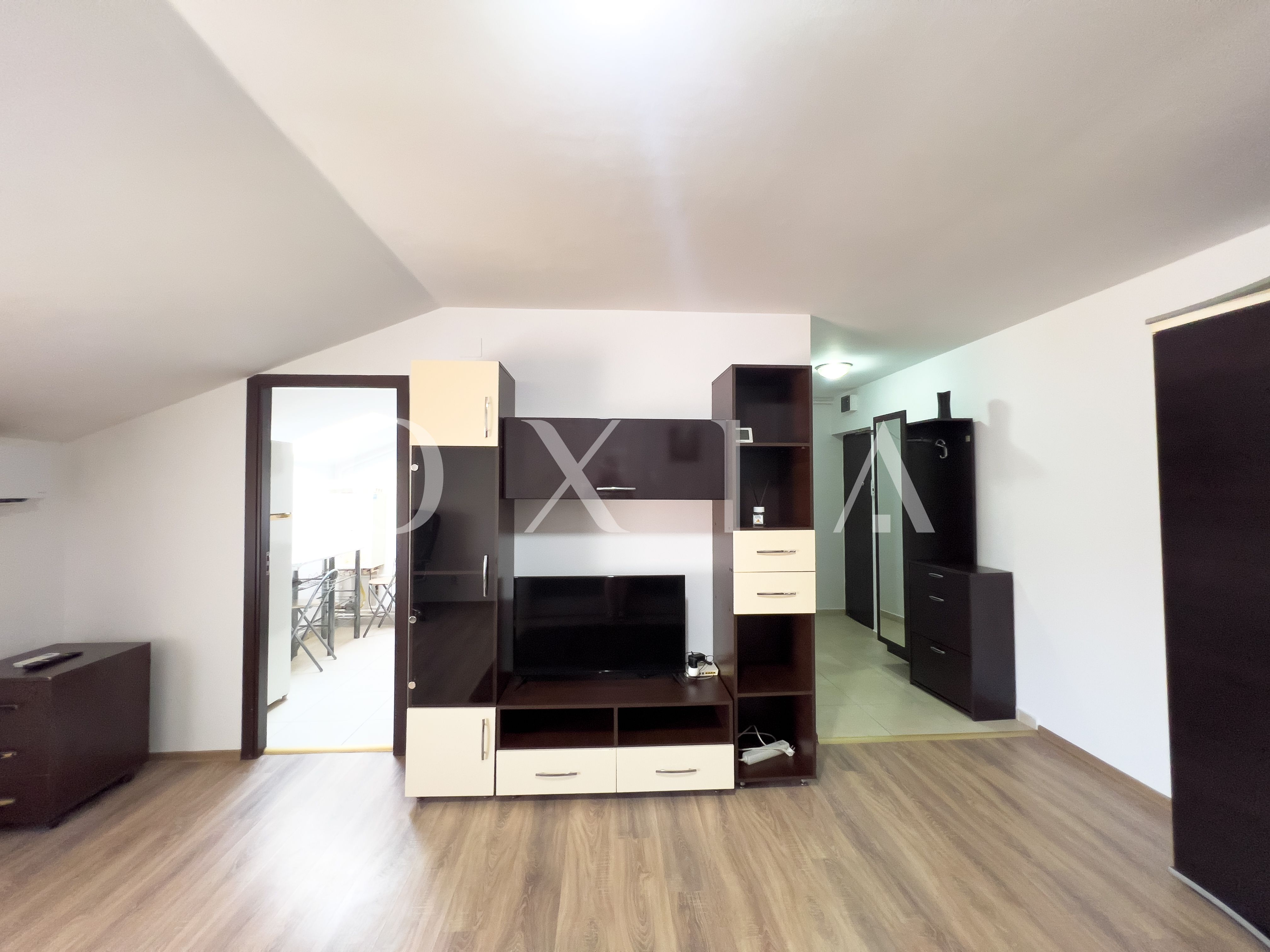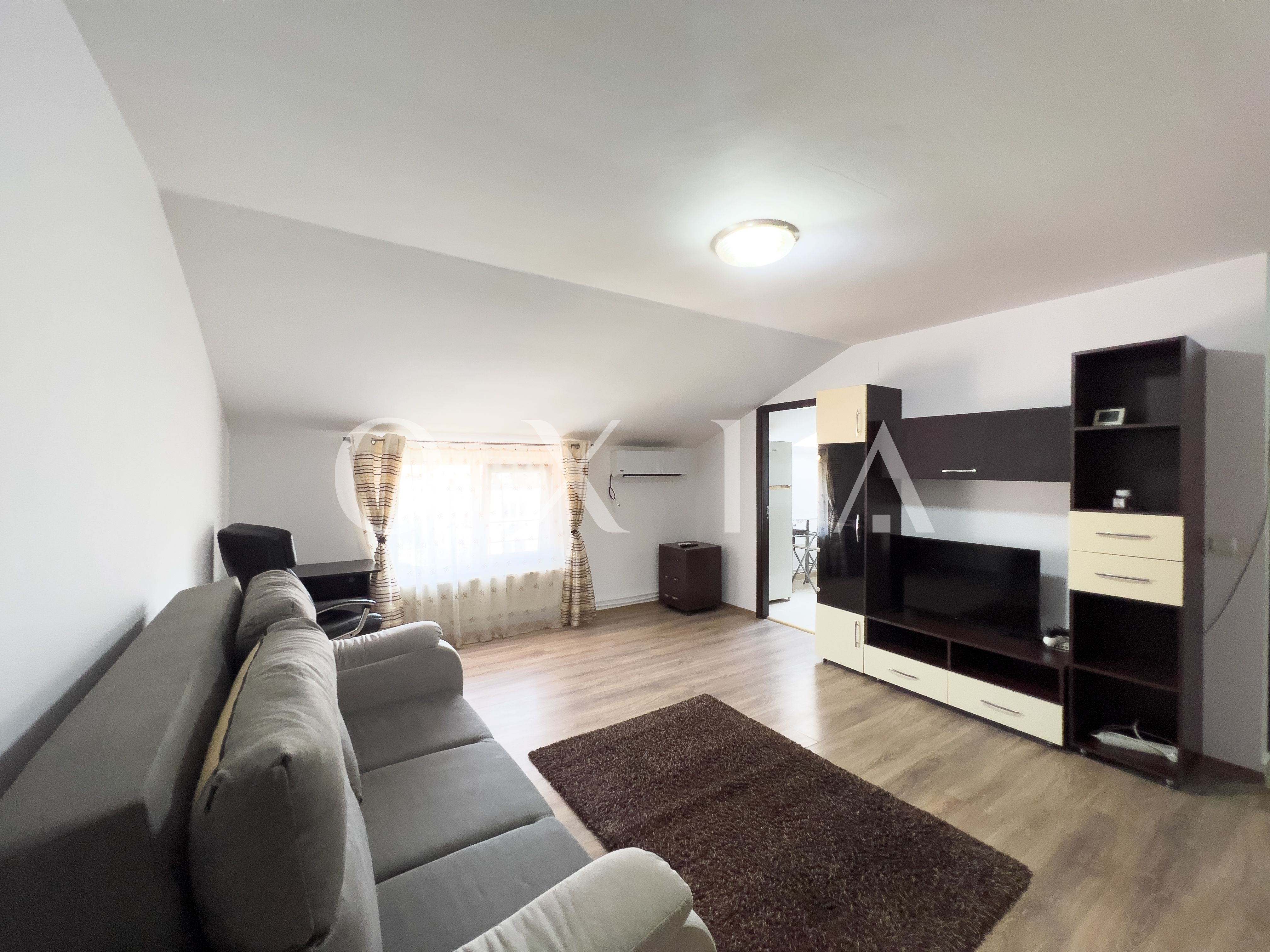OXIA prezinta spre vanzare apartament cu 1 camera in Timisoara, zona Girocului, situat la mansarda unui imobil cu 4 etaje finalizata in anul 2014, cu suprafata de 36 MP utili, semidecomandat, compartimentat astfel: