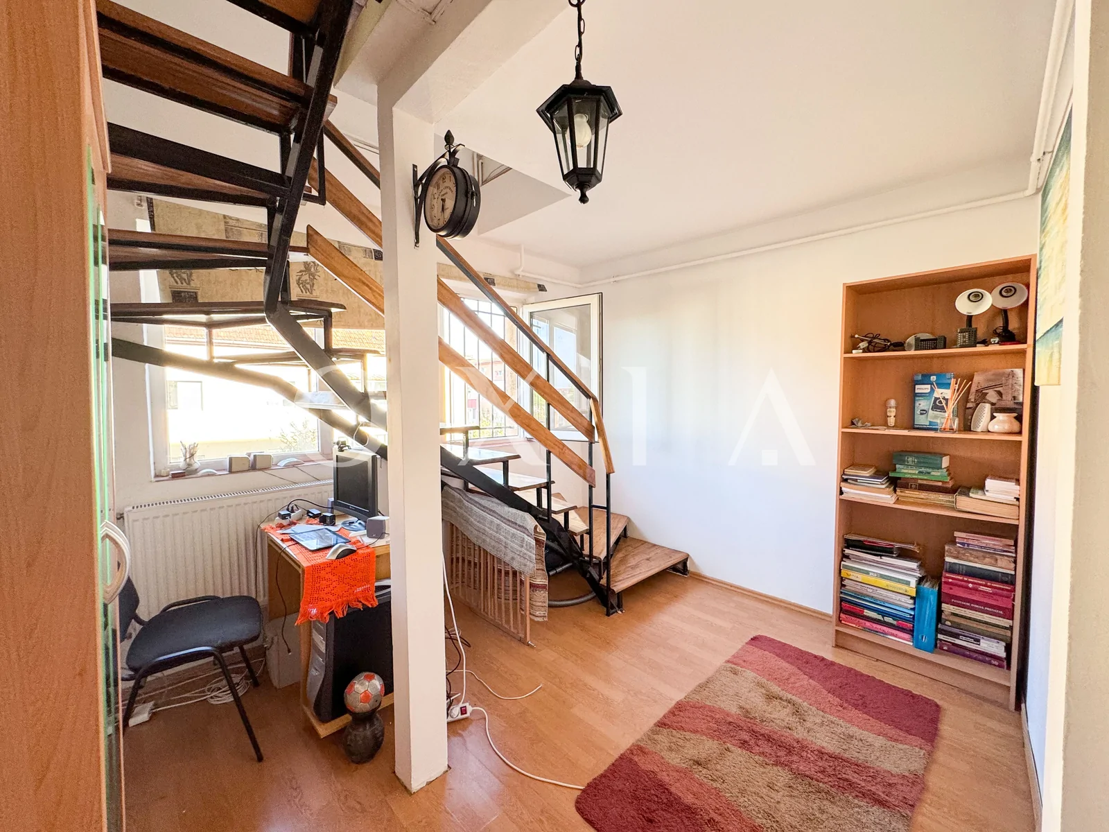 – birou(cu scara care duce spre mansarda)