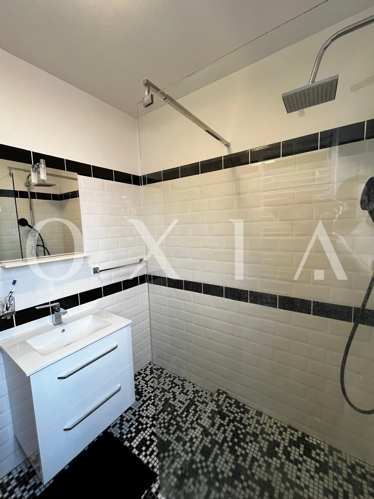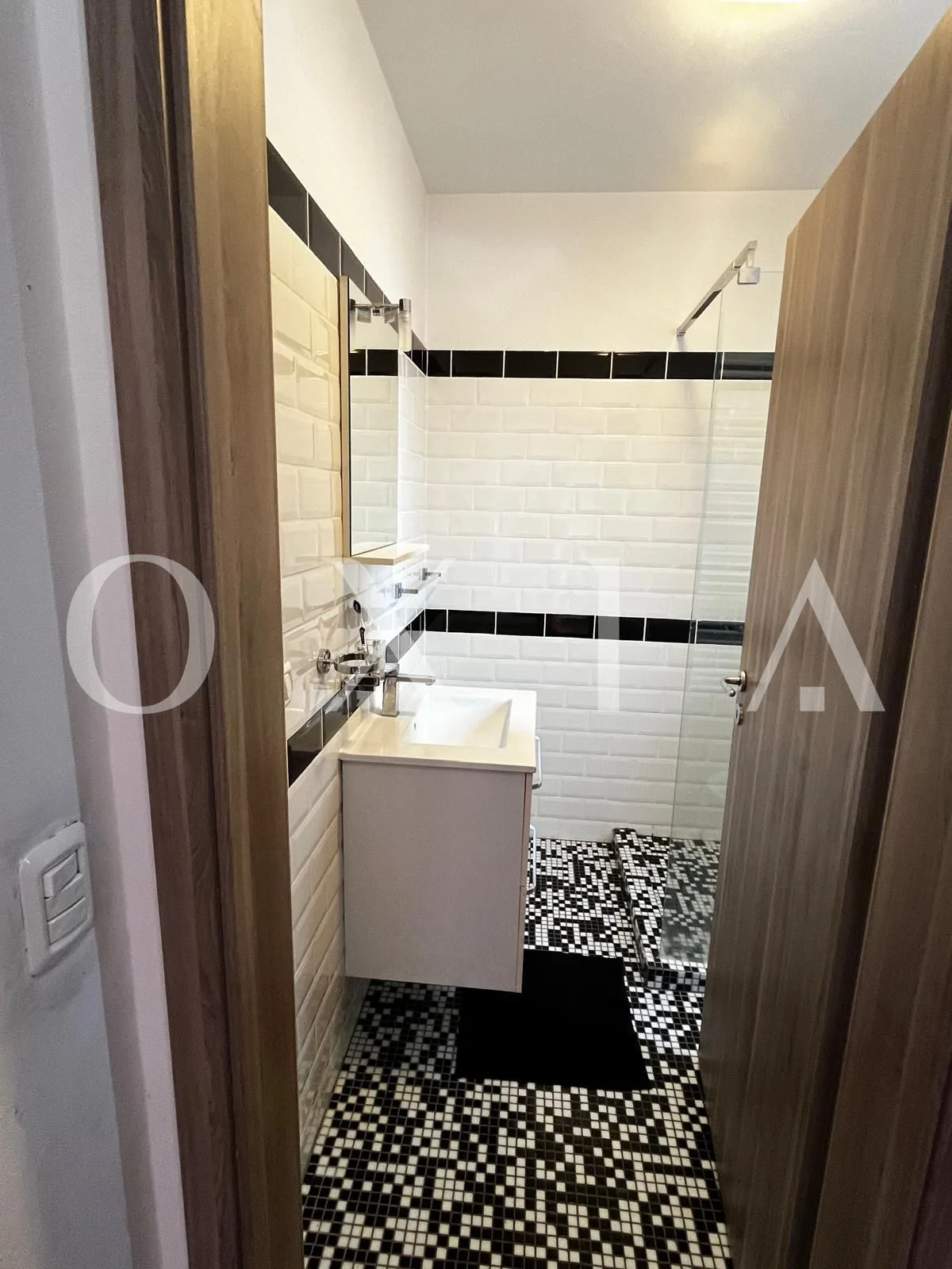 Baie cu cabina de dus si geam
