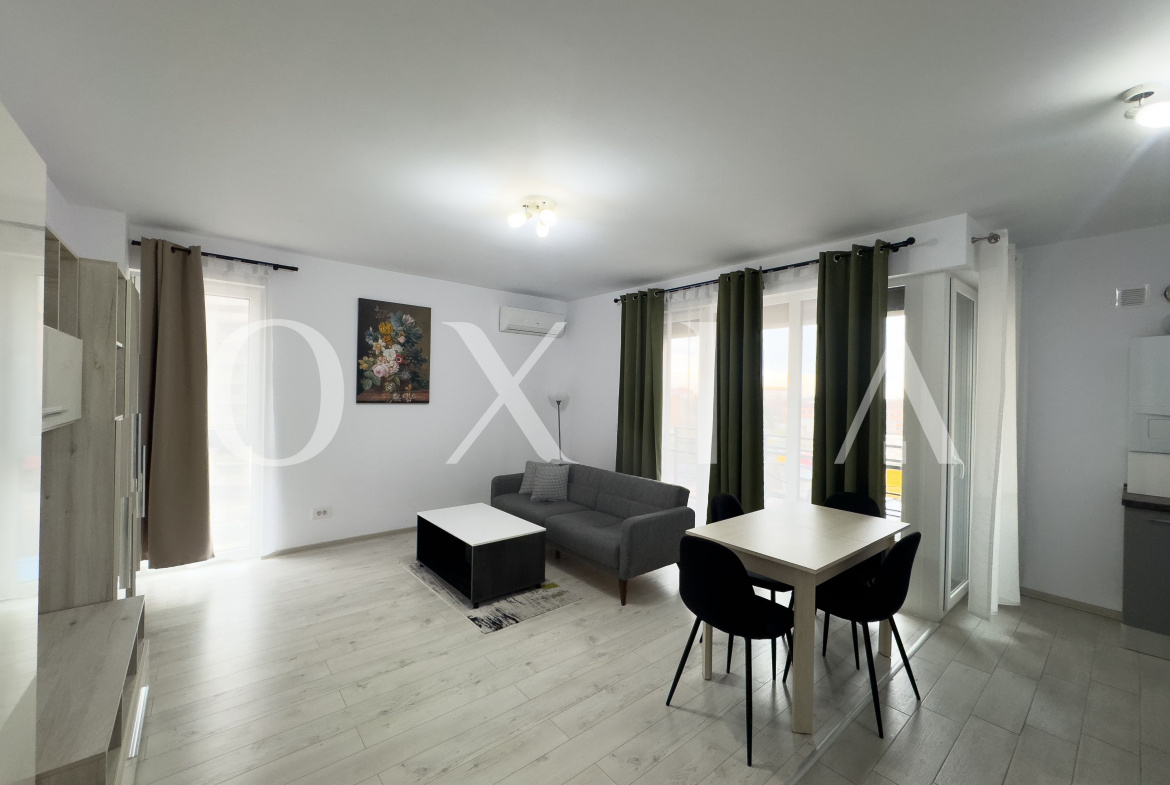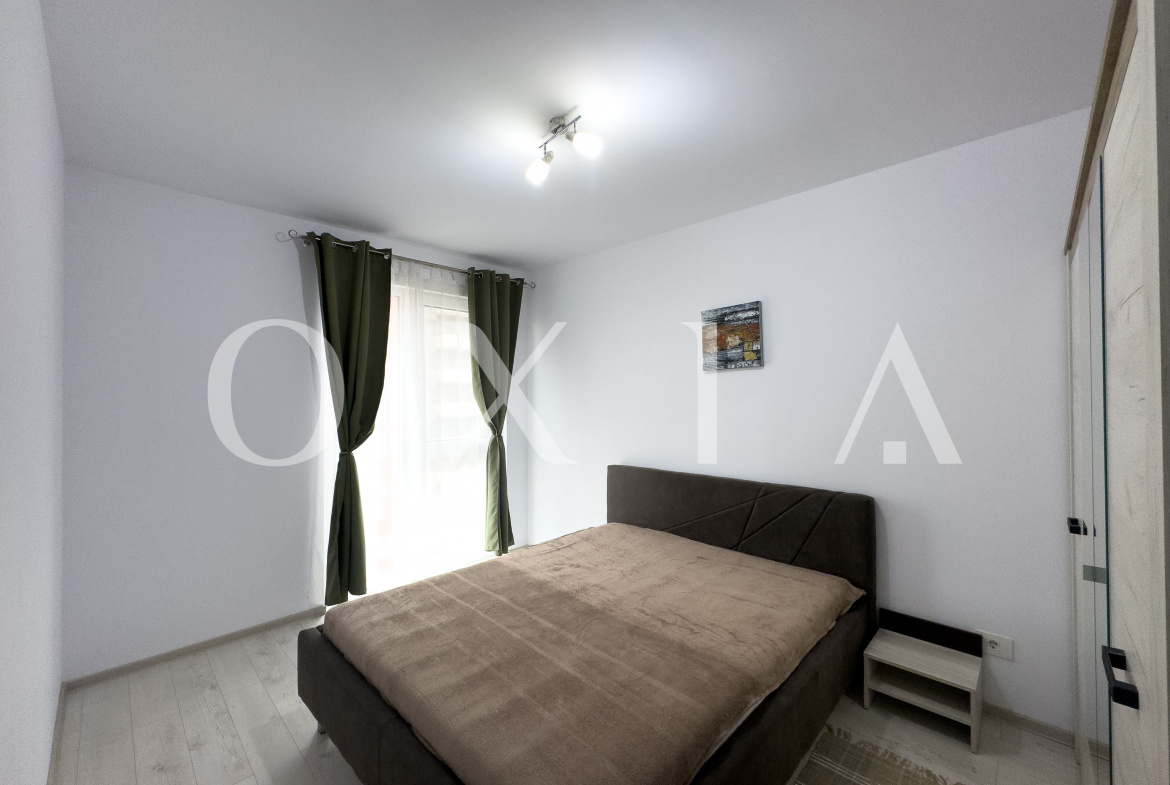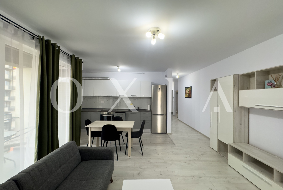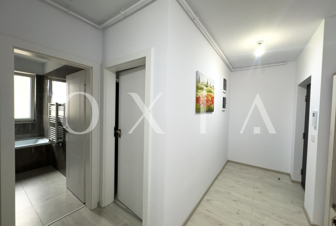 OXIA prezinta in exclusivitate spre inchiriere apartament cu 2 camere in Timisoara, zona Aradului, situat in complexul rezidential Iris Armonia, la etajul 5, imobil cu 2 lifturi pe scara, decomandat, cu suprafata de 53 MP utili, compartimentat astfel: