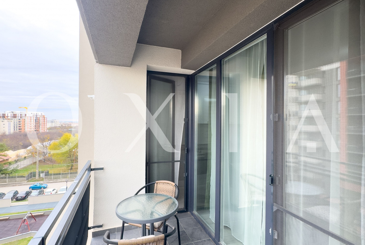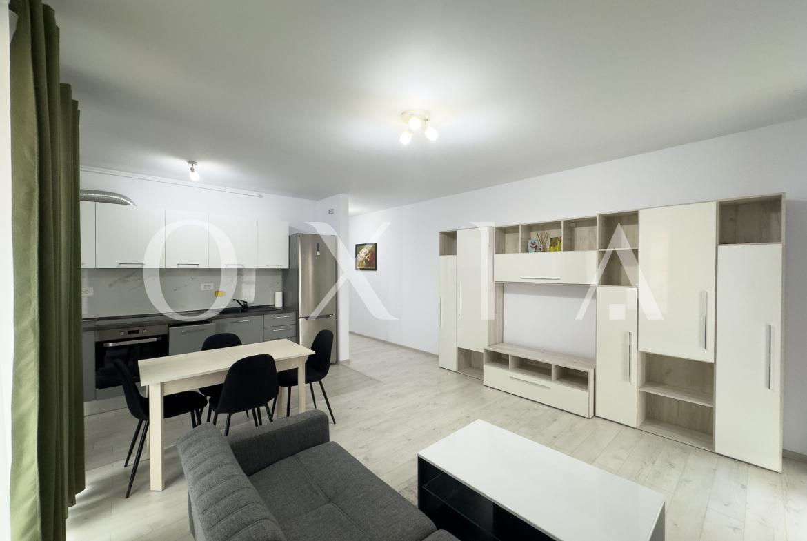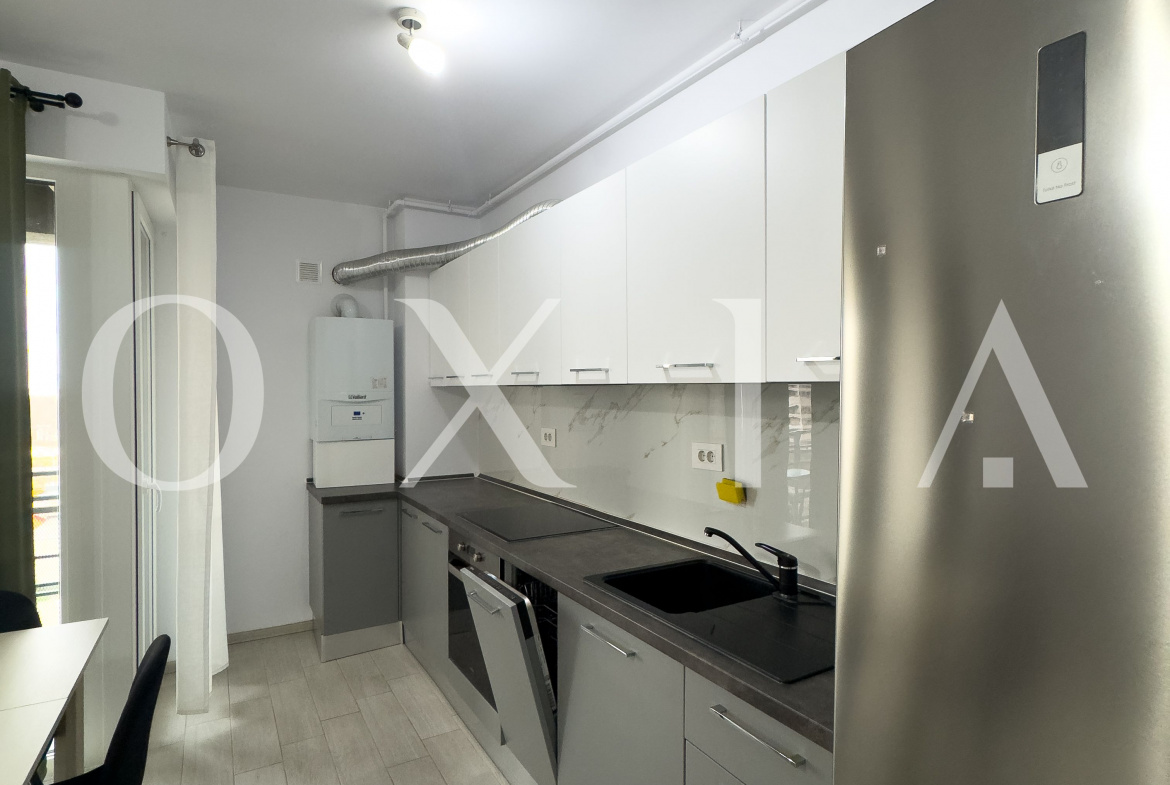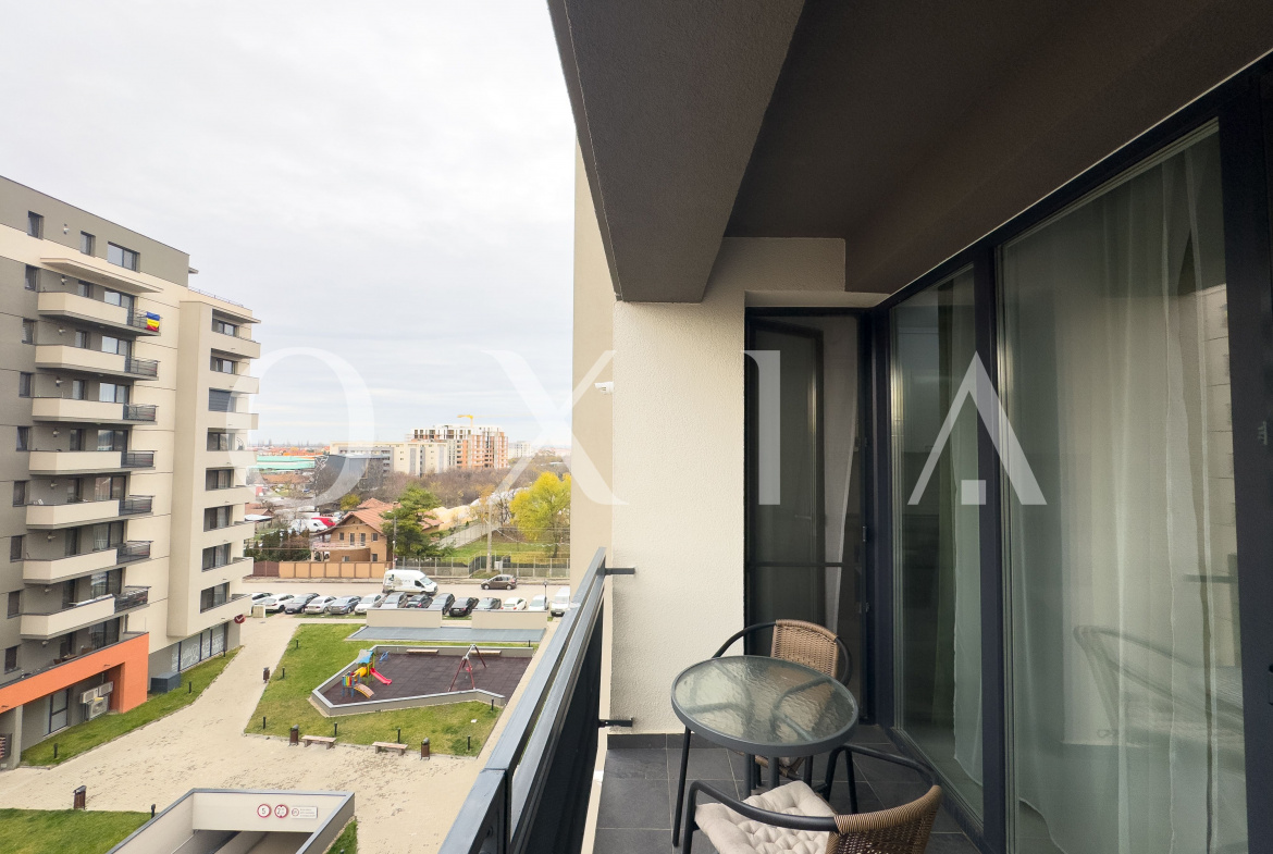 OXIA prezinta in exclusivitate spre inchiriere apartament cu 2 camere in Timisoara, zona Aradului, situat in complexul rezidential Iris Armonia, la etajul 5, imobil cu 2 lifturi pe scara, decomandat, cu suprafata de 53 MP utili, compartimentat astfel:
