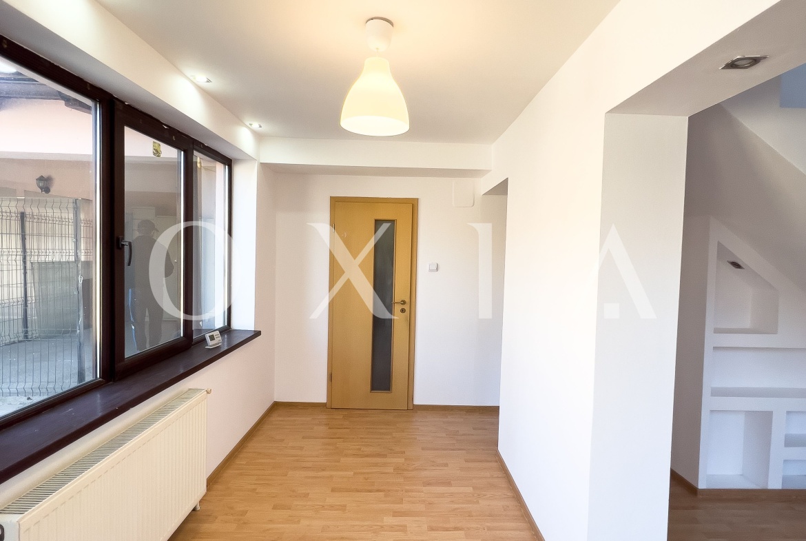 OXIA prezinta spre inchiriere casa formata din doua corpuri situata in Timisoara, zona Buziasului, strada Torac, cu suprafata de aproximativ 220 MP utili, compartimentata astfel:
