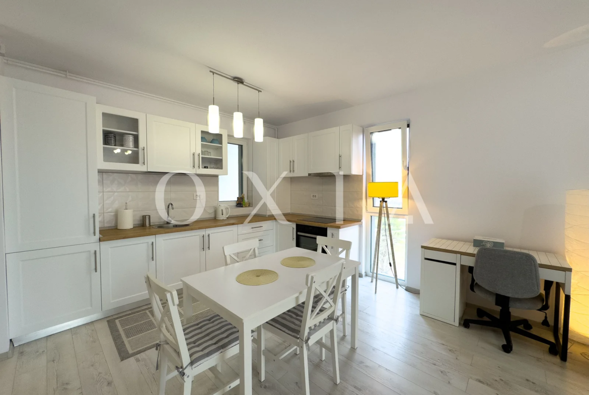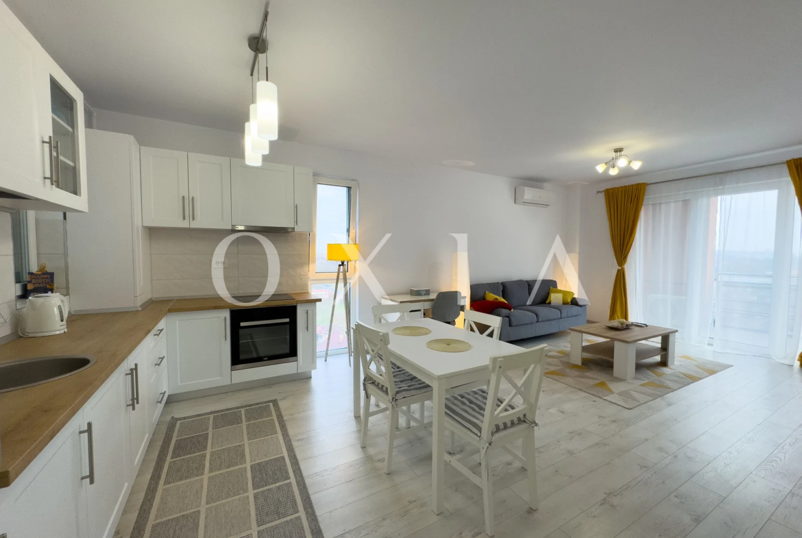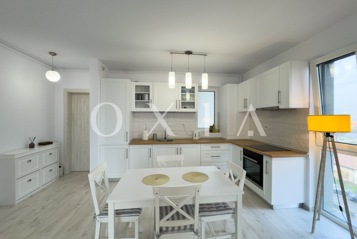 OXIA prezinta spre inchiriere apartament cu doua camere, situat in ansamblul rezidential IRIS ARMONIA din zona Aradului, imobil finalizat in anul 2020.