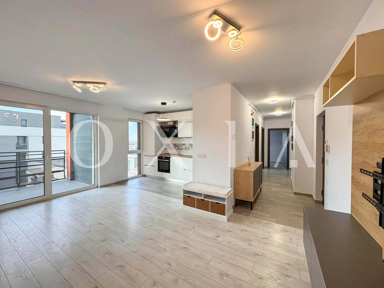 OXIA prezinta in exclusivitate spre vanzare apartament cu trei camere in Timisoara, zona Aradului, complex rezidential IRIS ARMONIA , la etajul 8 din 11 (imobil cu doua lifturi), cu suprafata de 79 MP utili + 19 MP (cele doua terase), compartimentat astfel :