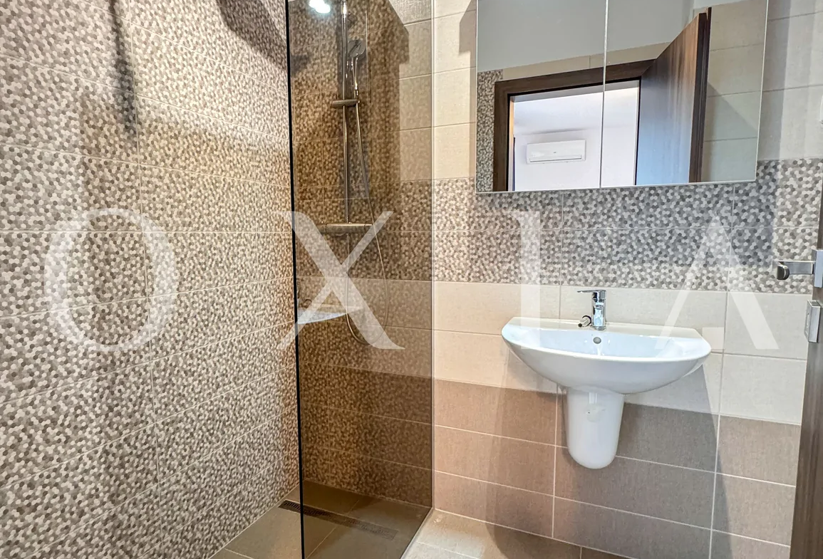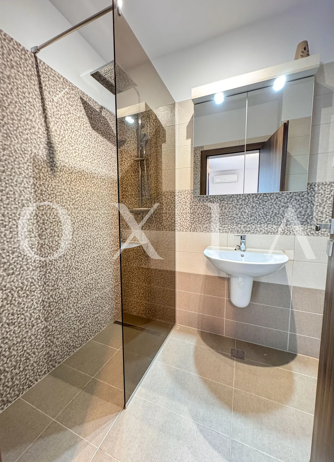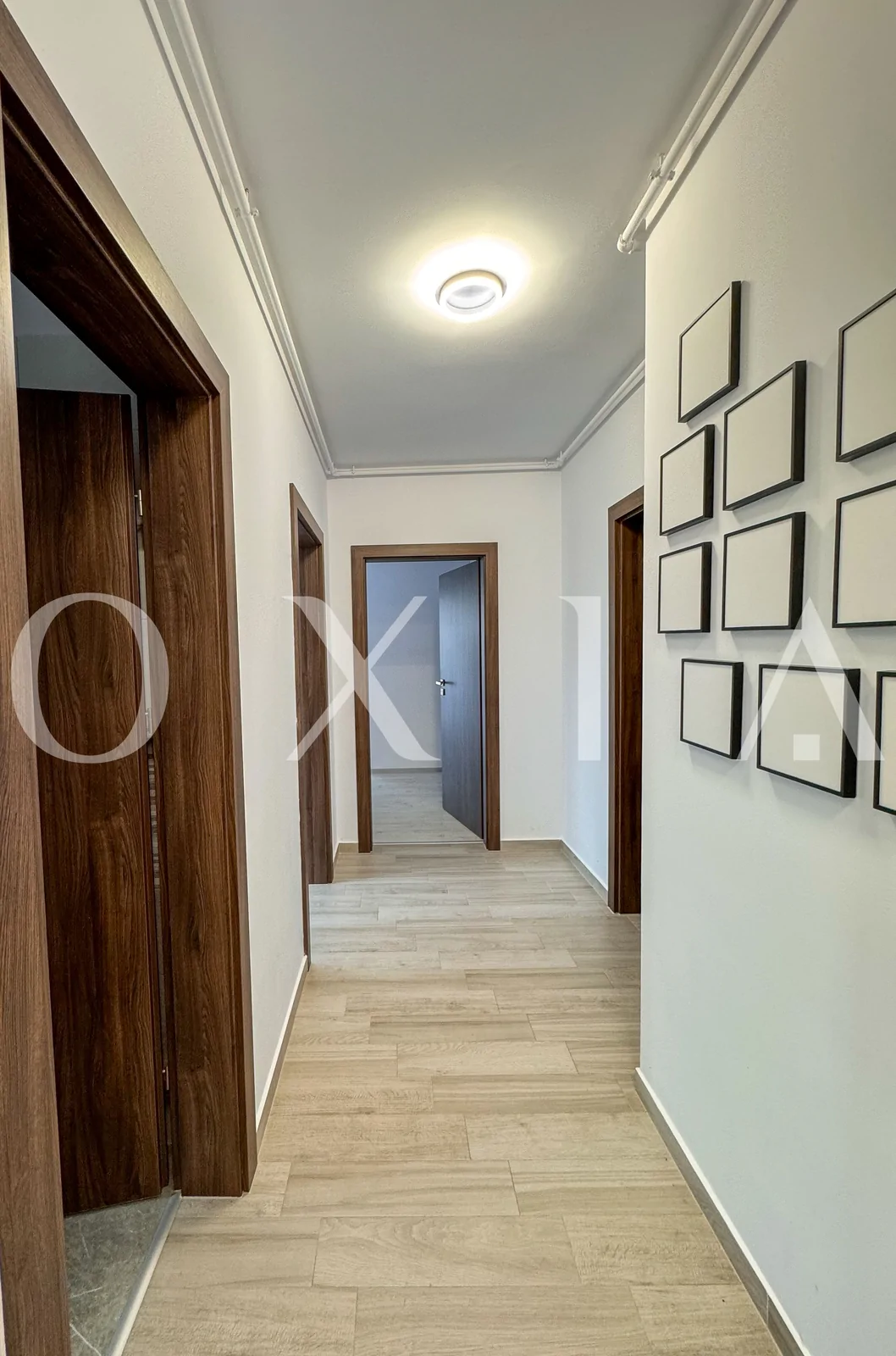 Apartamentul beneficiaza de amenajari moderne: pereti comuni dubluantifonati, usa intrare metalica antiefractie, usi interioare celulare, placi de gresie/faianta, vopsea lavabila, ferestre PVC cu geamuri tripane, sistem de alarma, videointerfon, etc.