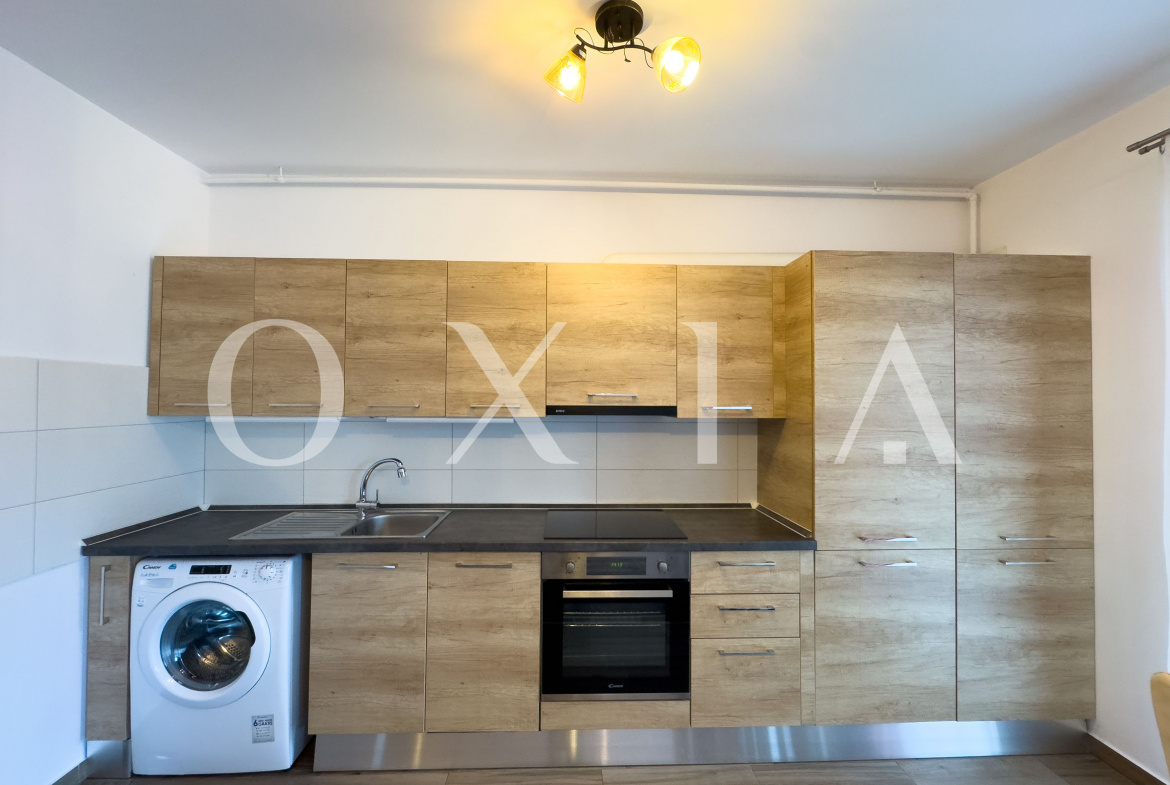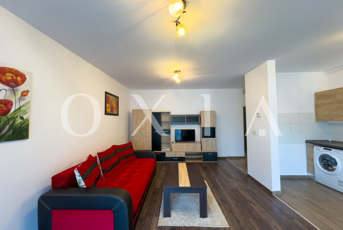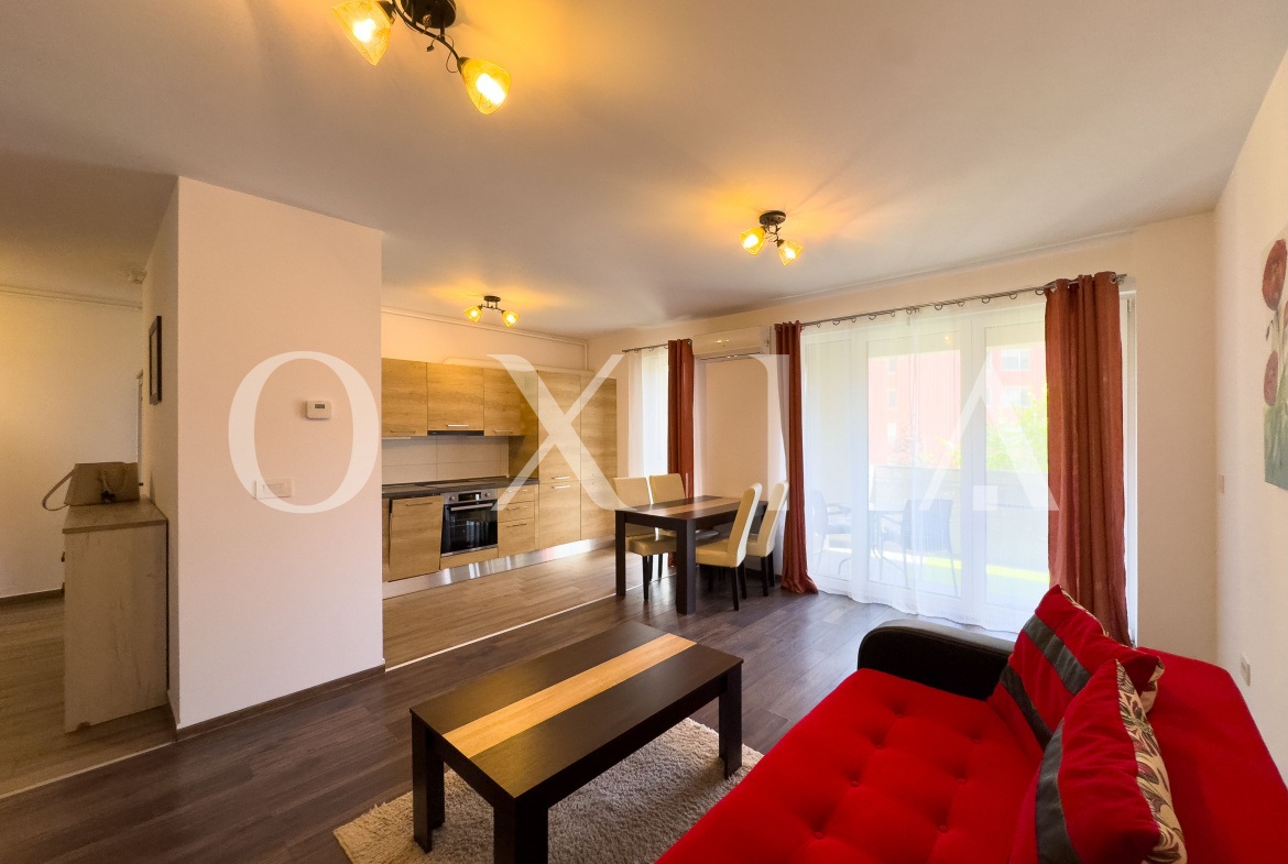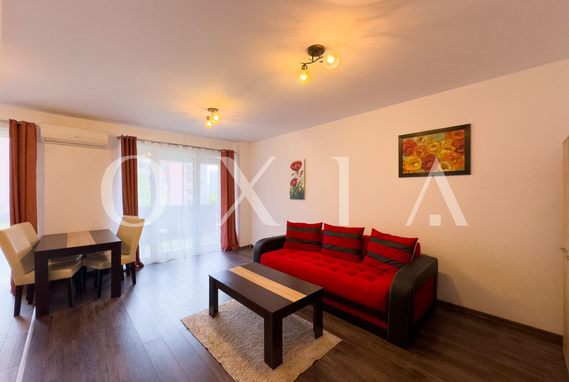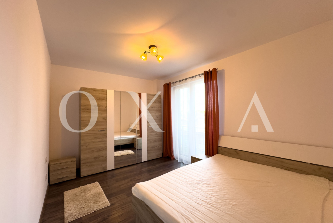 OXIA ofera spre inchiriere apartament cu 2 camere in Timisoara, zona Aradului, Complex Rezidential IRIS Armonia, situat la etajul 1 din 9, decomandat, cu suprafata de 56 MP utili + 6 MP balcon, compartimentat astfel: