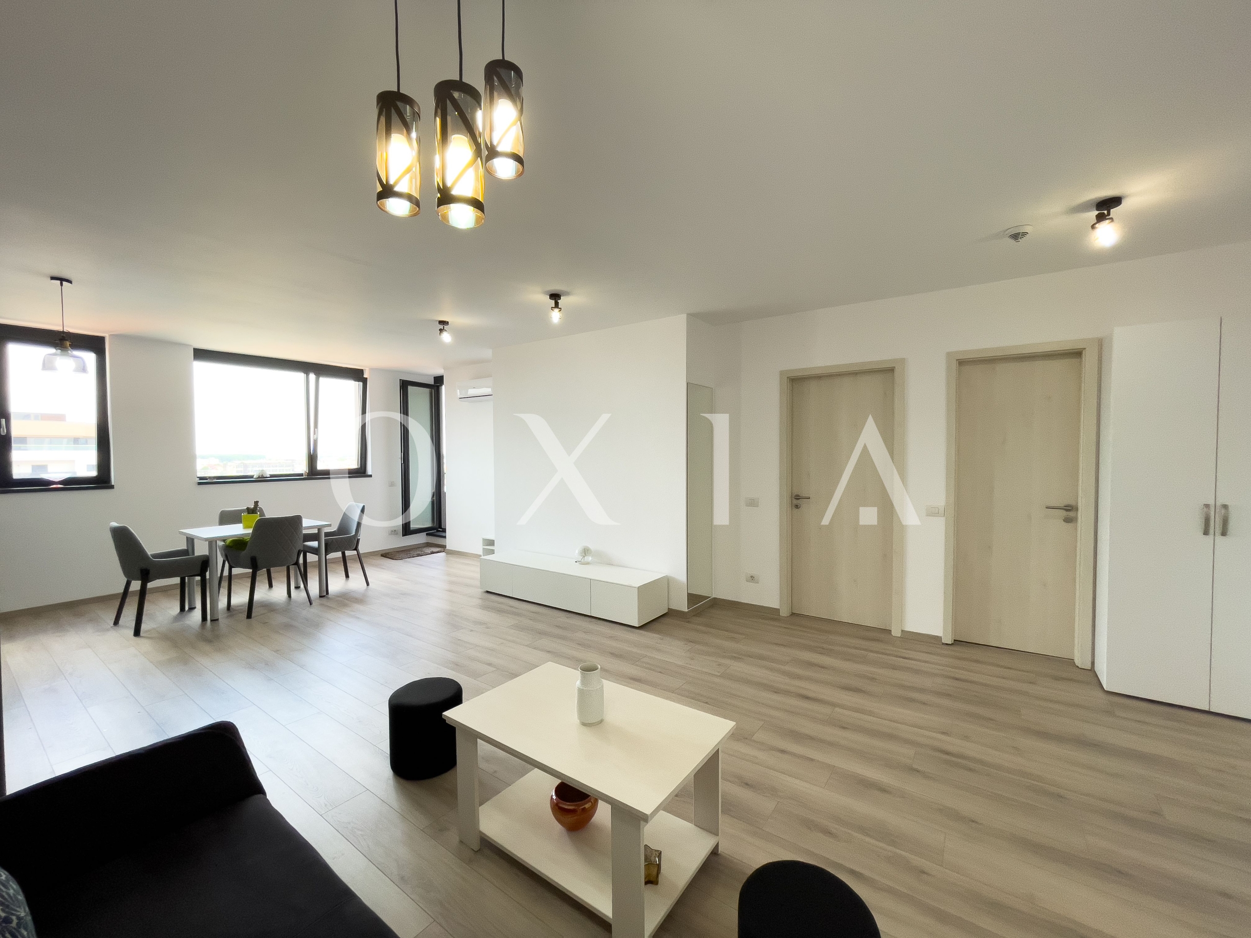 OXIA prezinta spre inchiriere apartament cu 2 camere in Timisoara, Bulevardul Take Ionescu, Complex rezidential ISHO, situat la etajul 11 din 20, cu suprafata de 57 MP utili + 6 MP terasa, compartimentat astfel: