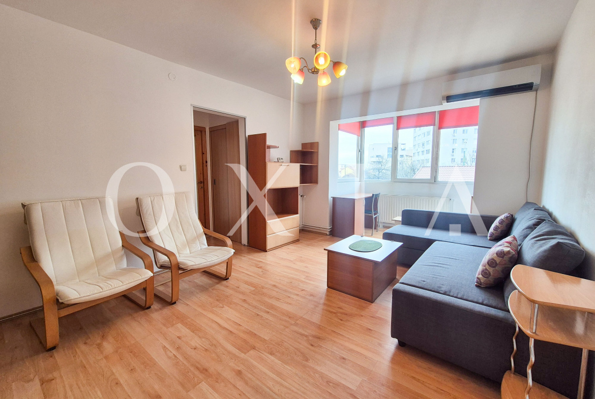 OXIA prezinta spre inchiriere apartament cu 3 camere in Timisoara, zona Spitalul Judetean, strada Crangului (in spatele cofetariei Codrina), semidecomandat, cu suprafata de 60 MP utili + doua balcoane, compartimentat astfel: