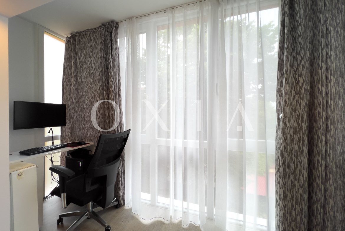 Confortul termic este asigurat prin intermediul centralei proprii pe gaz cu calorifere si prin intermediul sistemului de climatizare Daikin de 12 000 BTU.