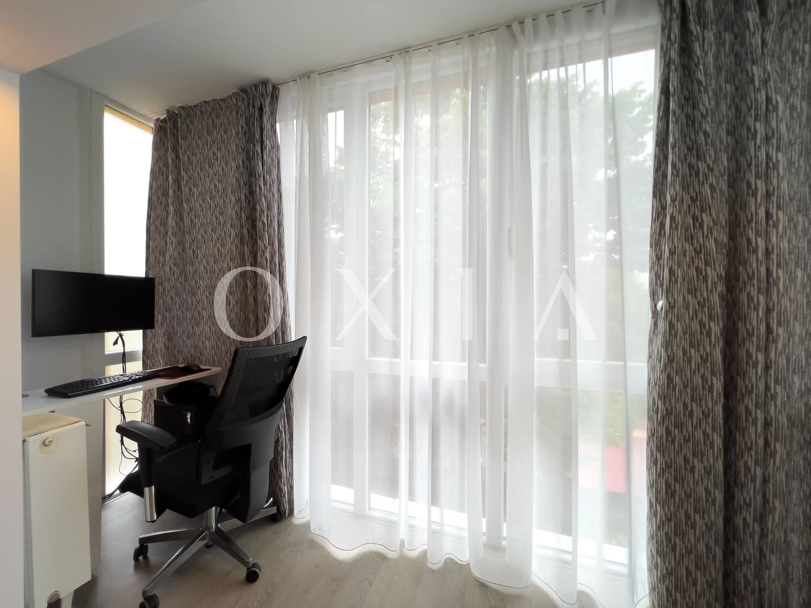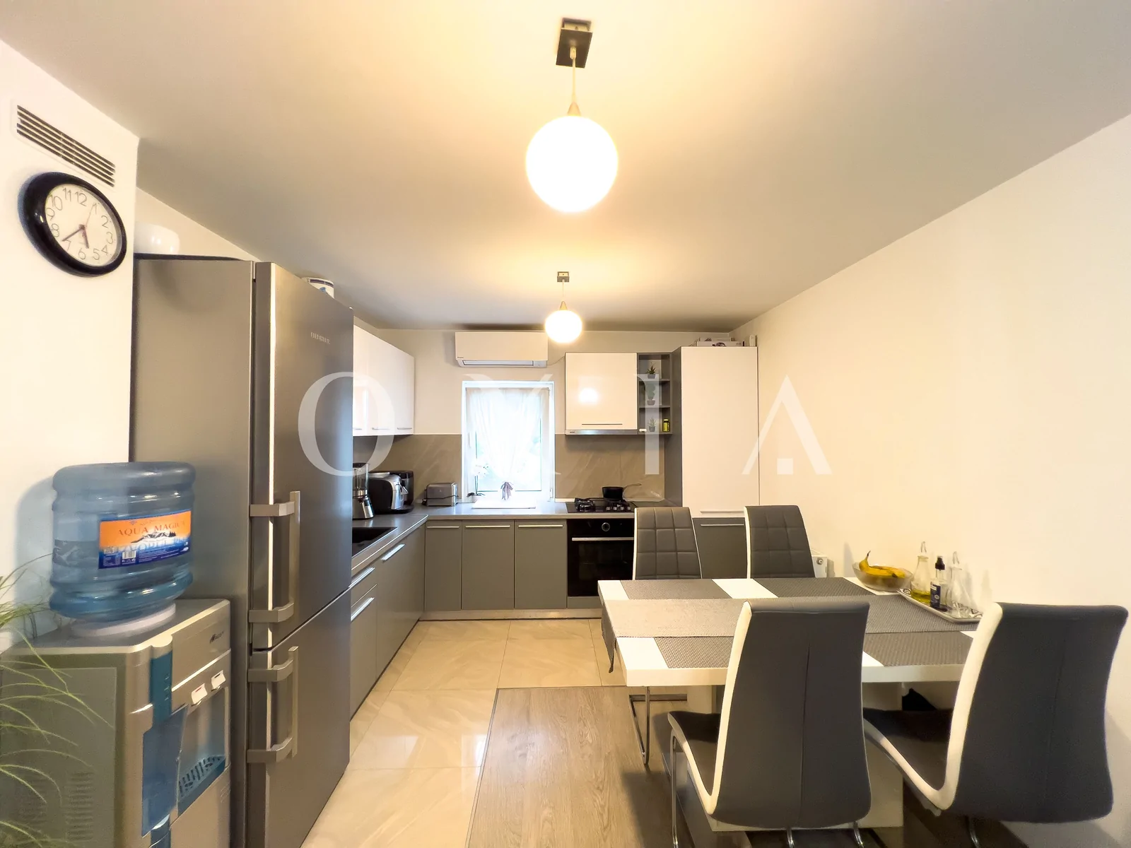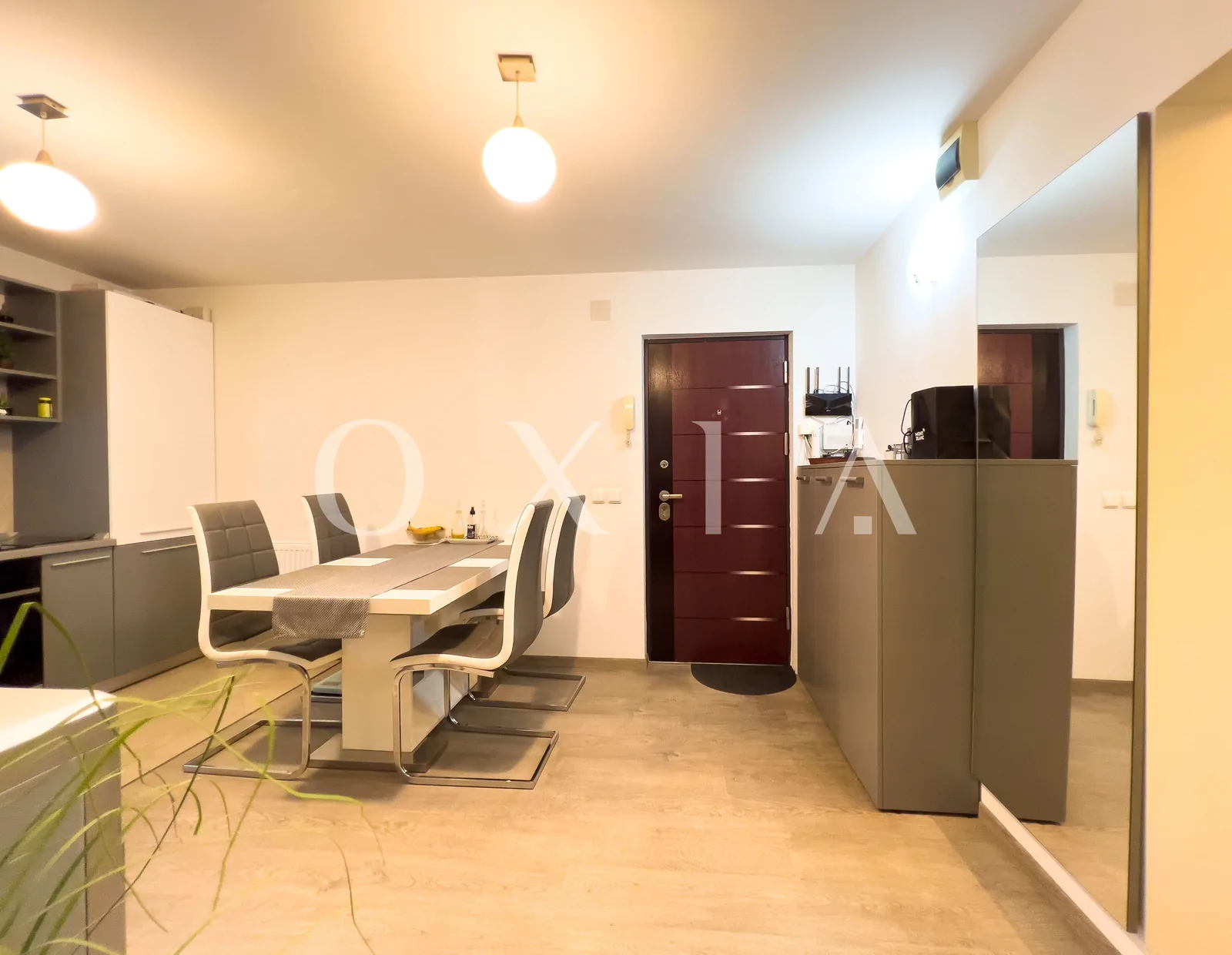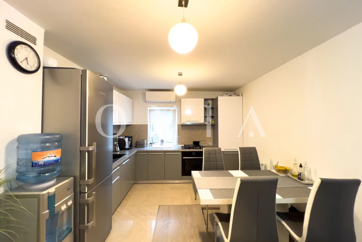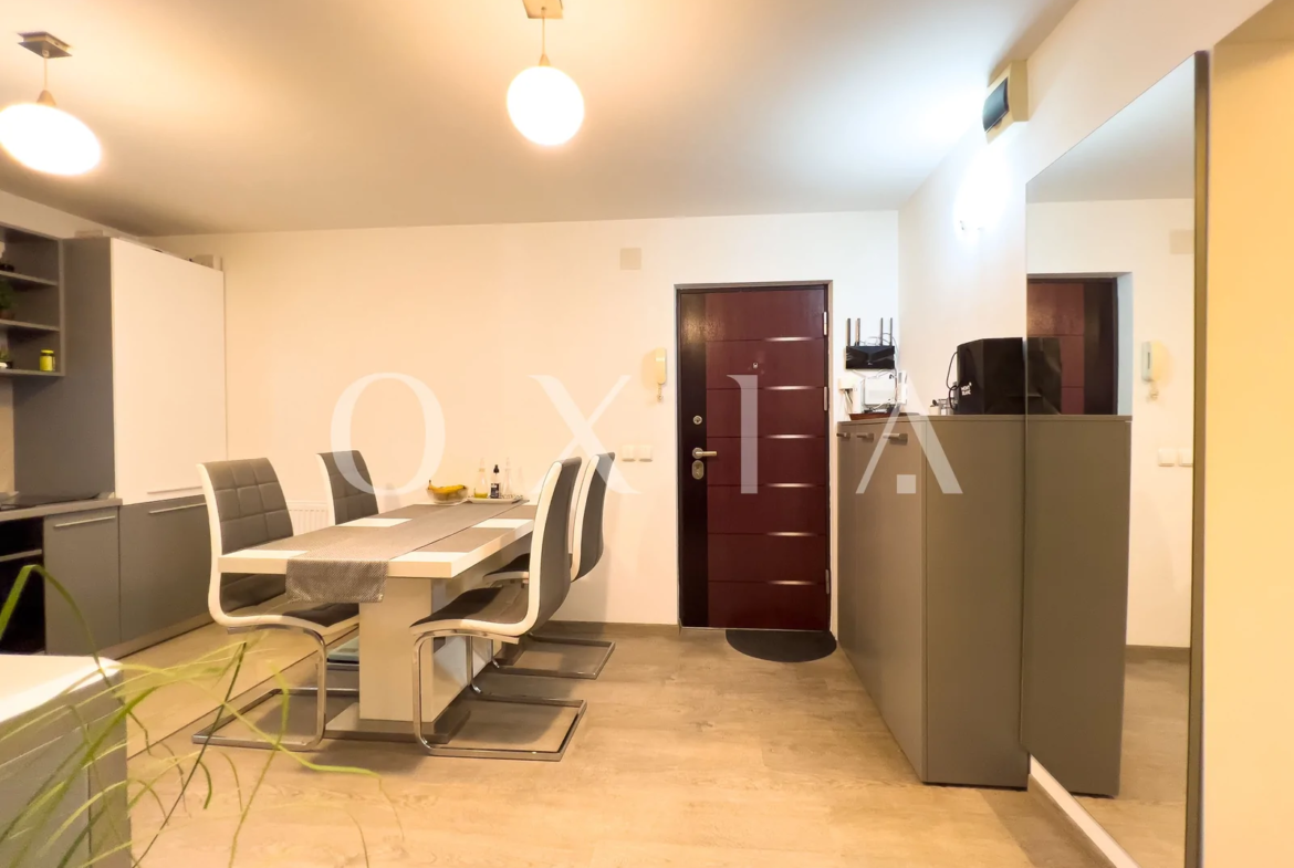 Confortul termic este asigurat prin intermediul centralei proprii pe gaz cu calorifere si prin intermediul sistemului de climatizare Daikin de 12 000 BTU.