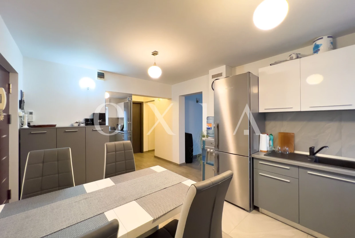 Apartamentul este complet renovat si beneficiaza de amenajari moderne: usa intrare metalica, usi interioare celulare, placi de gresie/faianta, parchet laminat, vopsea lavabila, ferestre PVC cu geam termopan, etc.