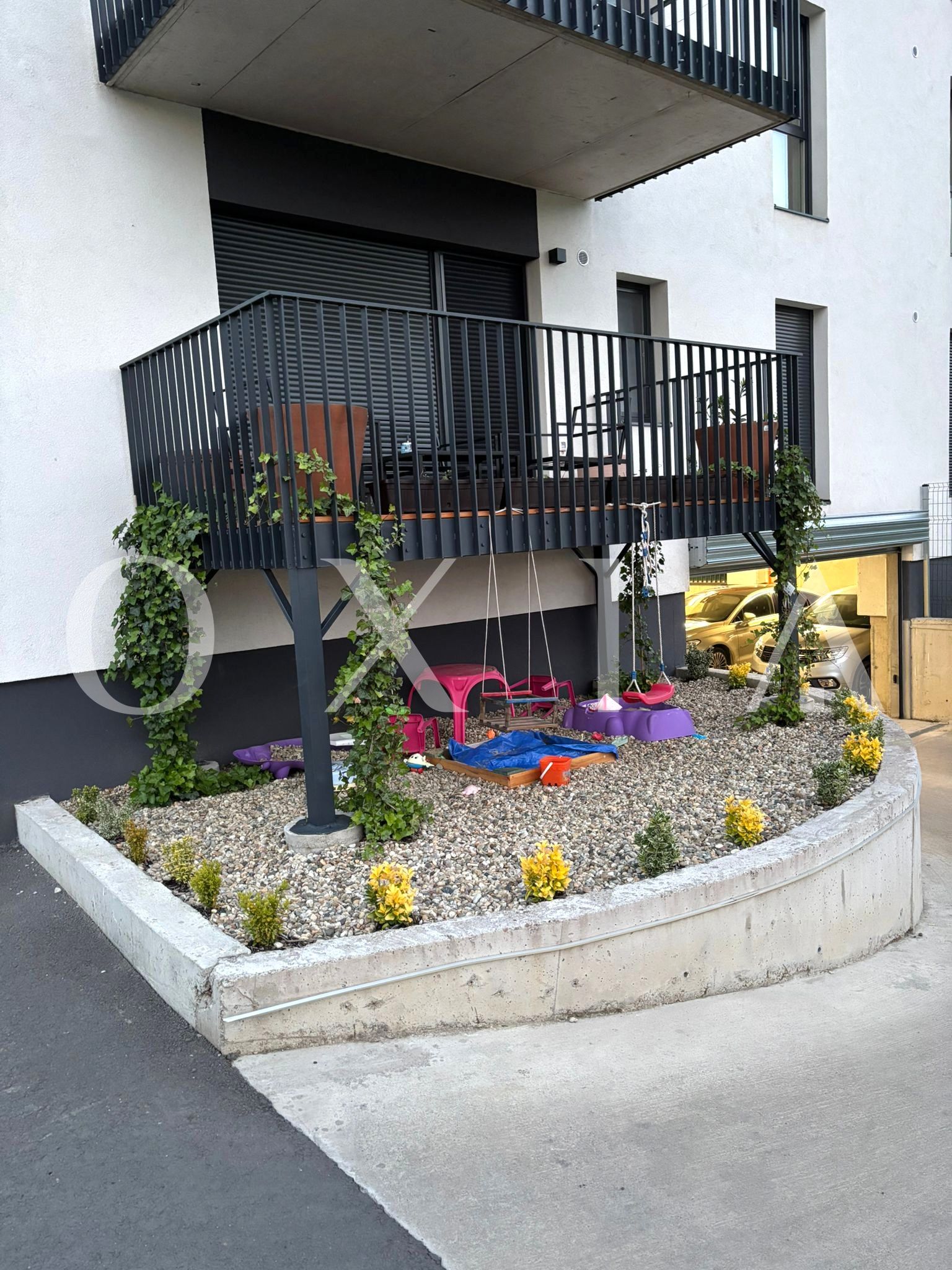 Apartamentul se afla la parterul inalt a unui imobil cu 3 etaje si are o suprafata utila de 51 mp, la care se adauga o terasa de 10 mp si un loc de joaca propriu de 17 mp.