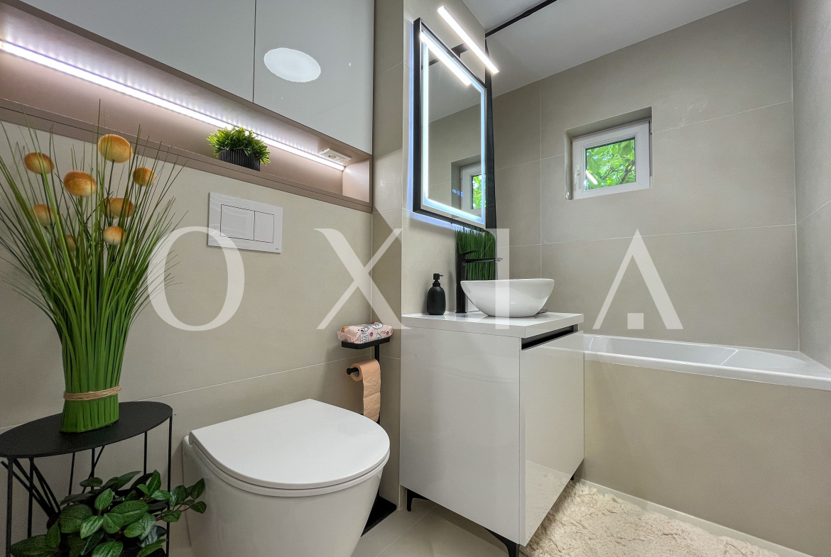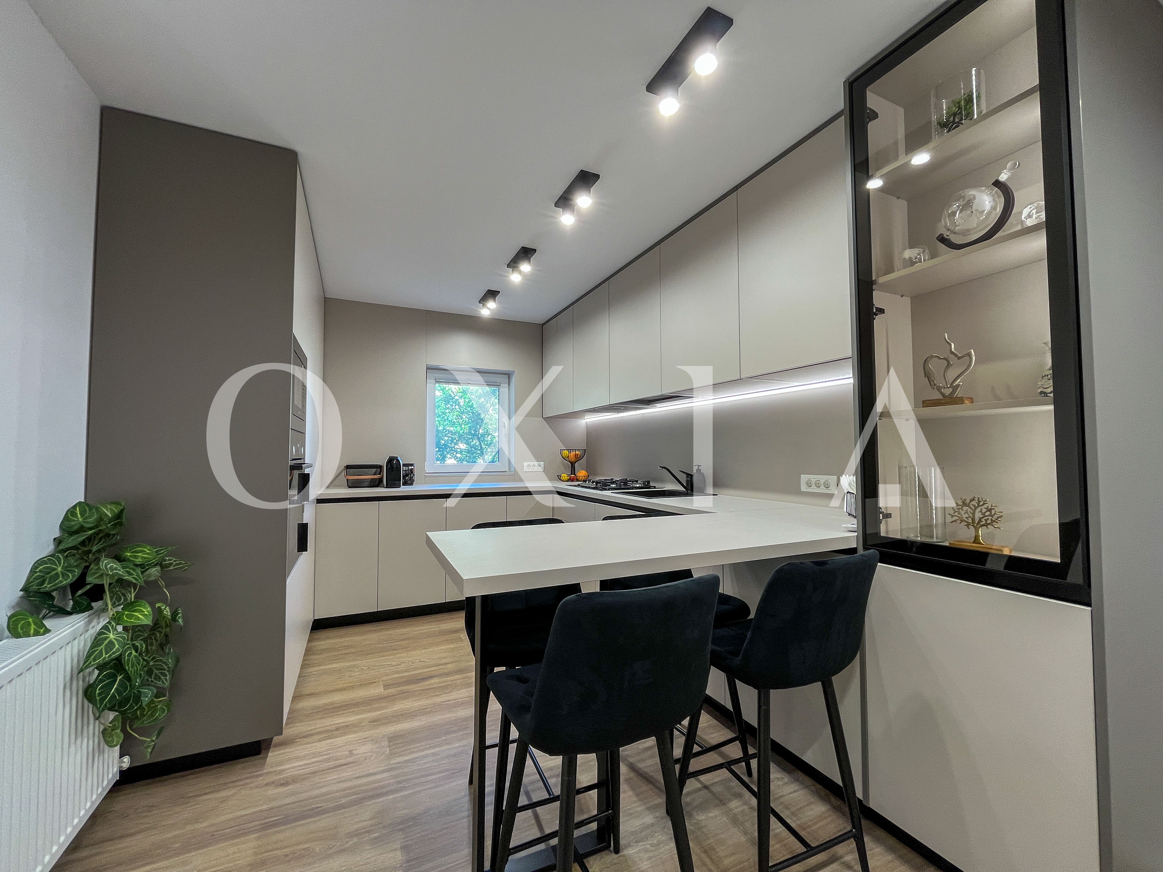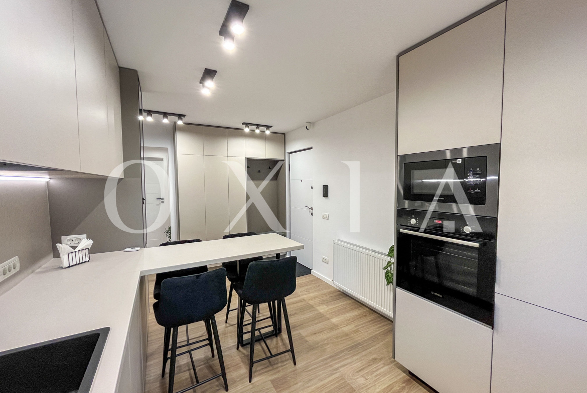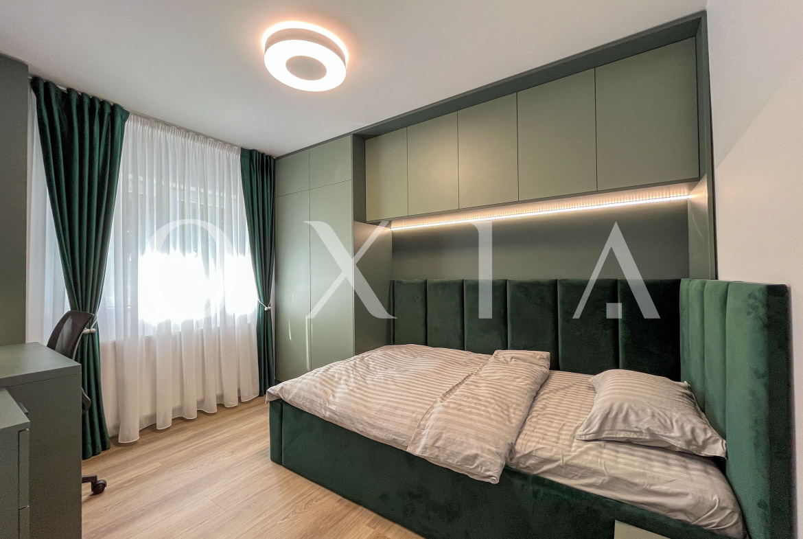 Dispune de urmatoarele dotari: rulouri electrice pentru un plus de confort si intimitate, geamuri tripan „4 anotimpuri” pentru izolatie termica si fonica superioara, 2 x TV QLED 2025, centrala termica Ariston cu wifi, mobilier modern cu LED, soft-close si iluminare incorporata, becuri Philips Hue dimabile pentru reglarea luminii dupa preferinta, usi interioare Nature de inalta calitate, plase insecte tip rulou, pervaze din compozit de marmura la ferestre, calorifere premium cu garantie 10 ani.