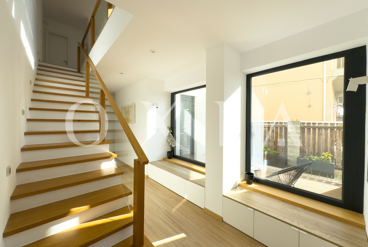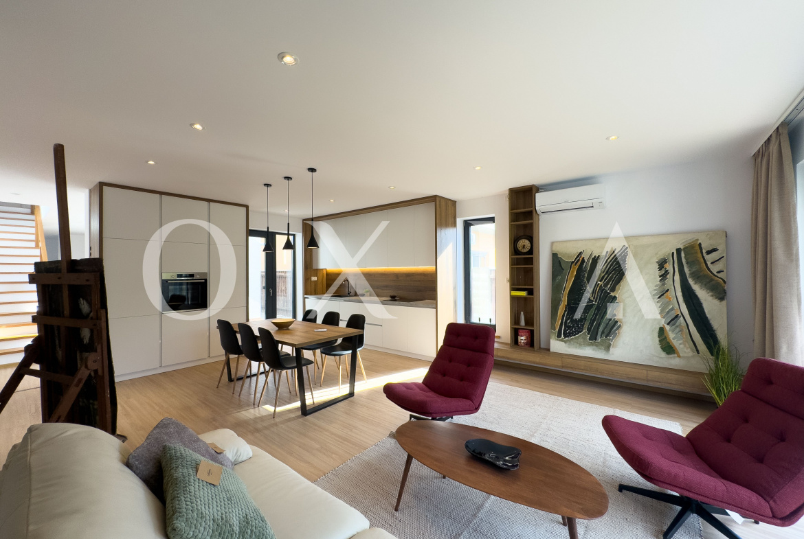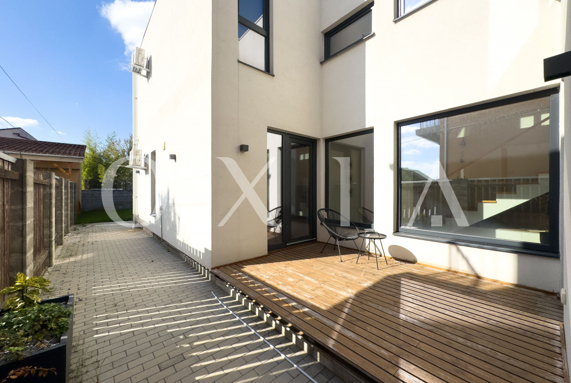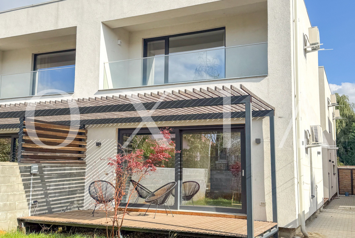 OXIA prezinta spre vanzare jumatate de duplex deosebit, situat in Timisoara, zona Campului, constructie P+E, cu suprafata terenului de 300 MP, suprafata construita de 230 MP cu doua terase exterioare la parter si doua balcoane la etaj, suprafata utila de 187 MP, compartimentata astfel: