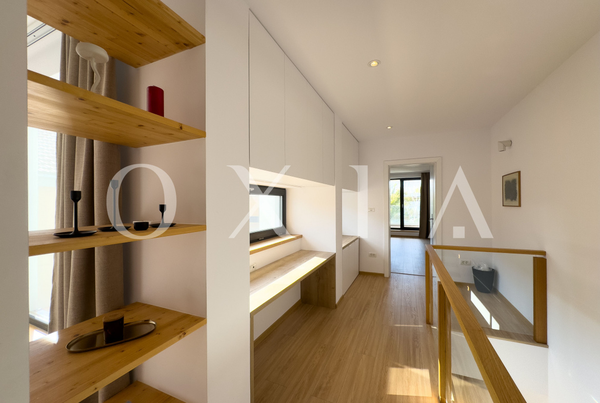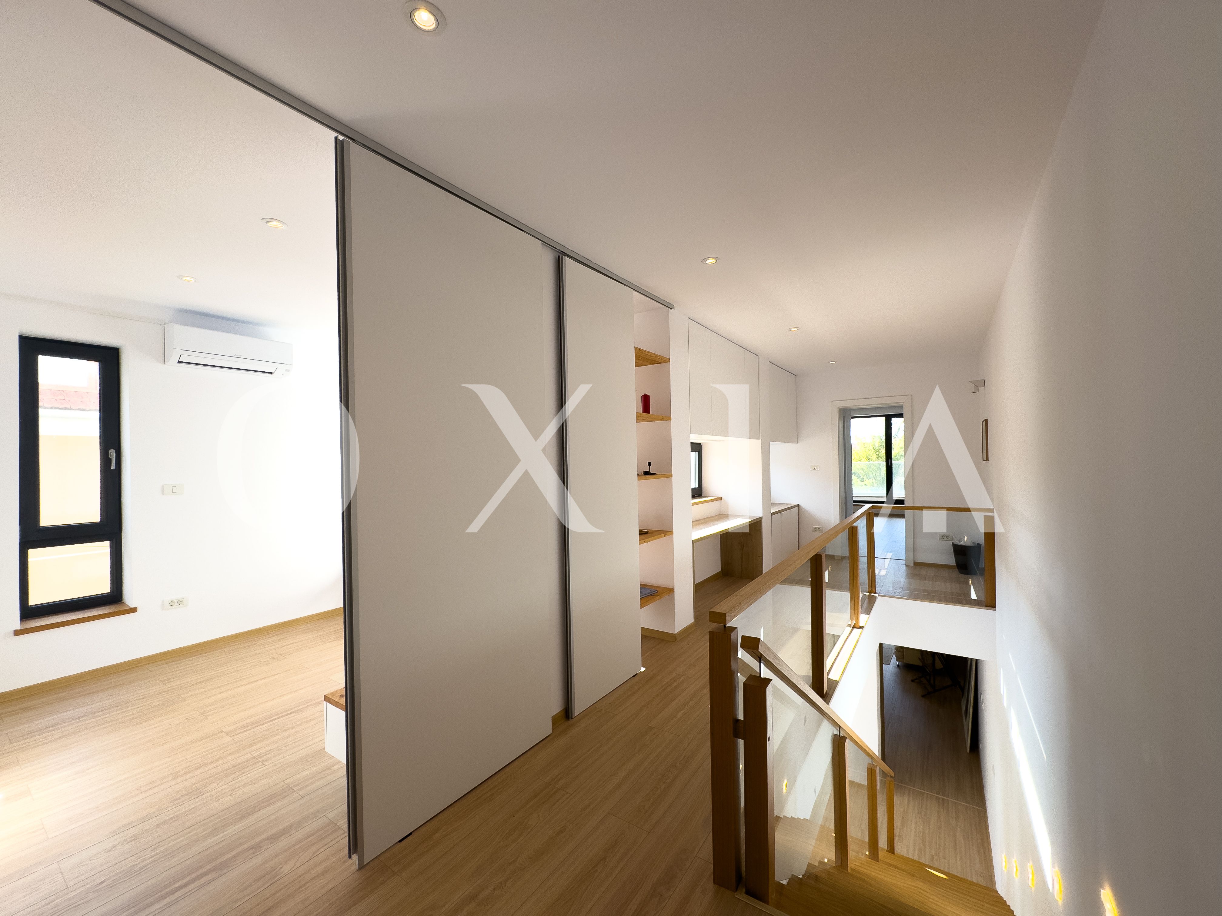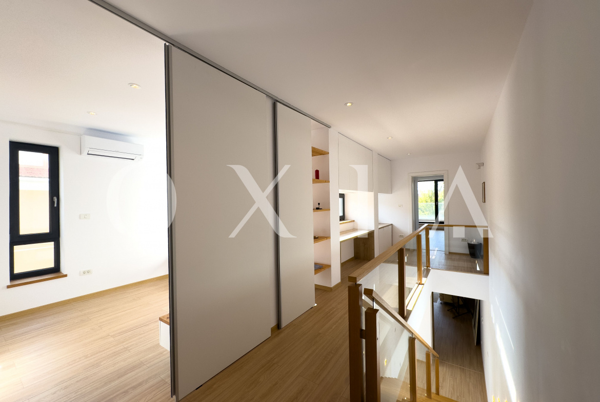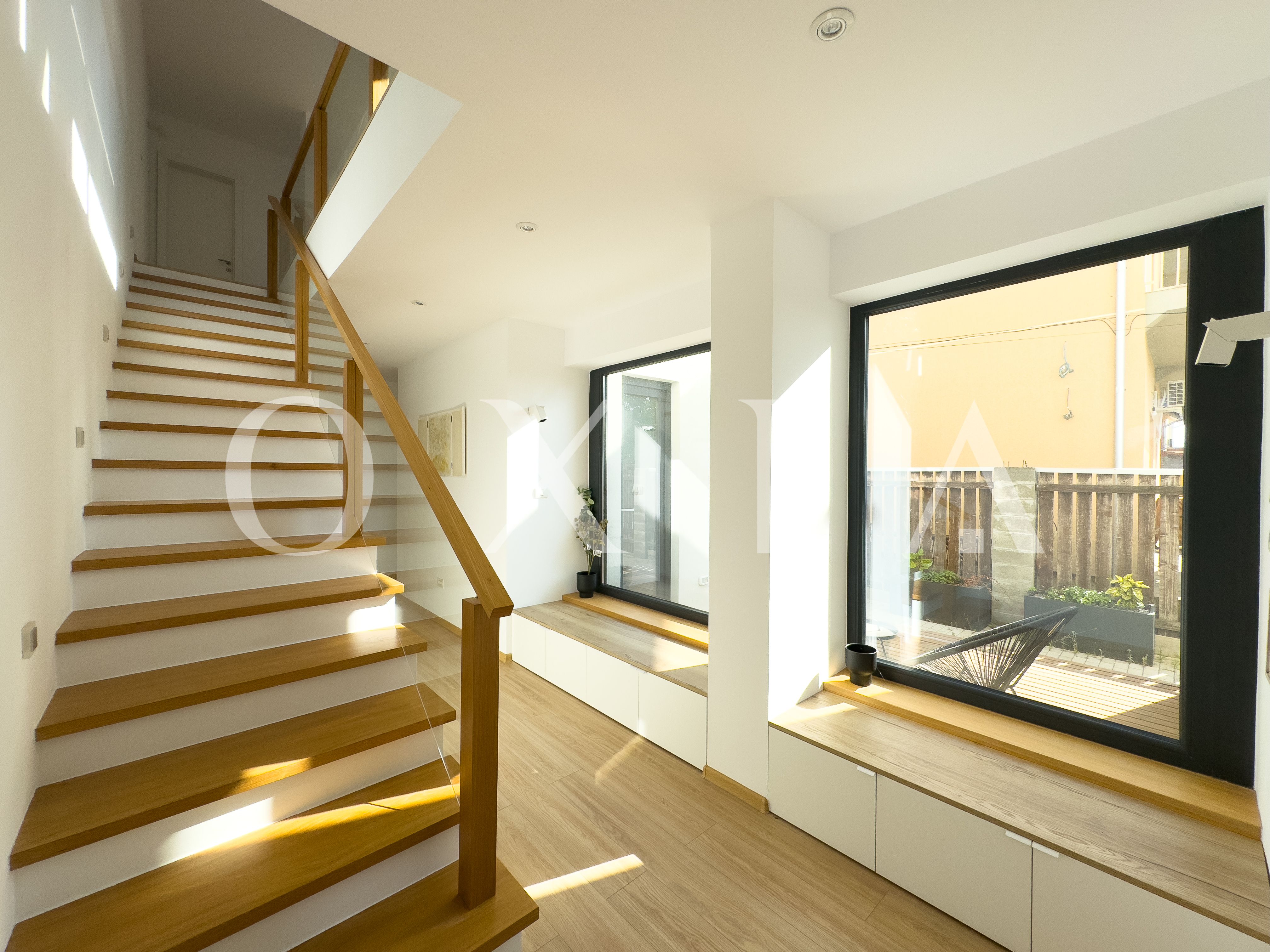 OXIA prezinta spre vanzare jumatate de duplex deosebit, situat in Timisoara, zona Campului, constructie P+E, cu suprafata terenului de 300 MP, suprafata construita de 230 MP cu doua terase exterioare la parter si doua balcoane la etaj, suprafata utila de 187 MP, compartimentata astfel: