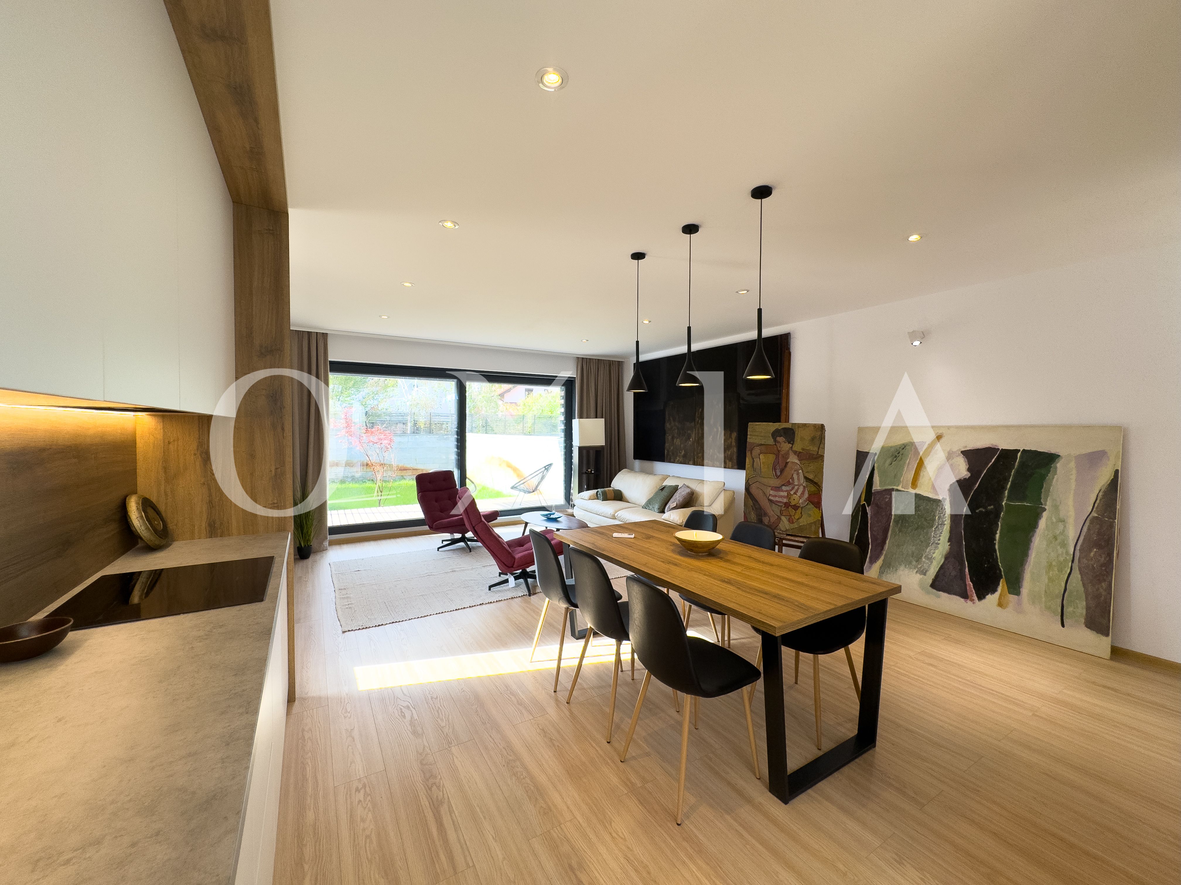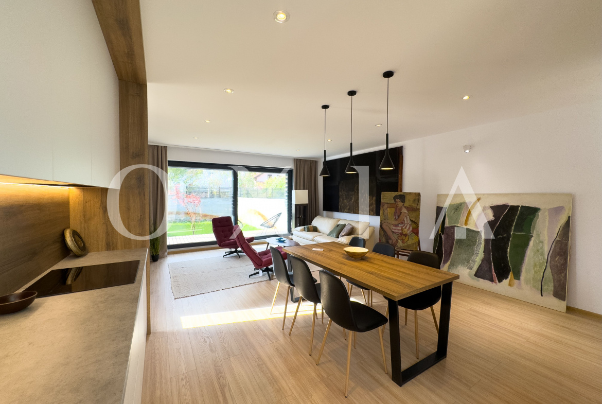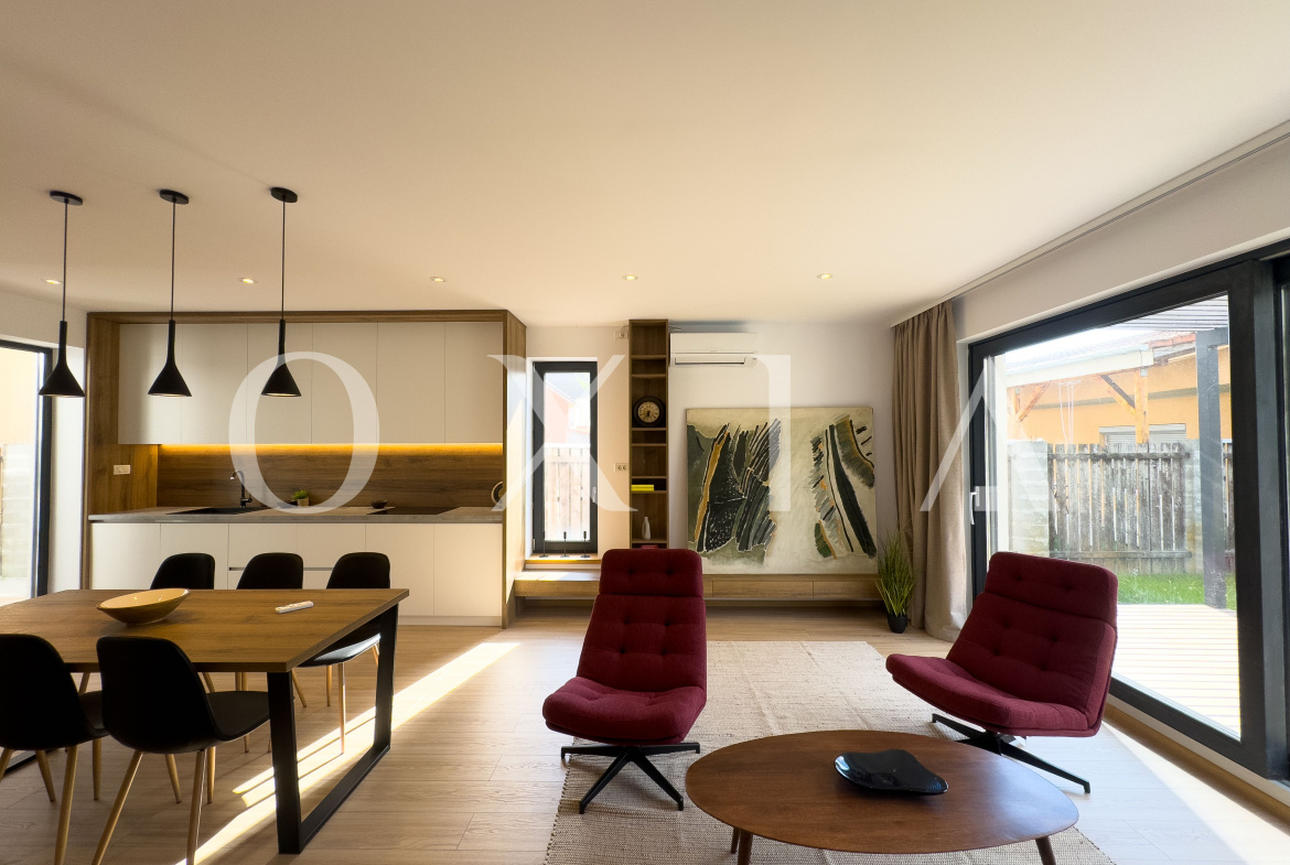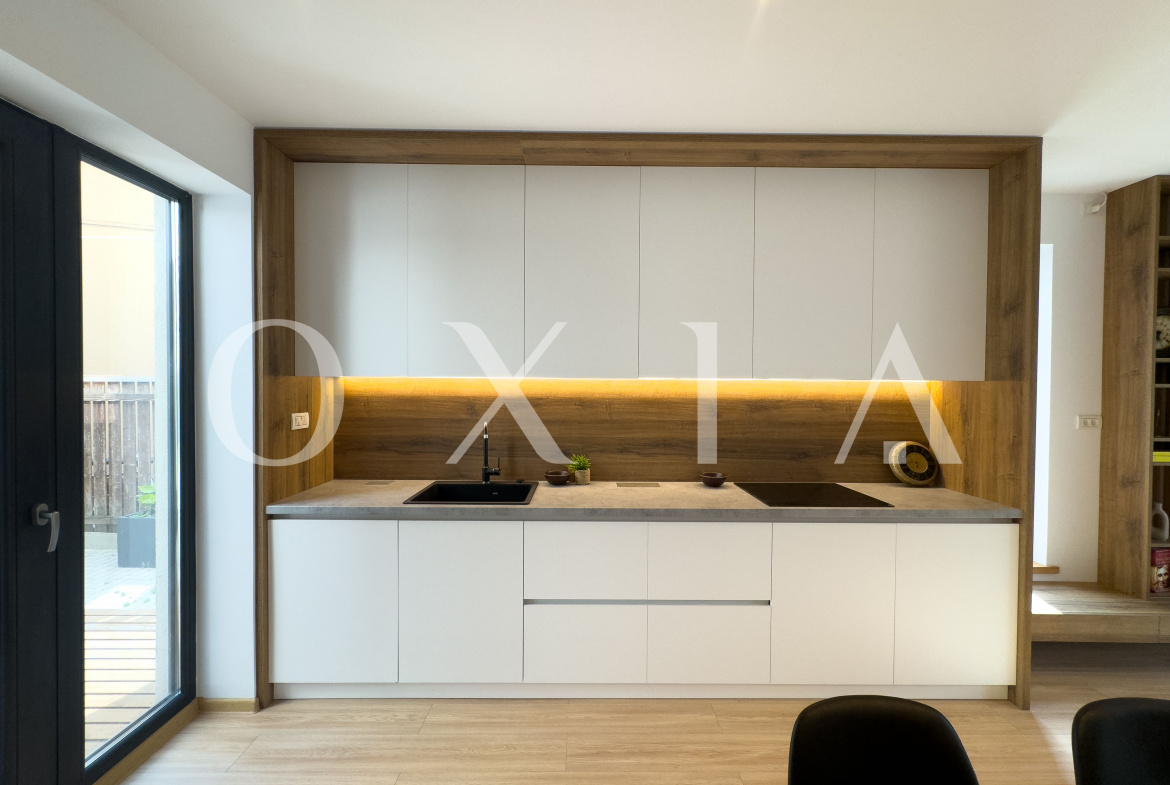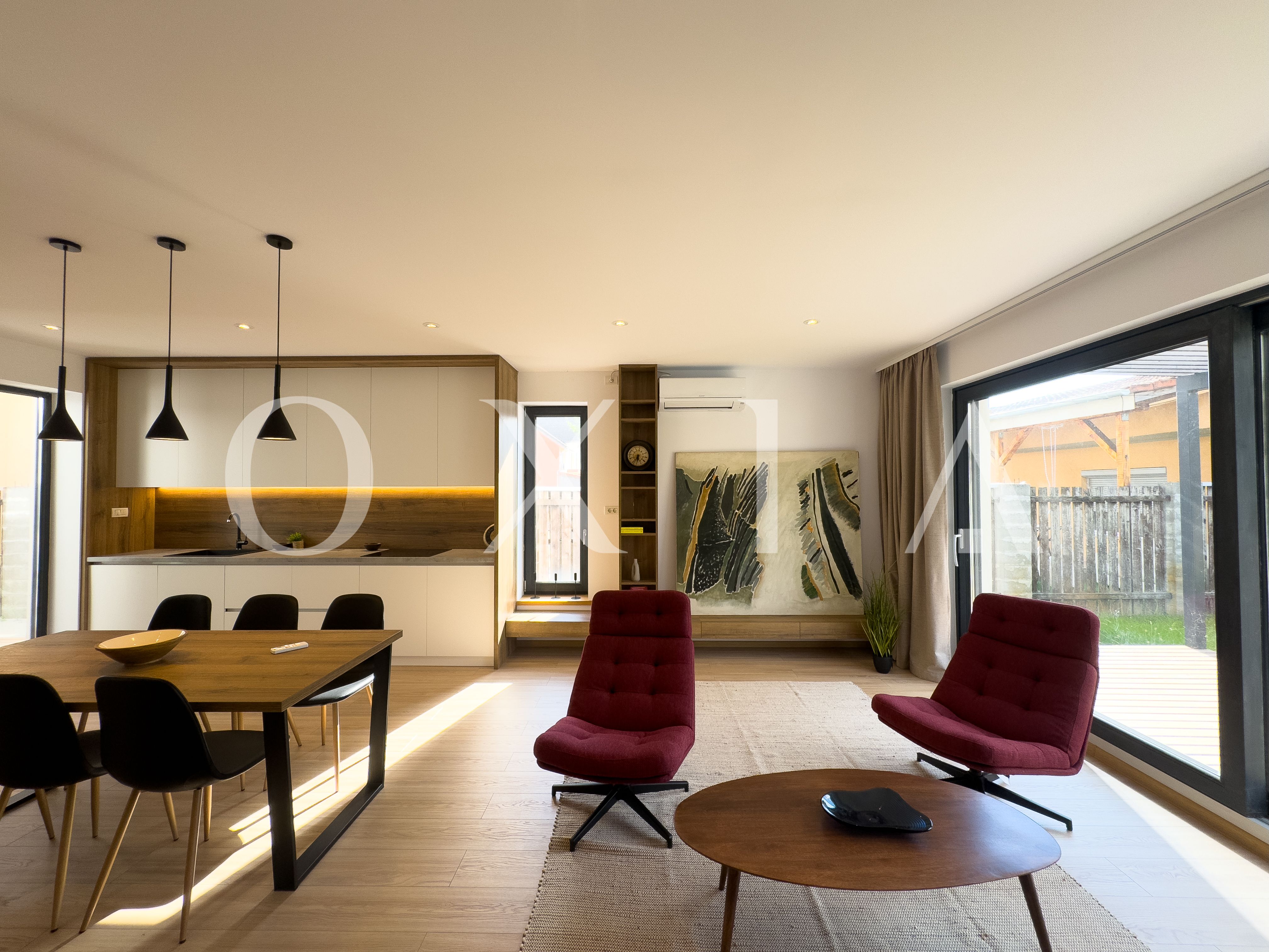 Living si bucatarie open space cu suprafata vitrata generoasa