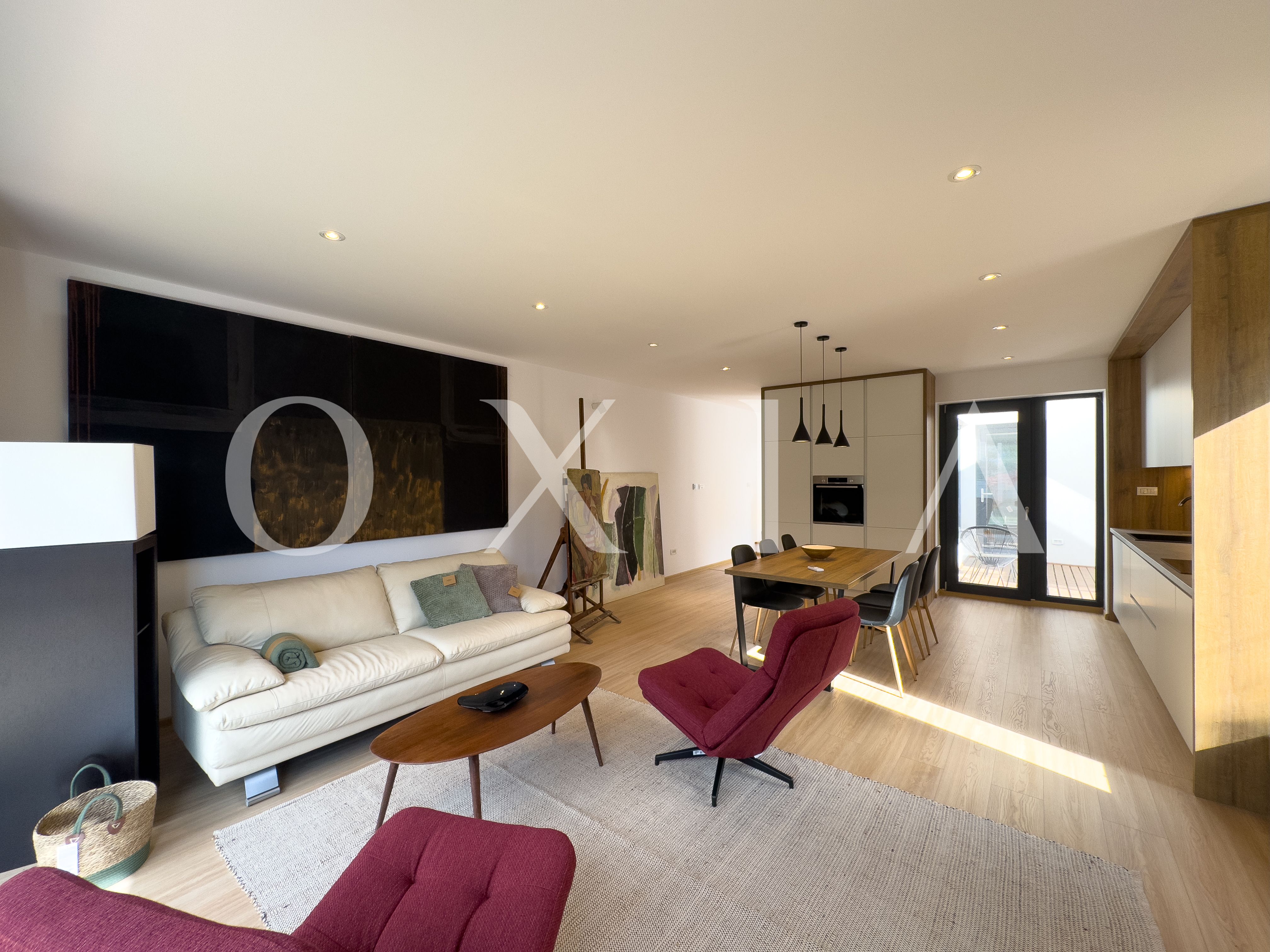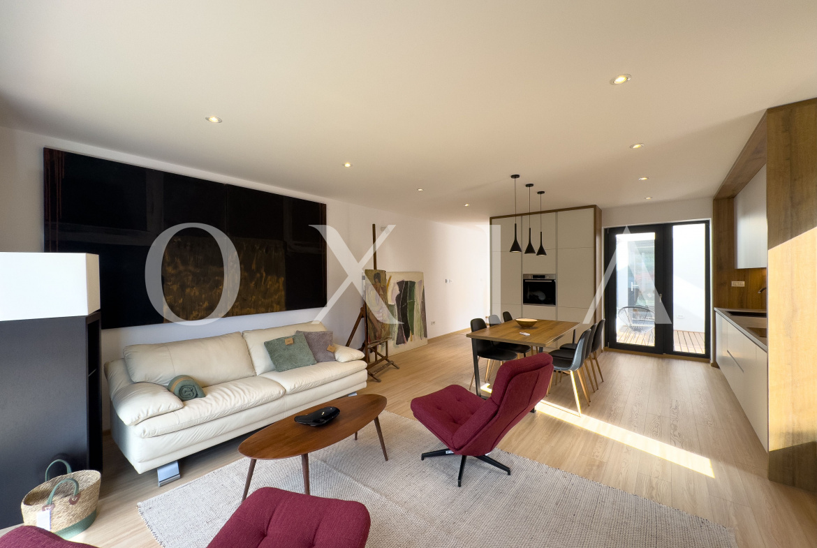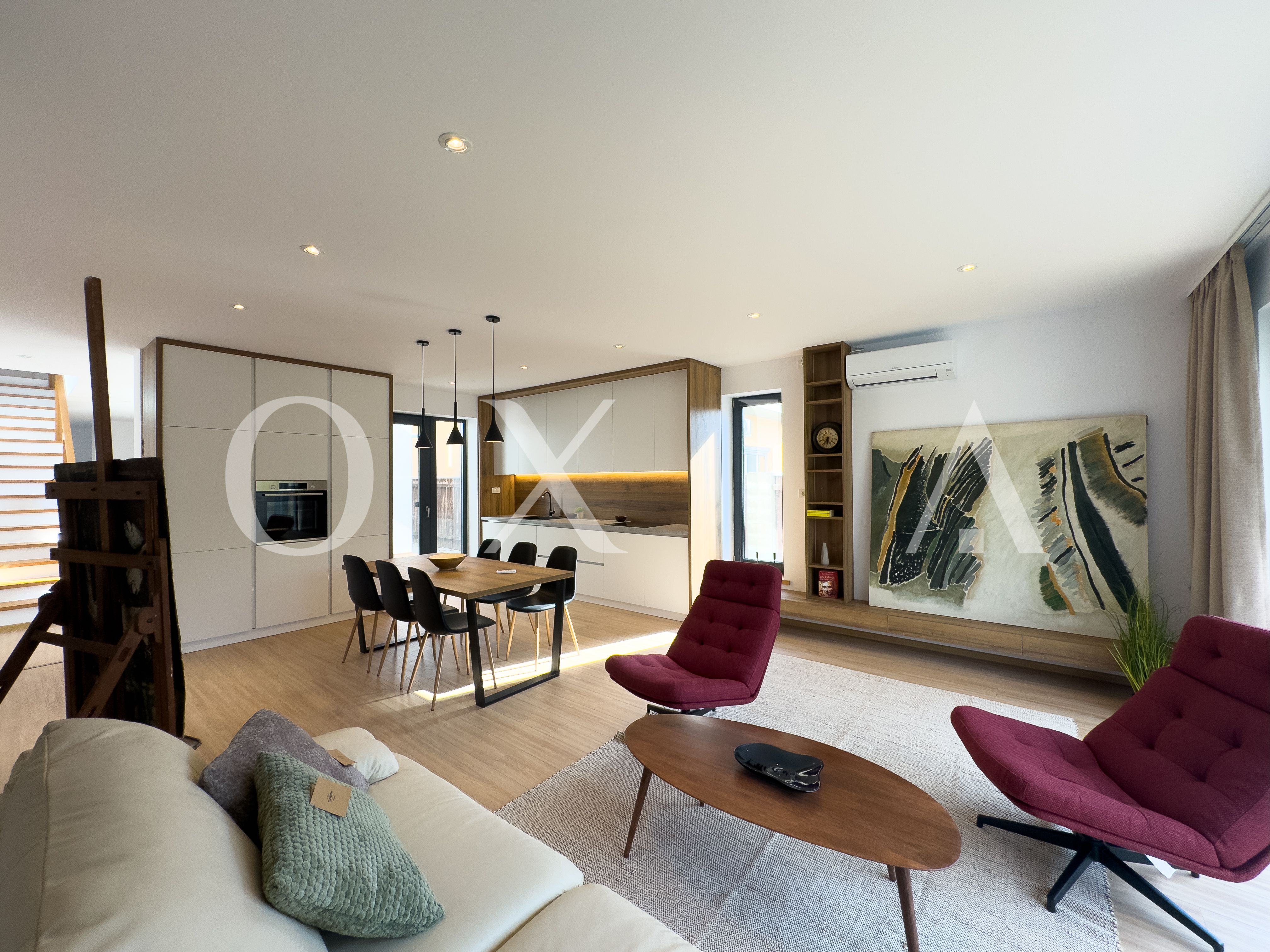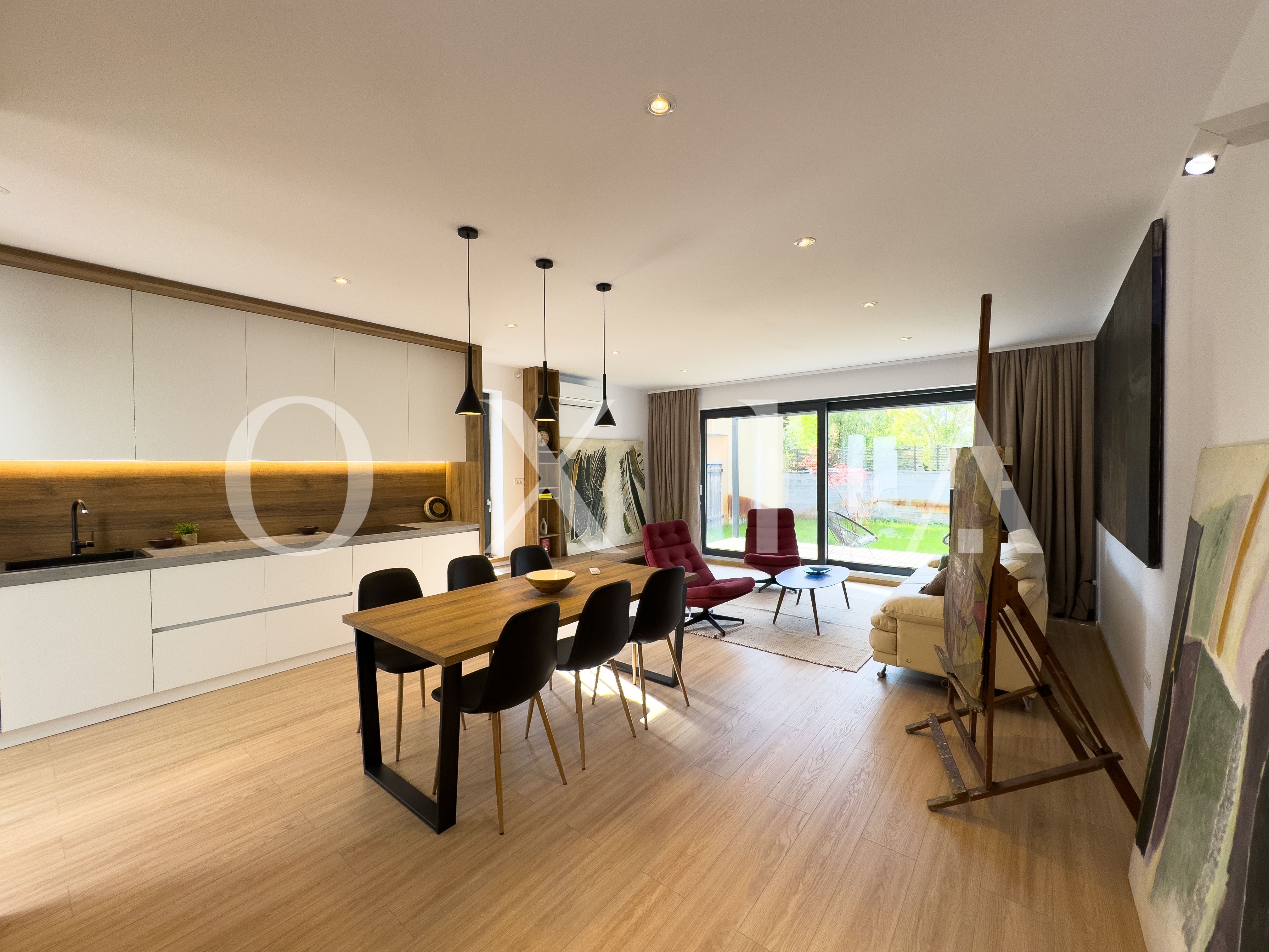 Living si bucatarie open space cu suprafata vitrata generoasa