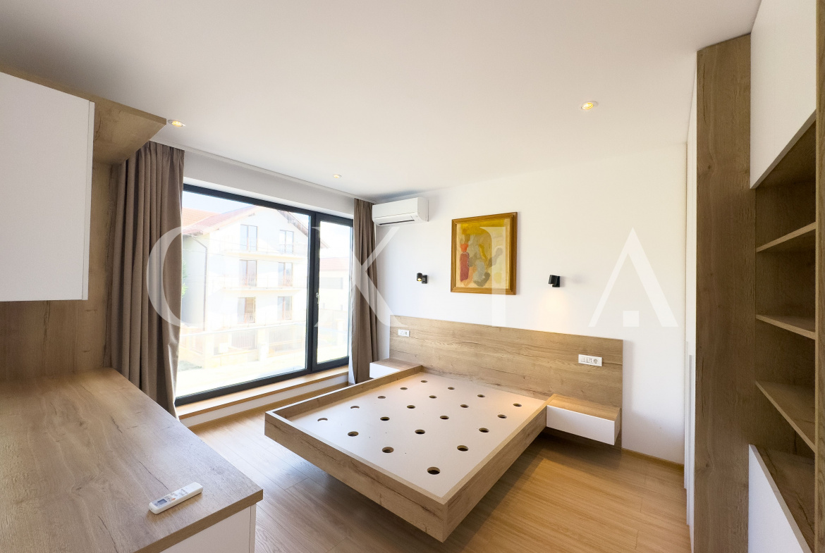 Finisaje moderne: ferestre PVC cu geam tripan, parchet Egger, placi de gresie/faianta, vopsea lavabila.