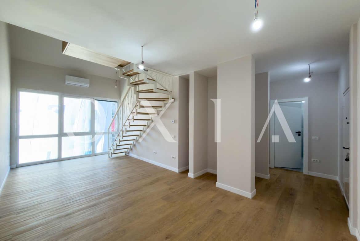 Apartamentul beneficiaza de finisaje de calitate precum: usa de intrare metalica, usi interioare din MDF, parchet din lemn, scara interioara din lemn, ferestre PVC cu geam tripan, rulouri electrice si vopsea lavabila.