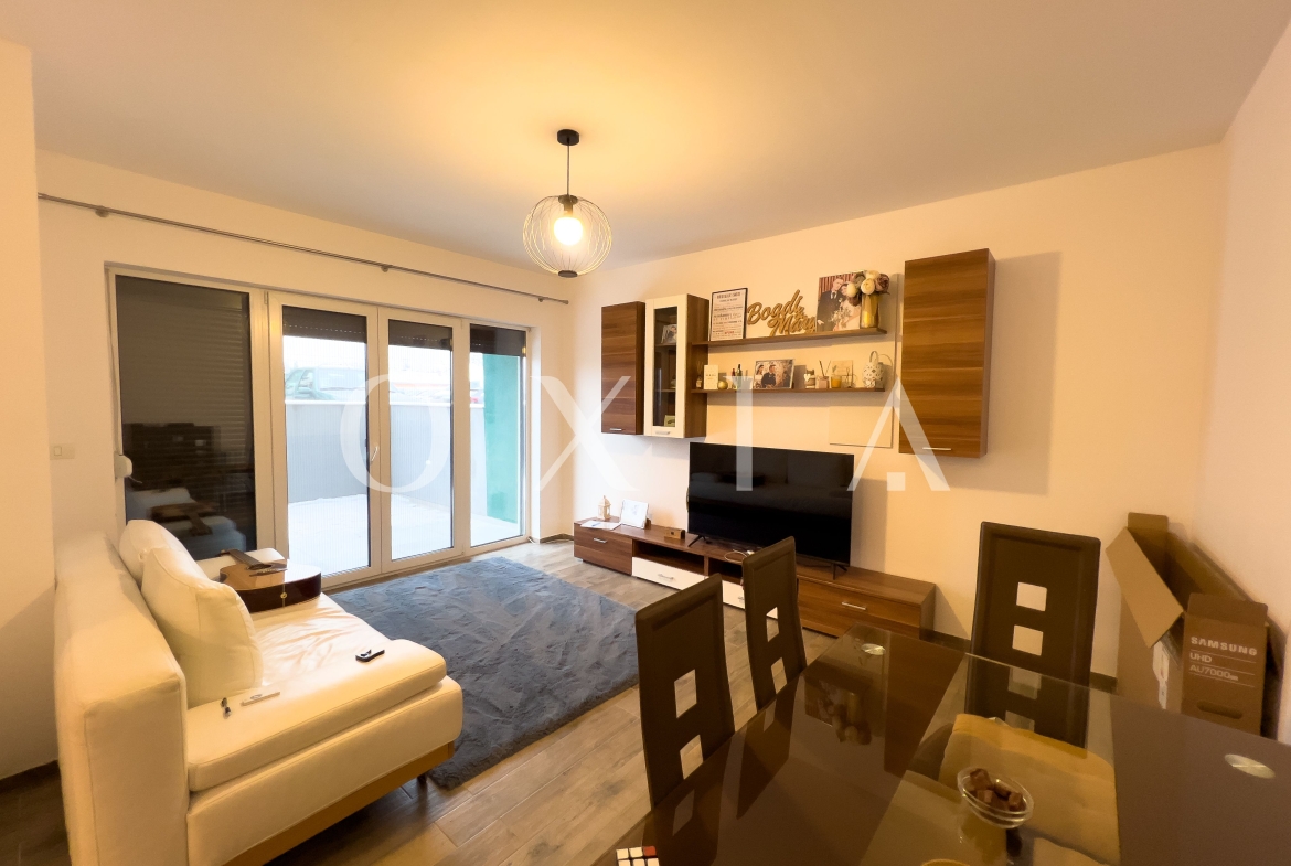 OXIA prezinta spre vanzare apartament cu 3 camere, decomandat, situat in Timisoara, Zona Buziasului, strada Olarilor, la parterul unui imobil cu 3 etaje finalizat in anul 2018, avand suprafata utila de 73 mp + doua terase de 20 mp respectiv 8 mp, compartimentat astfel: