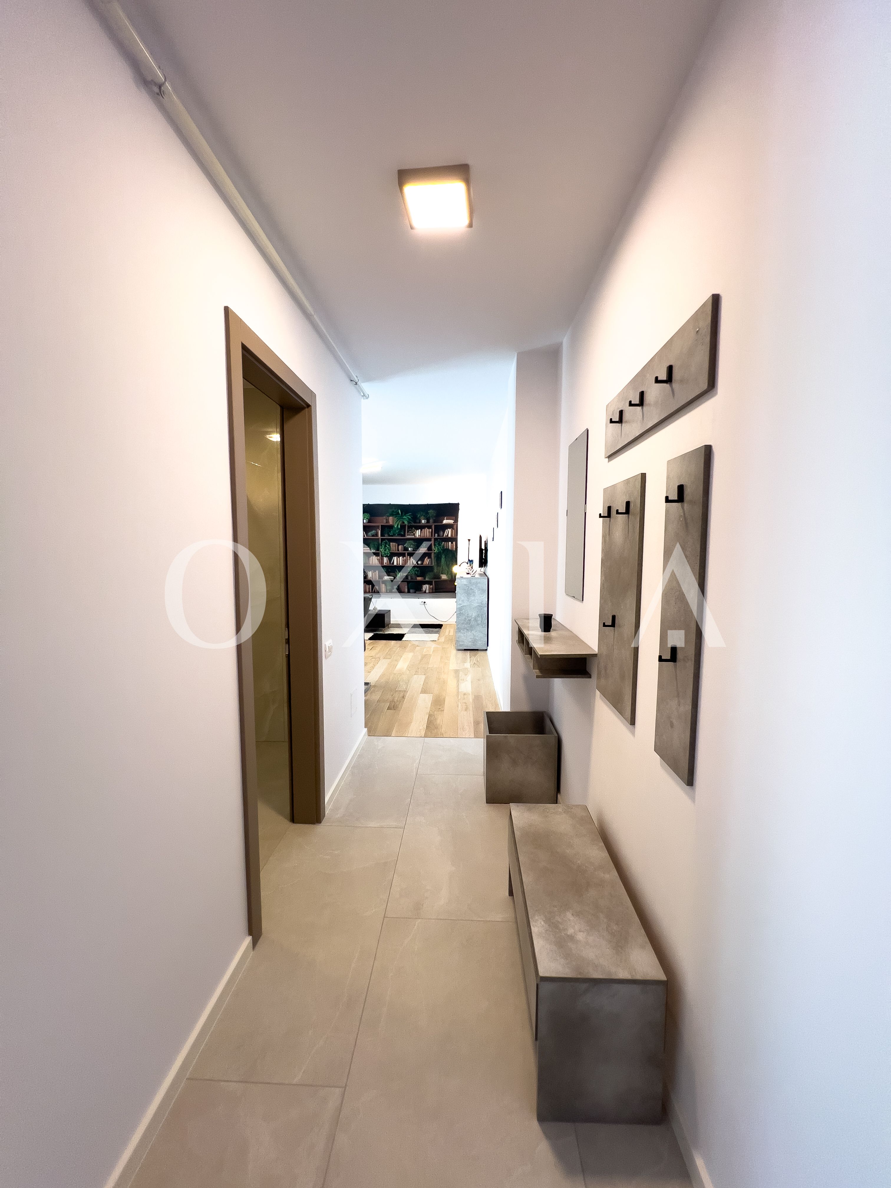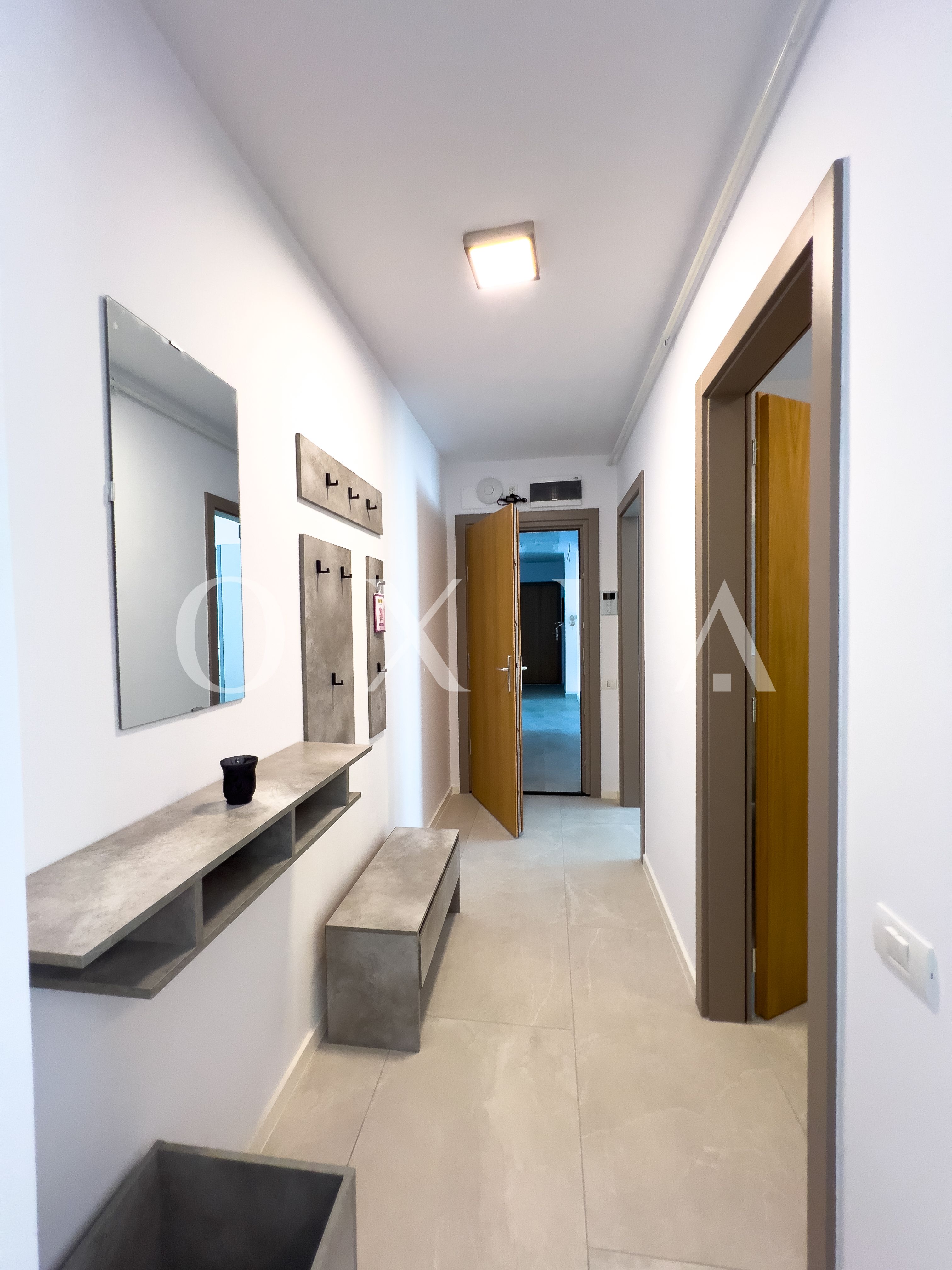 OXIA prezinta spre inchiriere apartament cu 2 camere, situat in Timisoara, complex rezidential Monarch (Circumvalatiunii), la etajul 1/6, imobil dotat cu lift, semidecomandat, cu suprafata de 55 mp utili+12 mp terasa, compartimentat astfel:
