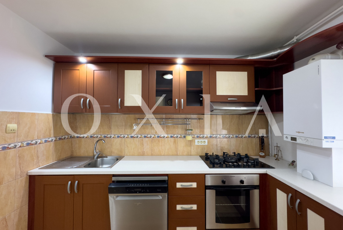 Se inchiriaza complet mobilat si utilat: combina frigorifica, masina de spalat vase, plita pe gaz, cuptor electric, hota, masina de spalat rufe, aspirator, fier de calcat, vesela si alte electrocasnice necesare.