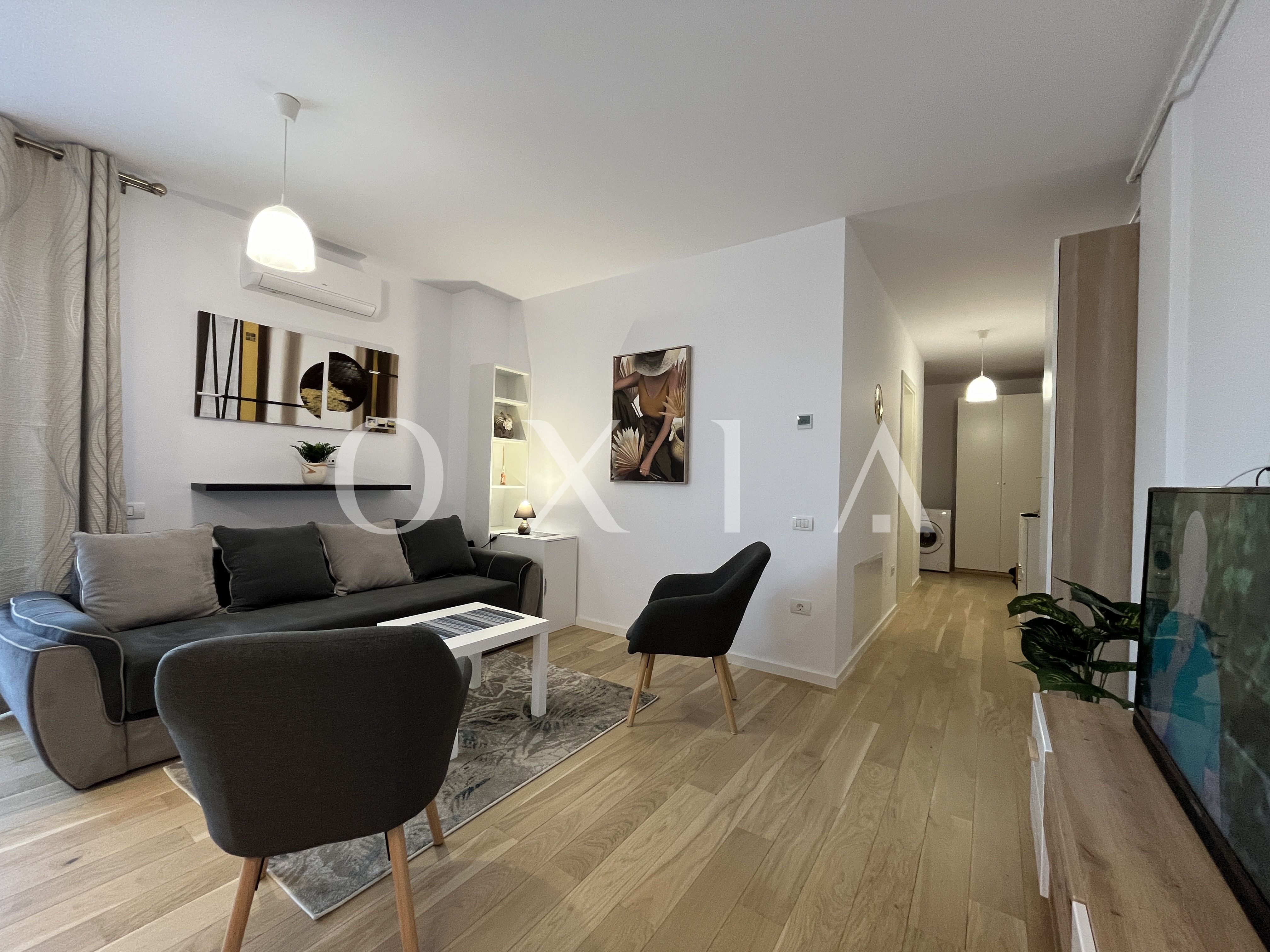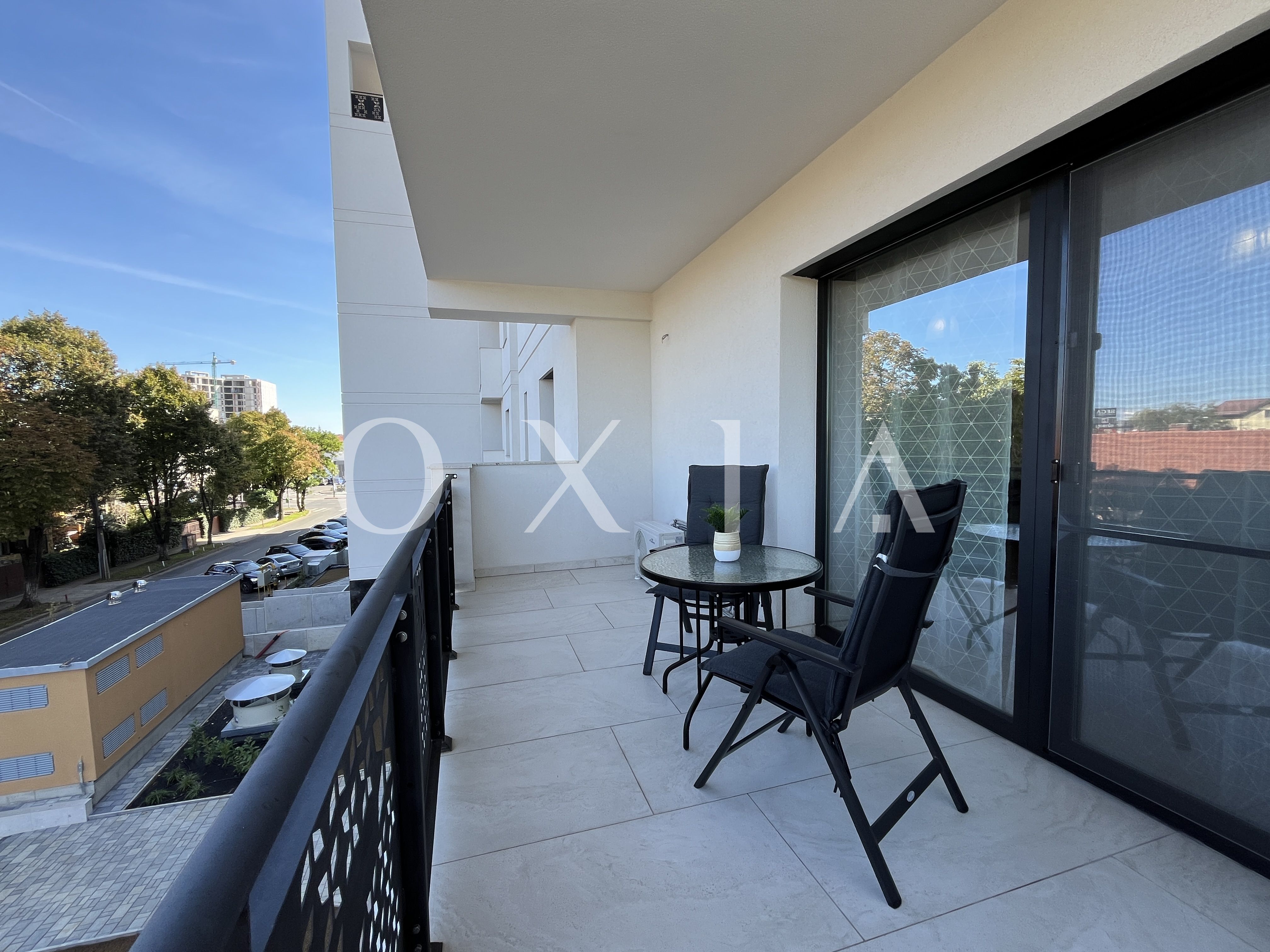 OXIA prezinta spre inchiriere apartament cu 2 camere, situat in Timisoara, complex rezidential Monarch (Circumvalatiunii), la etajul 2/6, imobil dotat cu lift, semidecomandat, cu suprafata de 55 mp utili+12 mp terasa, compartimentat astfel:
