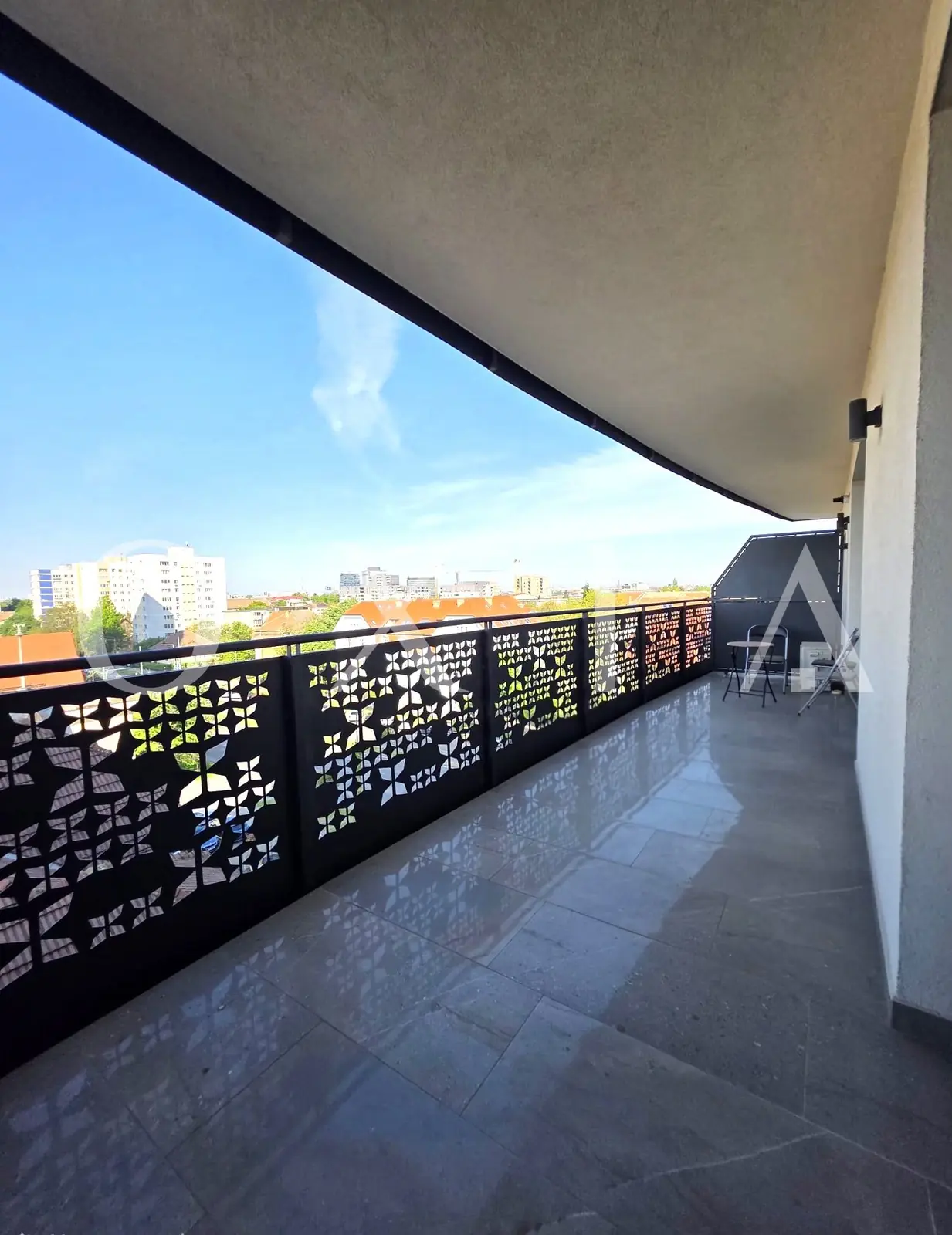 – un living luminos open space cu bucatarie, de unde puteti accesa terasa