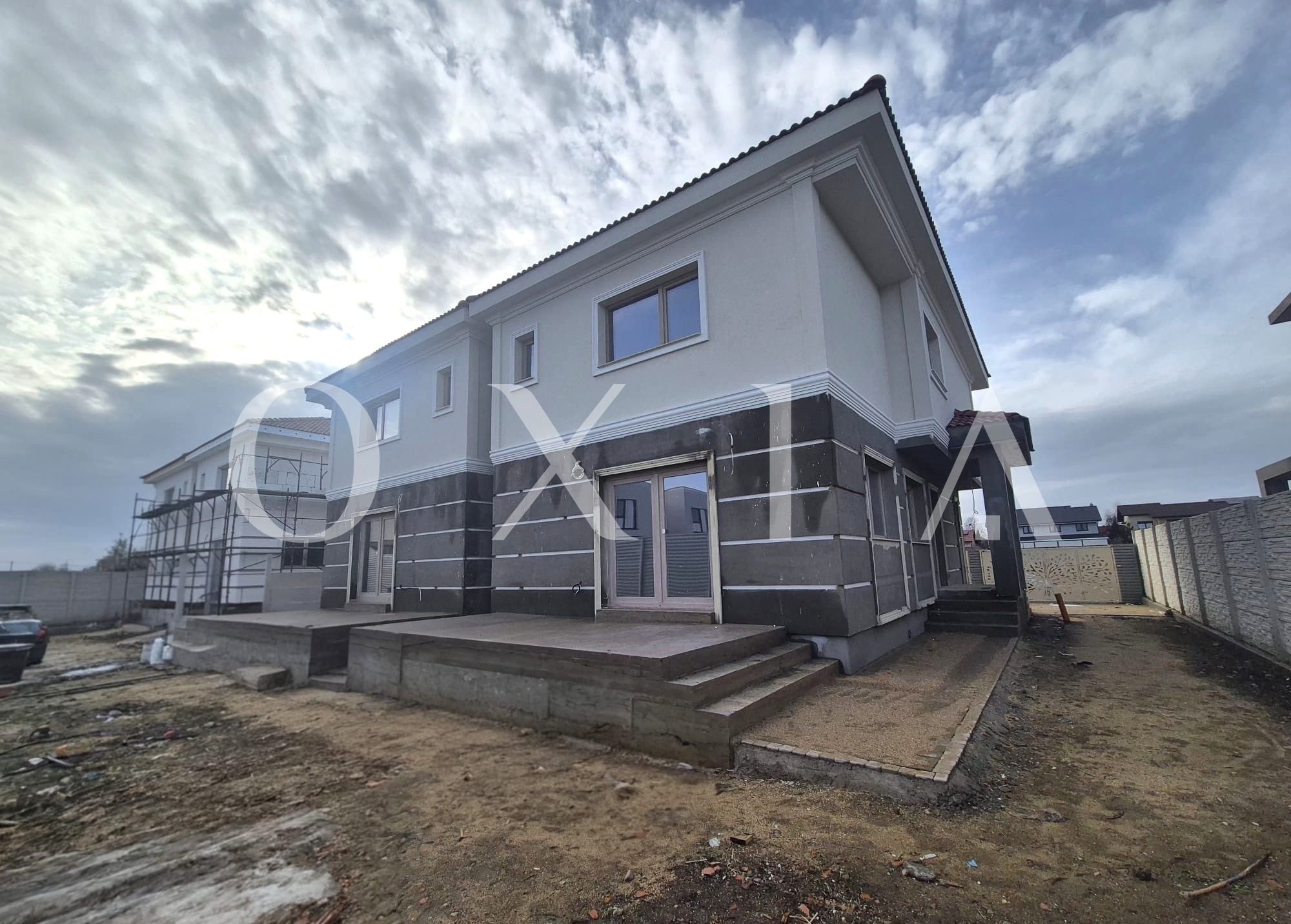 Casa este construita din caramida porotherm , izolata cu polistiren, acoperis din tigla, gard din boltari si porti din fier, pavaj si alei pietonale.