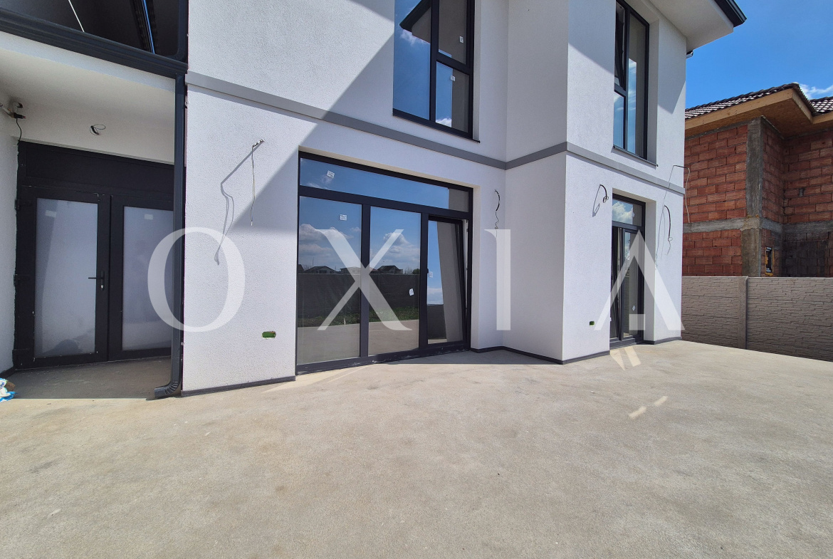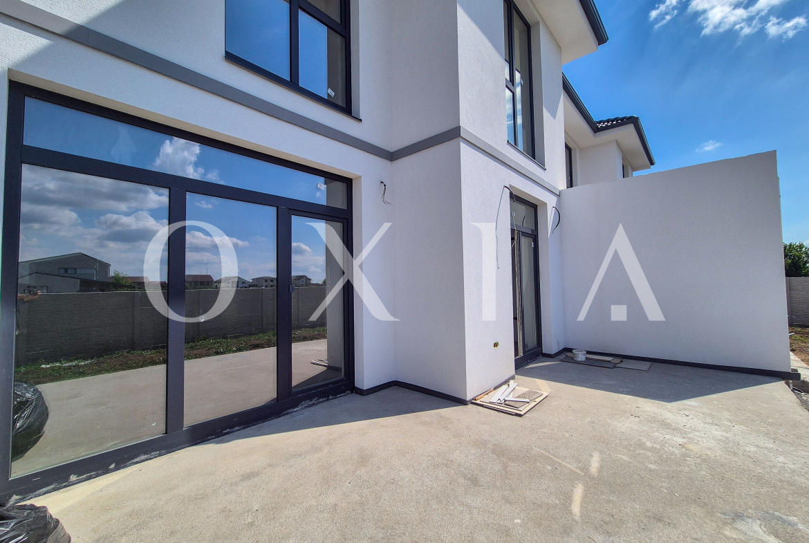 OXIA prezinta spre vanzare unitate in casa tip duplex despartit prin camera tehnica, situata in Mosnita Noua la intrare, cu regimul de inaltime P+1E+Pod cu suprafata terenului de 300 MP, suprafata construita de 174 MP si suprafata utila de 120 MP + 30 MP terasa.