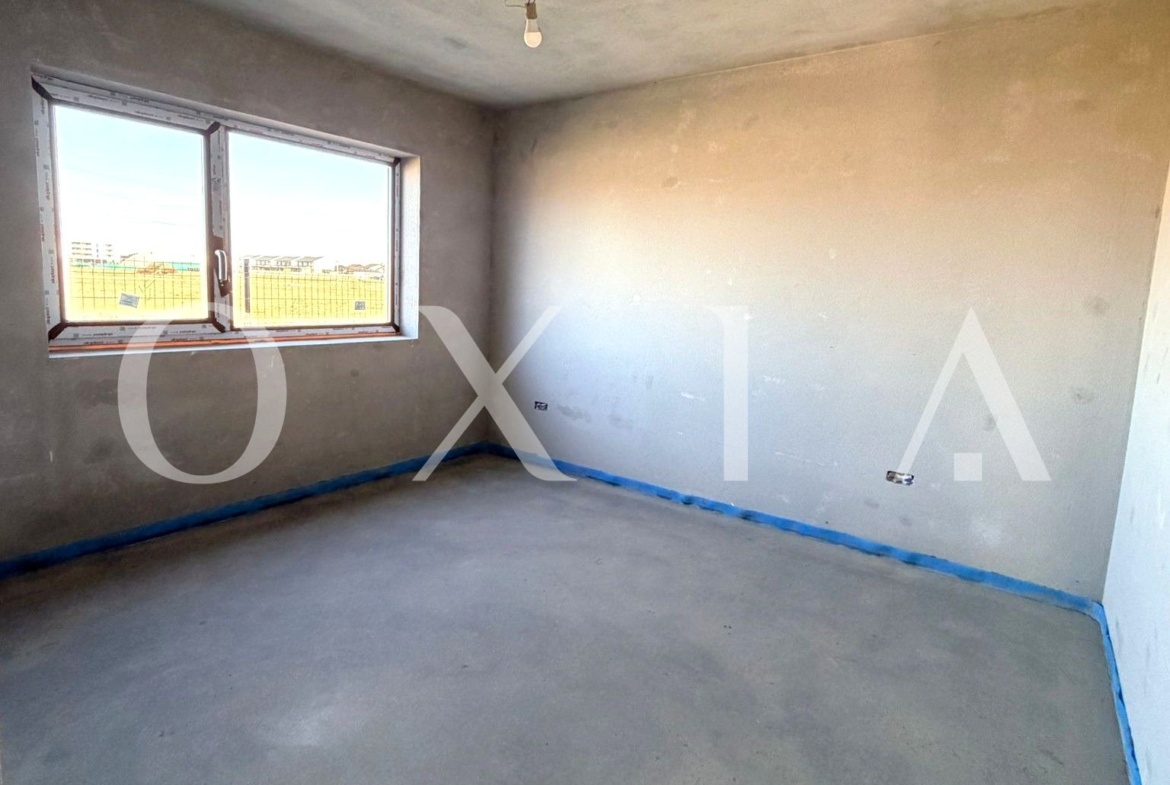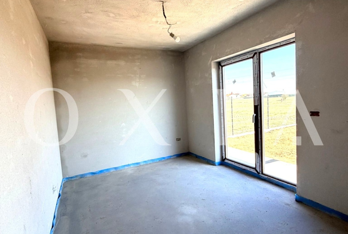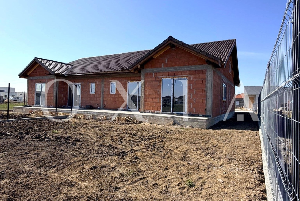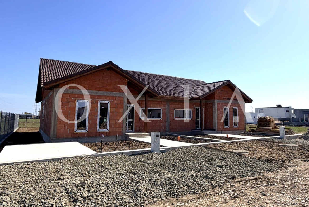 OXIA The Real Estate Agency prezinta spre vanzare 1/2 duplex in Mosnita Noua, la intrare pe dreapta, cu suprafata terenului de 304 mp, suprafata construita la sol de 115 mp, suprafata utila de 90 mp + terasa, compartimentat astfel: