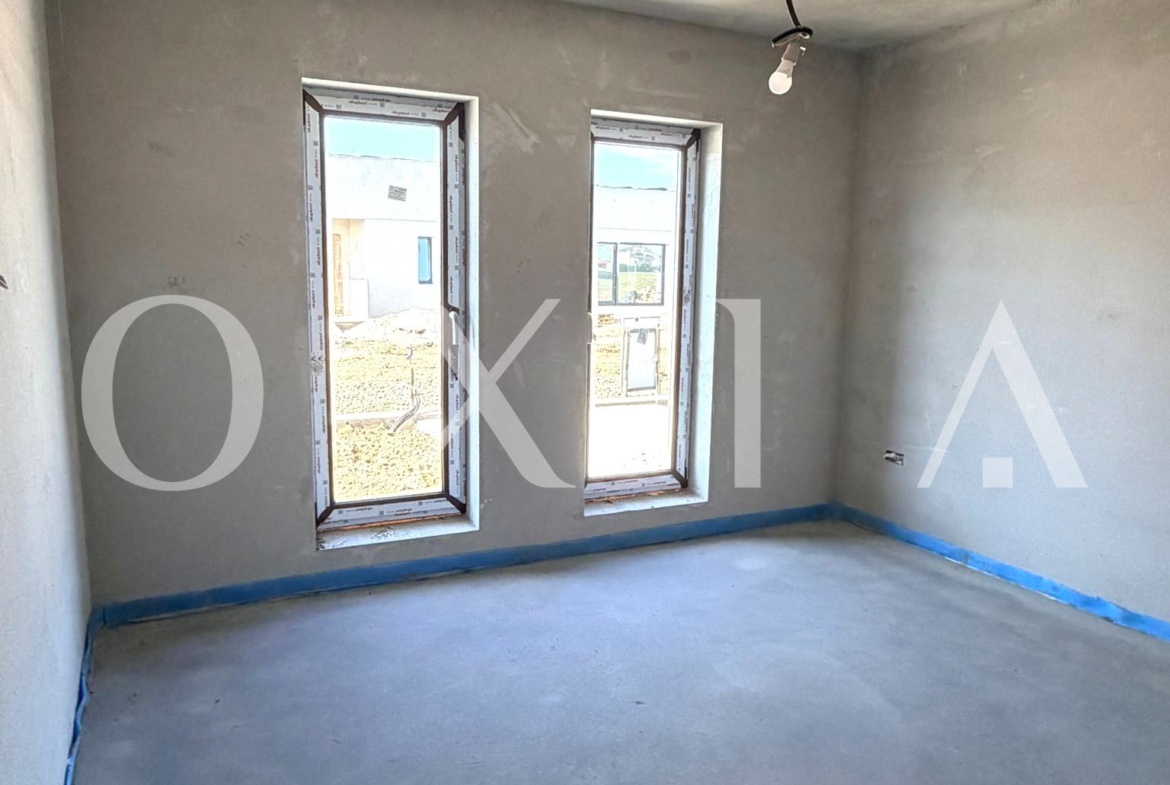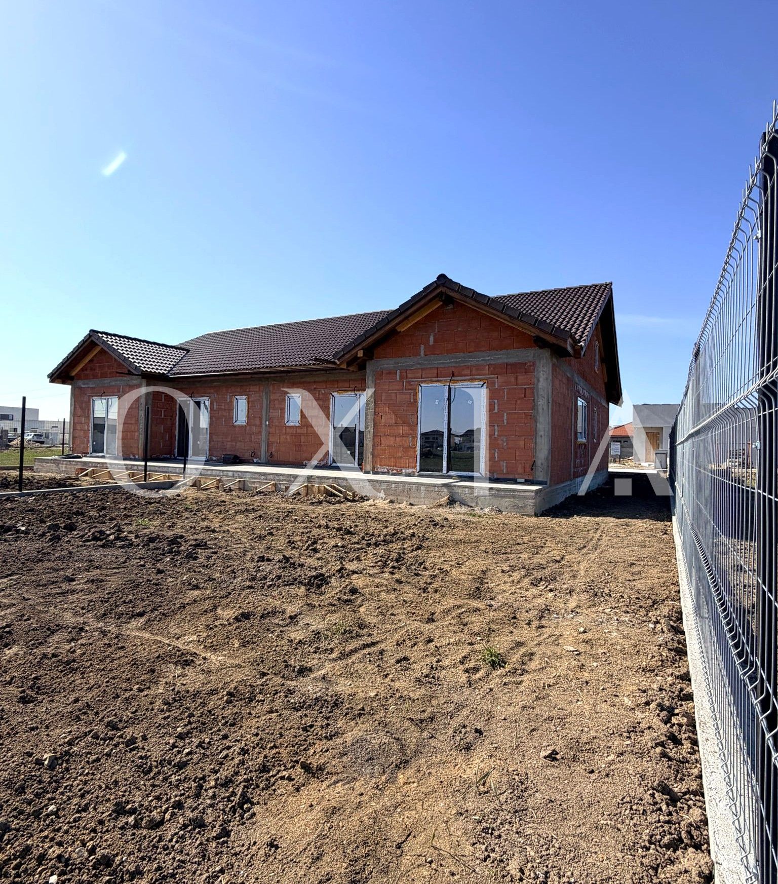 Casa este construita din caramida poroterm, izolata cu polistiren de 10 cm, acoperis de tigla si pod inalt pentru depozitare.
