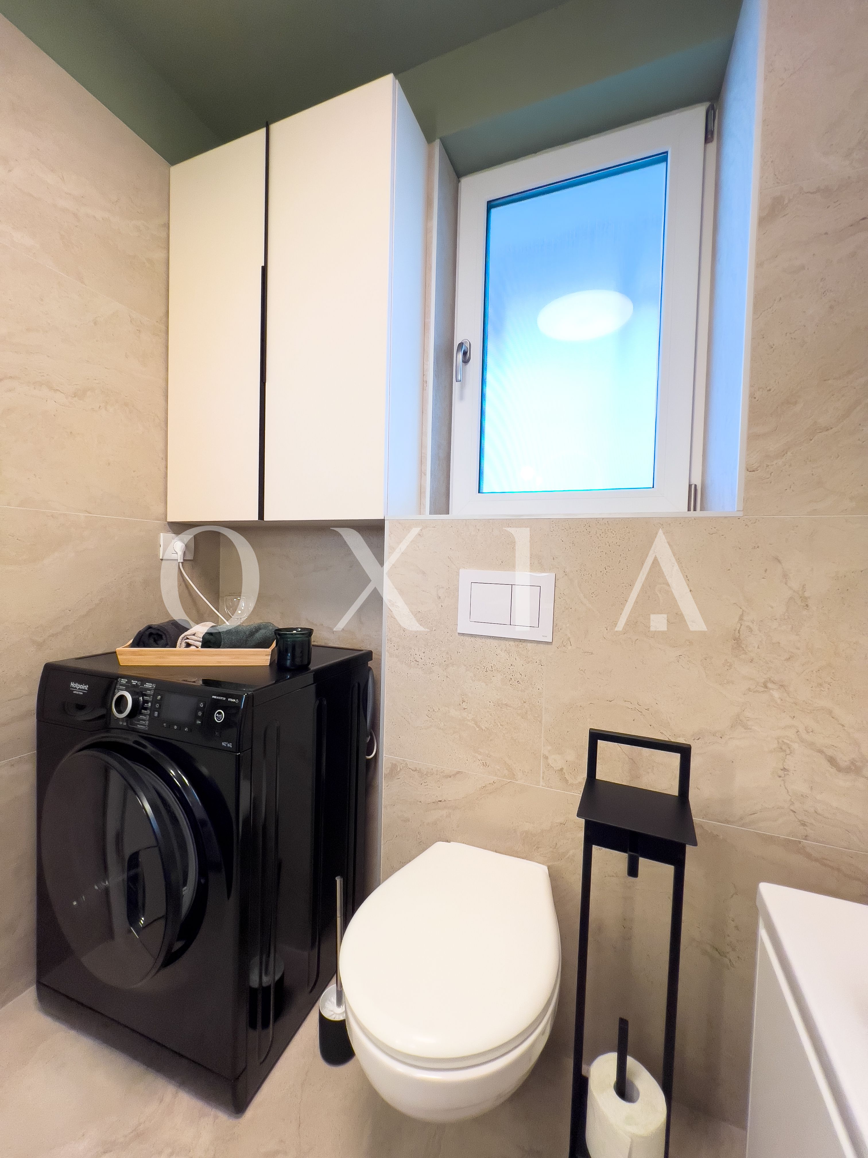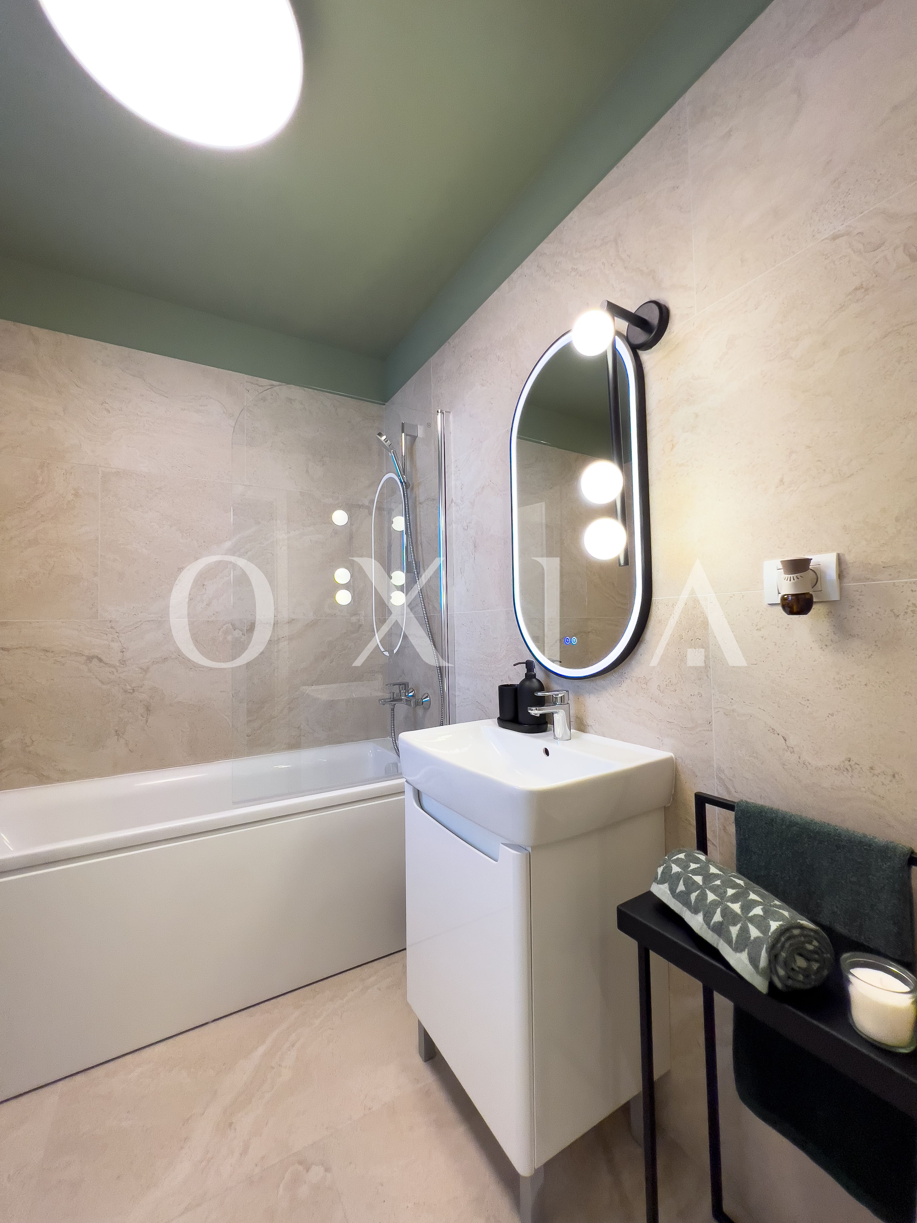 Apartamentul pune accent pe calitate, avand amenajari premium: gresie/faianta de top, ferestre PVC cu geam termopan, usi interioare din MDF, usa de intrare metalica, vopsea lavabila de calitate superioara.