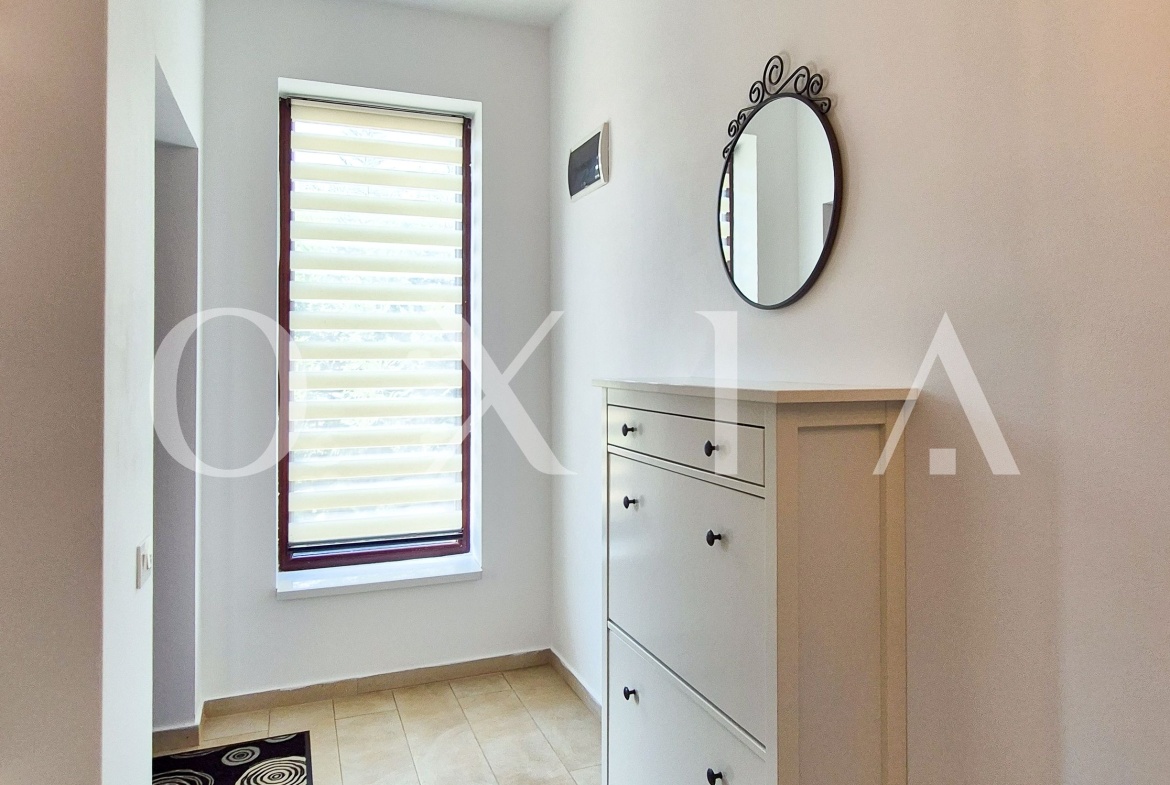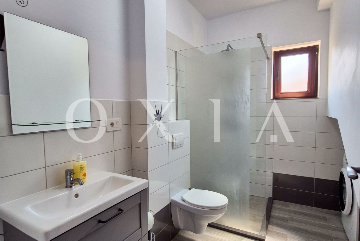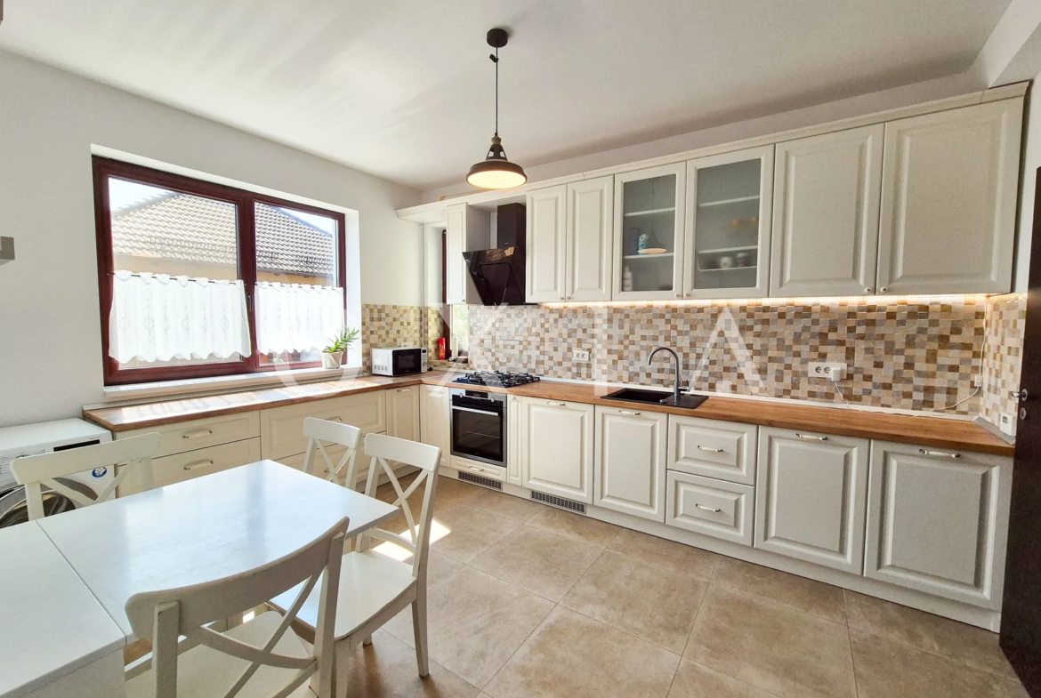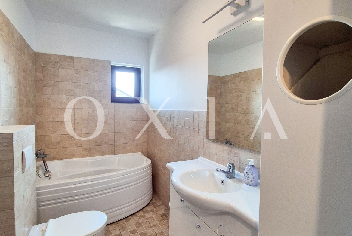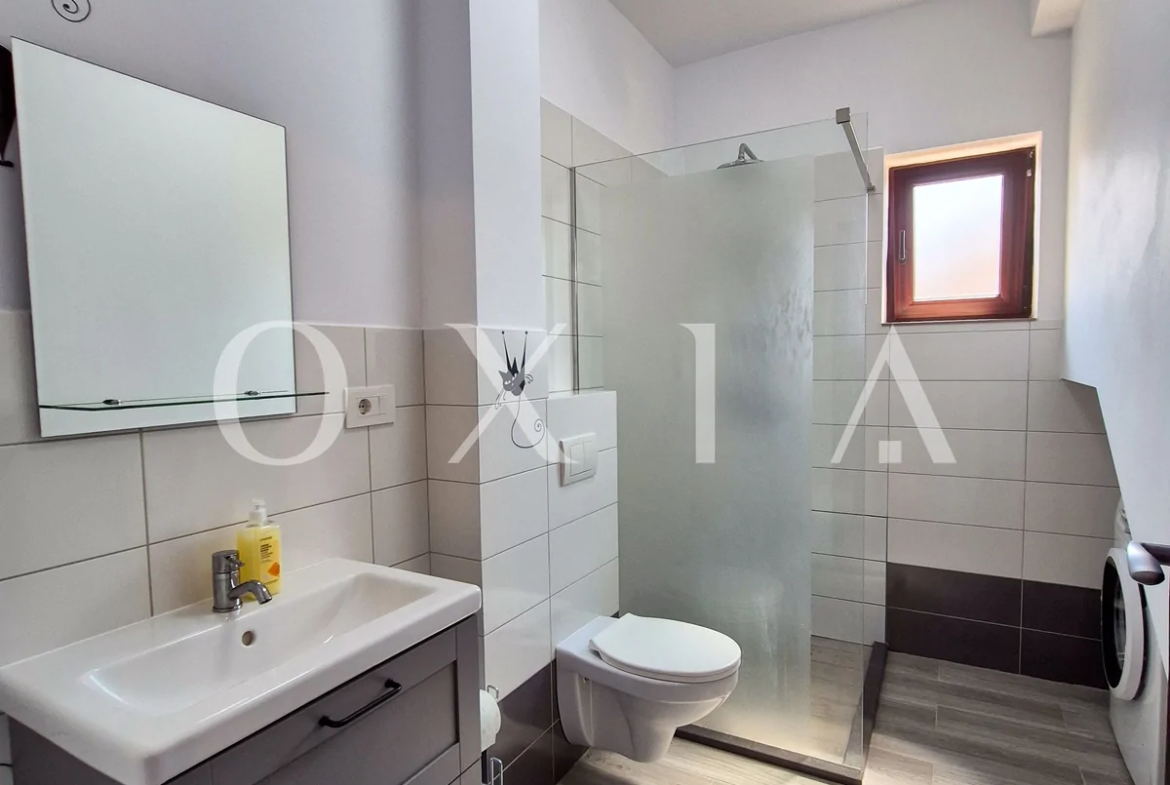 Dispune de finisaje moderne: gresie, faianta, parchet laminat, usi interior din lemn, geamuri termopan.