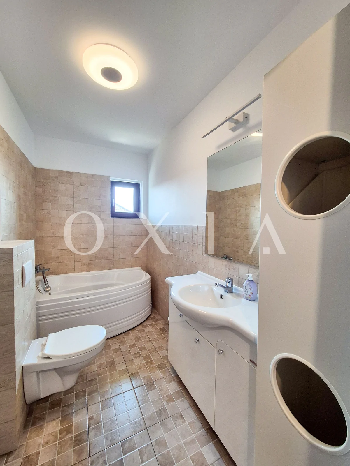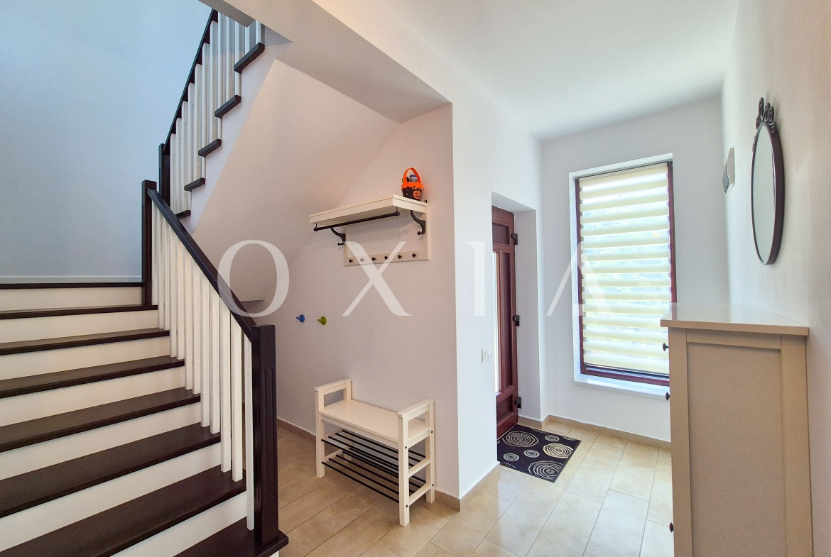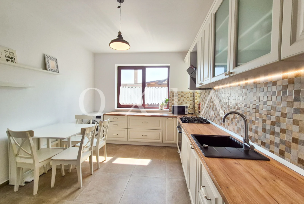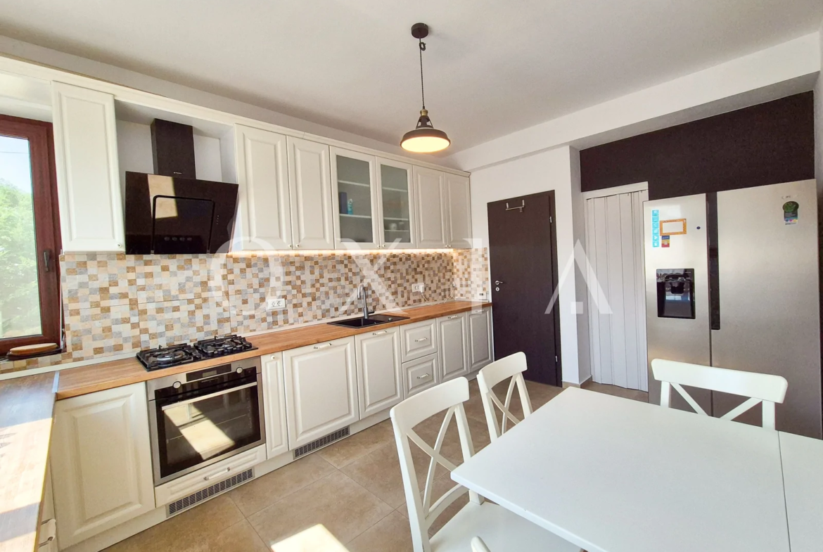 Dispune de finisaje moderne: gresie, faianta, parchet laminat, usi interior din lemn, geamuri termopan.