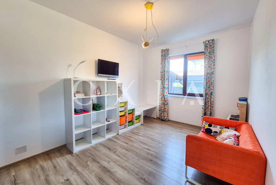 OXIA prezinta spre inchiriere casa individuala P+1E+Pod constructie 2018, situata in Mosnita Noua, in spatele magazinului Lidl, cu suprafata terenului de 627 MP, suprafata construita 160 MP, suparafa utila 140 MP, compartimentata astfel: