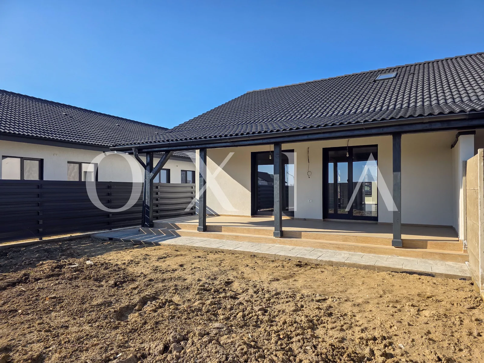 OXIA The Real Estate Agency prezinta spre vanzare 1/2 duplex in Mosnita Noua, in spatele salii de evenimente Valery, cu suprafata terenului de 275 mp, suprafata construita la sol de aproximativ 80 mp, suprafata utila de 66 mp + mansarda de 32 mp + terasa de 18 mp, compartimentat astfel:
