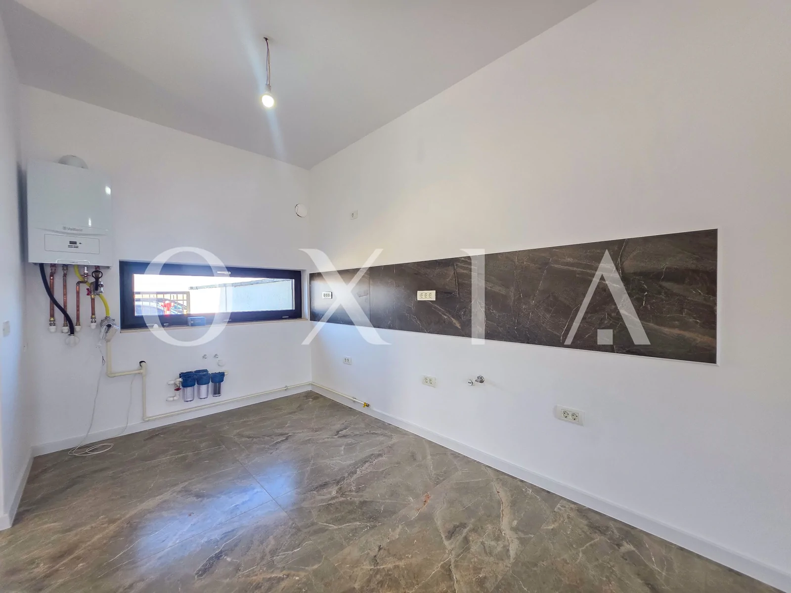Incalzirea se realizeaza prin pardoseala, cu ajutorul centralei proprii pe gaz Vaillant.