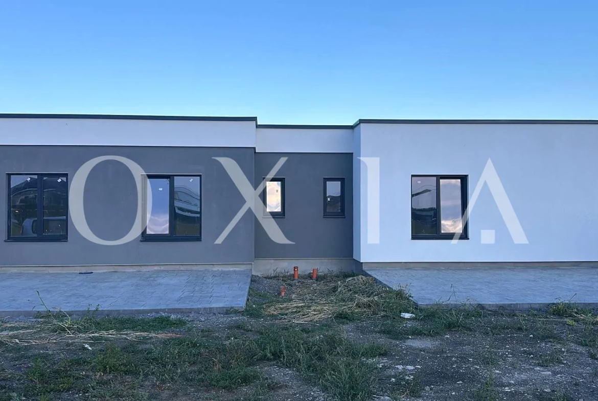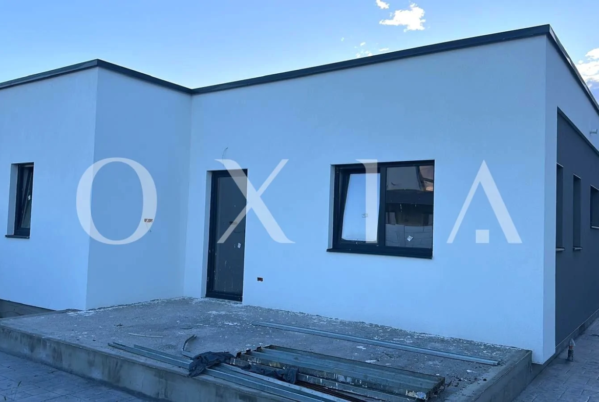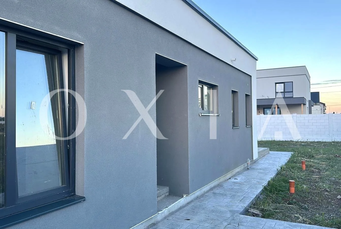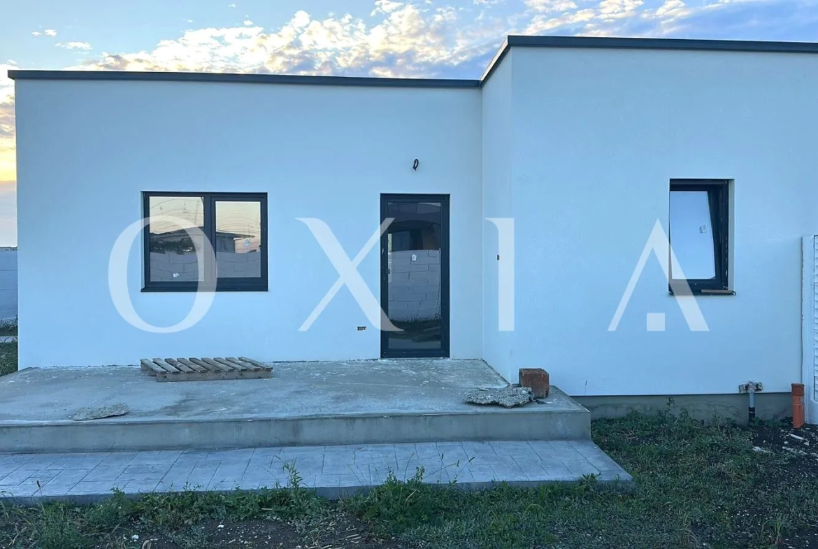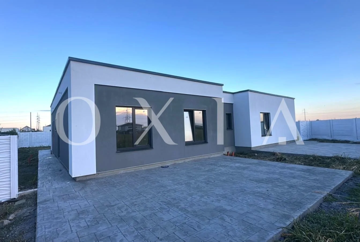 Casa este construita din caramida poroterm, izolata cu polistiren de 10 cm, acoperis tip terasa.