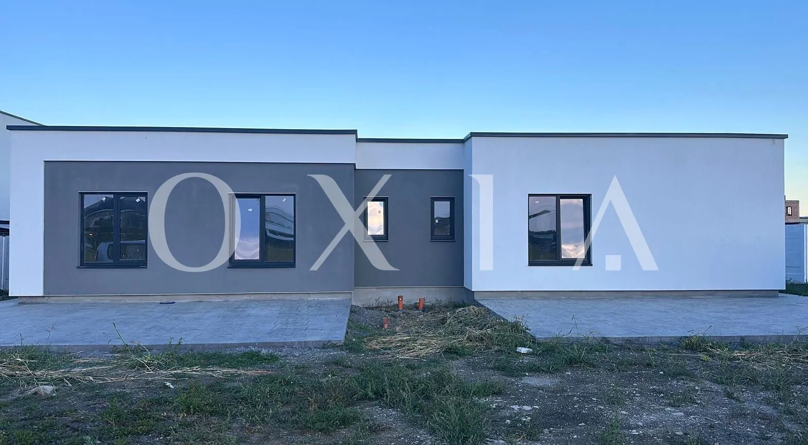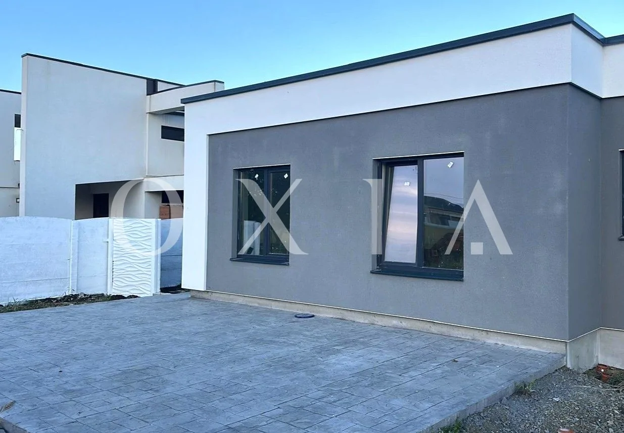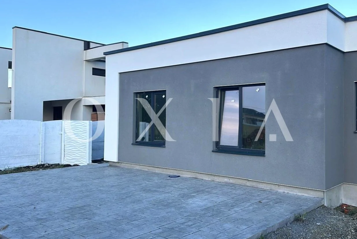 OXIA The Real Estate Agency prezinta spre vanzare 1/2 duplex in Mosnita Noua, in spatele supermarketului Kaufland, cu suprafata terenului de 344 mp, suprafata construita la sol de 115 mp, suprafata utila de 92 mp + terasa de 18 mp, compartimentat astfel: