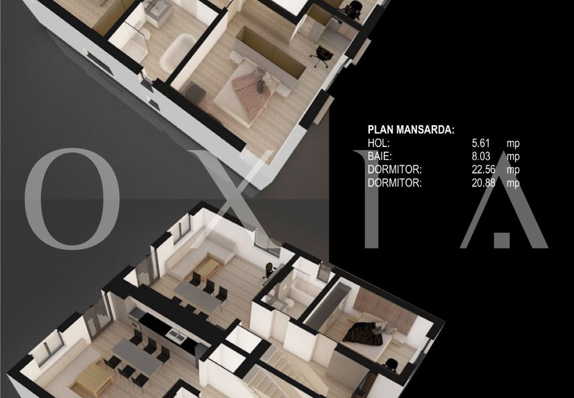 OXIA The Real Estate Agency prezinta spre vanzare casa in unitate tip dulpex cu regim de inaltime P+M , in Mosnita Veche in apropiere de LIdl, cu suprafata terenului de 250 MP, suprafata utila de 115 MP , compartimentata astfel: