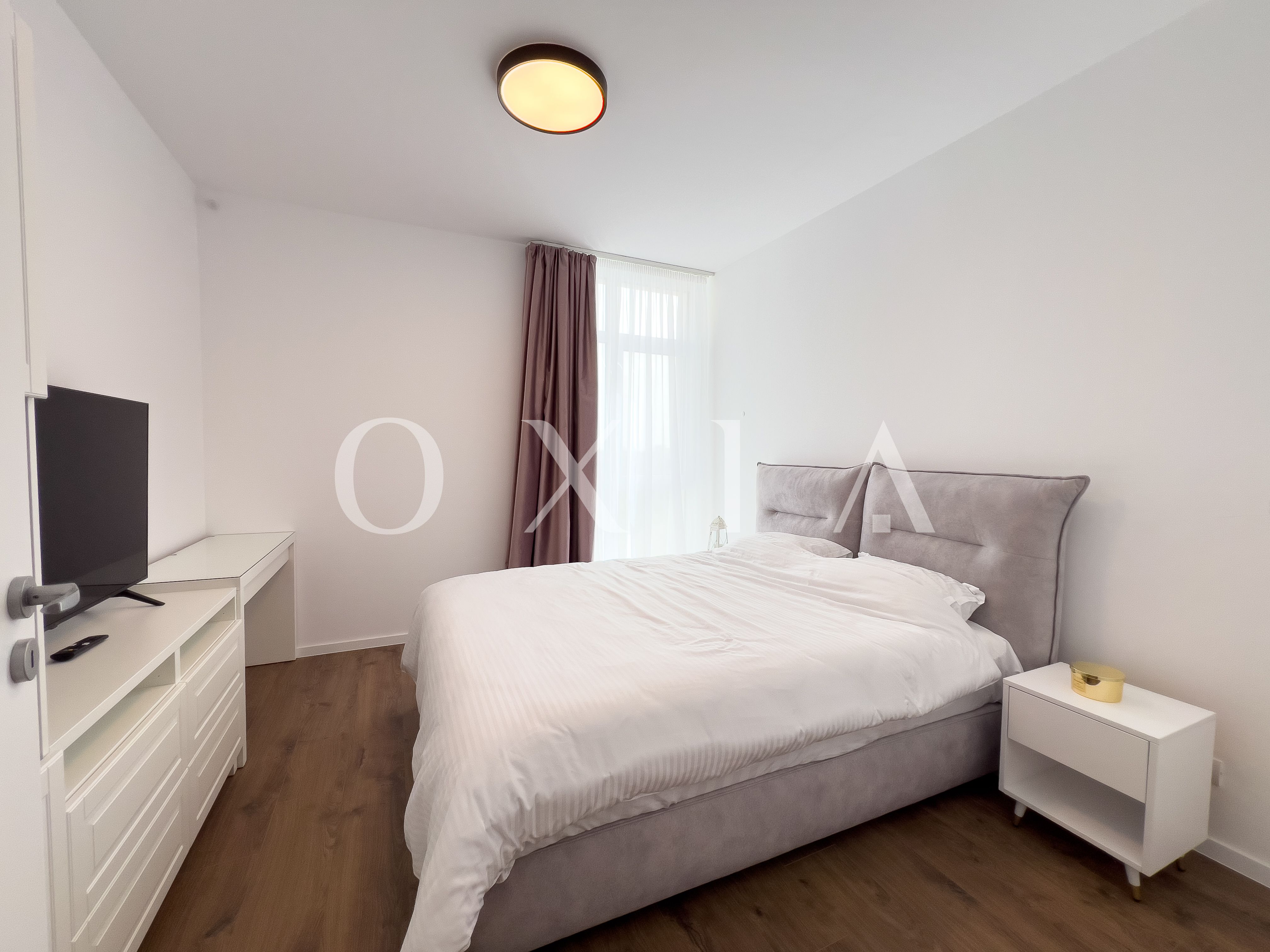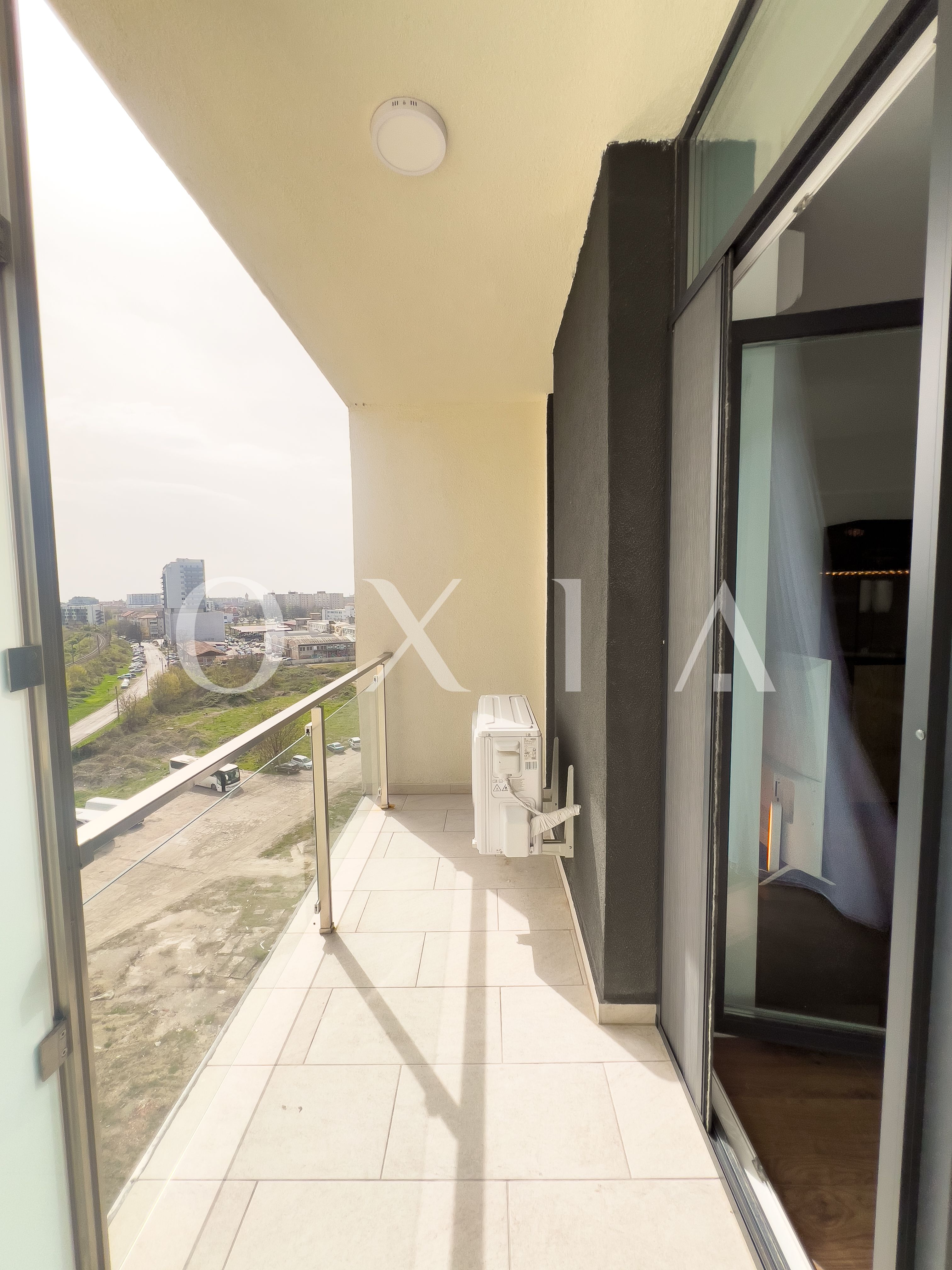 OXIA prezinta spre inchiriere apartament cu doua camere in Timisoara, zona Centrala-Iulius Town, situat in complexul rezidential Nord One, la etajul 8 din 9 (imobil cu doua ascensoare), decoomandat, cu suprafata de 60 MP utili + 7 MP balcon, compartimentat astfel: