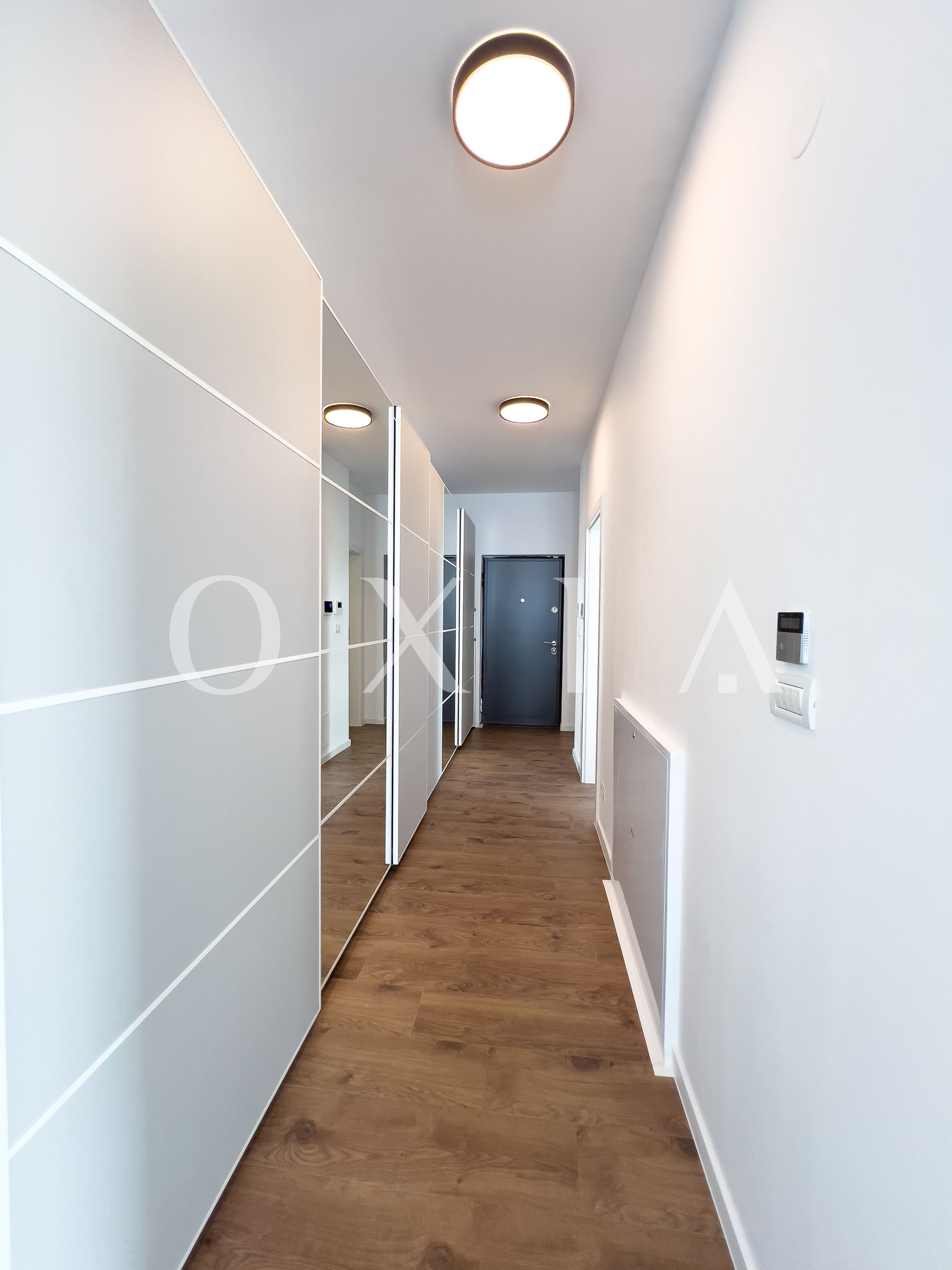 Apartamentul este nou, la prima inchiriere si beneficiaza de amenajari moderne: usa intarare metalica antiefractie, usi interioare MDF, placi de gresie/faianta, parchet laminat, vopsea lavabila, ferestre PVC cu gem termopan, automatizari , sistem de alarma cu decuplare automata in caz de urgenta, etc.