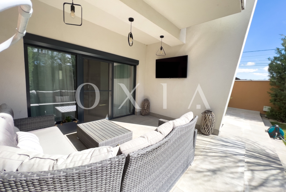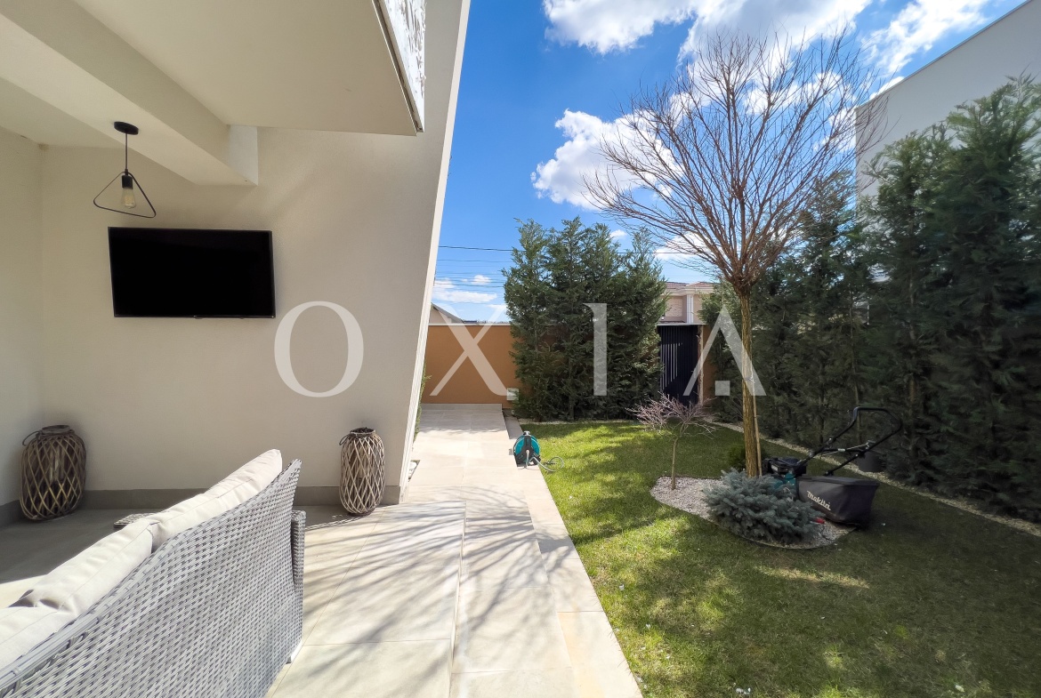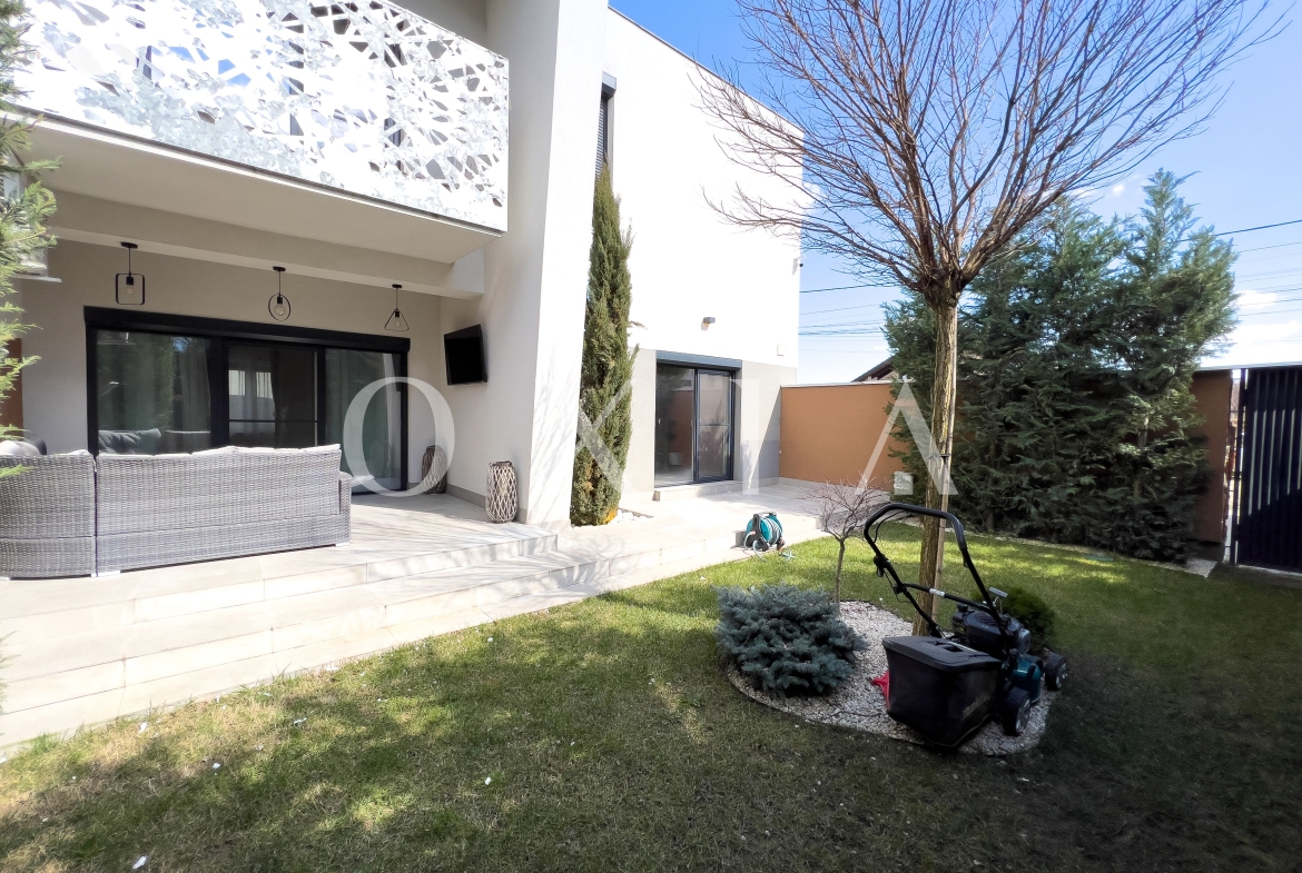 Casa beneficiaza de amenajari moderne, sistem de alarma, supraveghere video, 2 cai de acces, 2 locuri proprii de parcare.