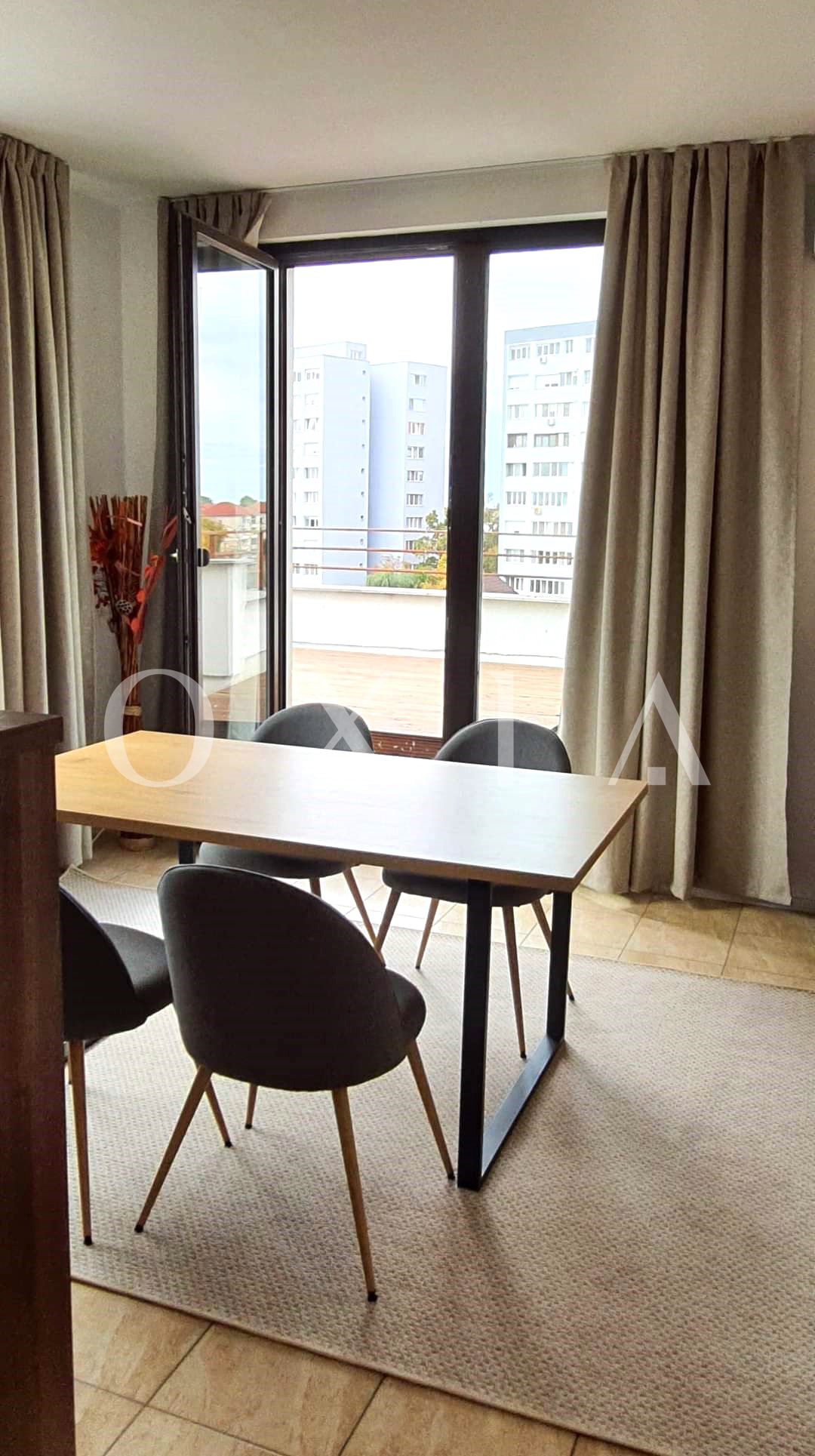 OXIA prezinta spre inchiriere penthouse in Timisoara, zona Sagului, situat in imobil din2010, la etajul 4 cu lift, cu suprafata de aproximativ 100 MP utili + 40 MP terasa, compartimentat astfel: