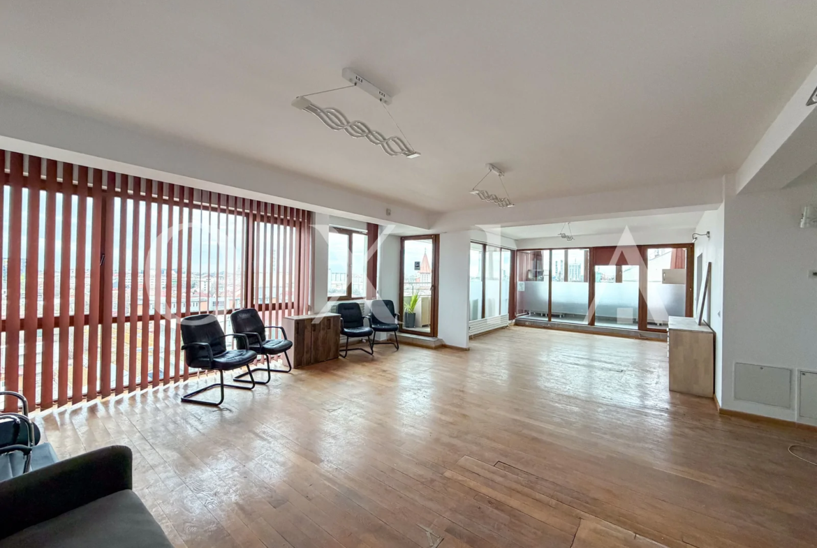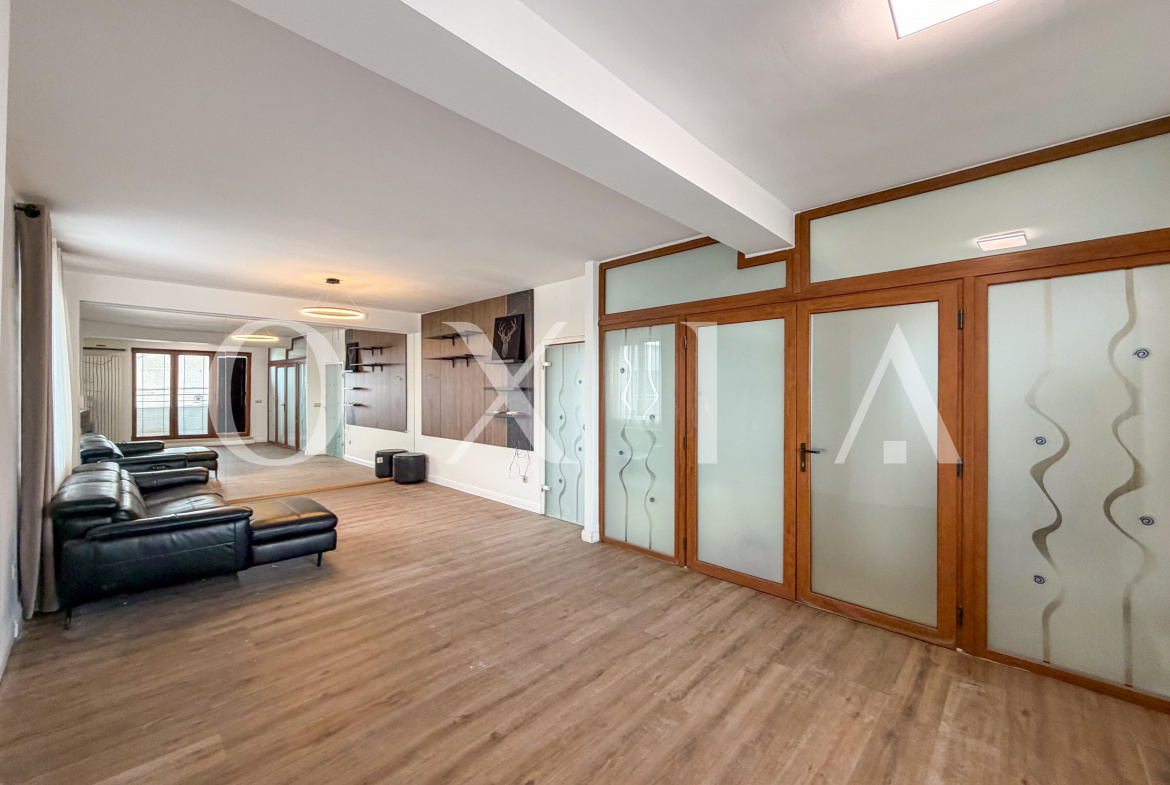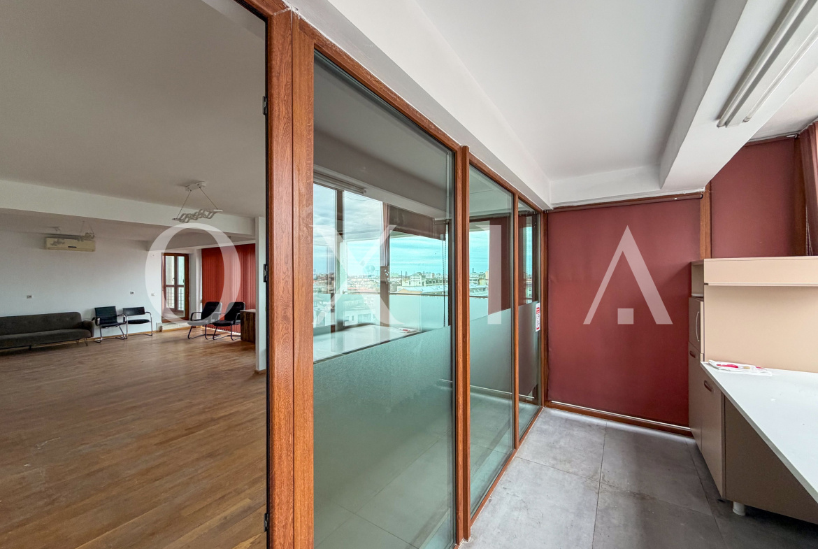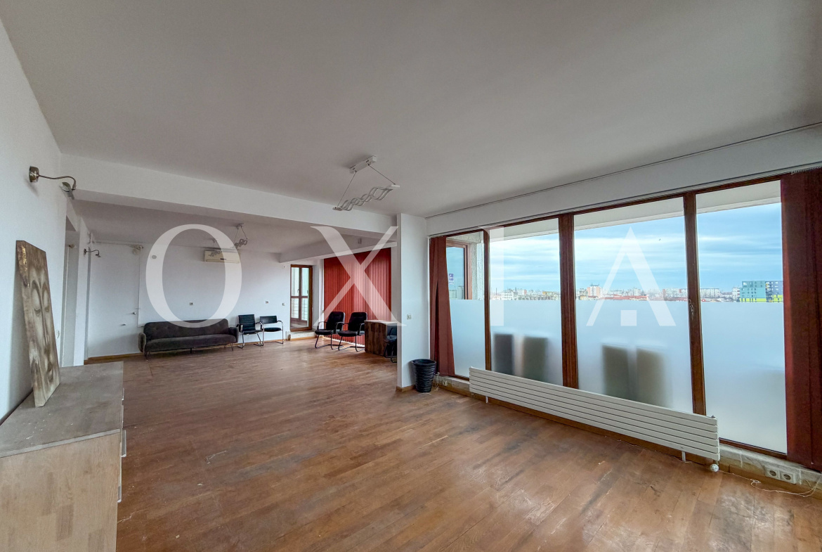 Proprietatea dispune de o suprafata utila de 143 mp, la care se adauga o terasa generoasa de 125 mp si doua balcoane in suprafata totala de 15 mp. Configuratia spatiului si suprafetele vitrate ofera luminozitate naturala si un potential excelent atat pentru locuire, cat si pentru desfasurarea unor activitati comerciale sau de birouri.