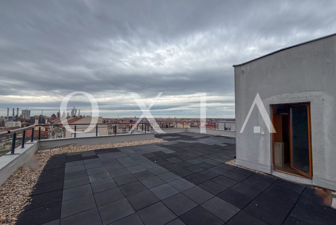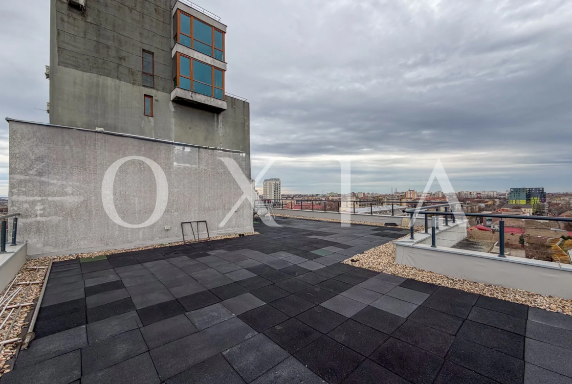 OXIA The Real Estate Agency prezinta spre inchiriere un penthouse, structurat pe doua niveluri (etajele 7 si 8), situat in Timisoara, zona Complexului Studentesc, intr-un imobil prevazut cu lift, finalizat in anul 2008.