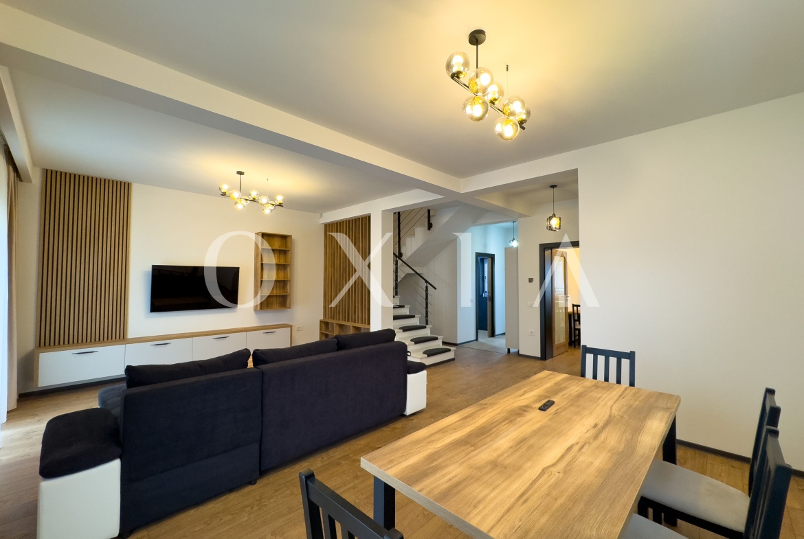 Proprietatea se inchiriaza complet mobilata si utilata, incluzand: masina de spalat vase, hota, plita, cuptor, televizoare, masina de spalat rufe cu uscator, si multe altele.