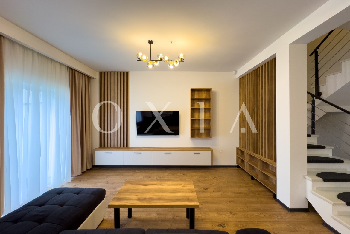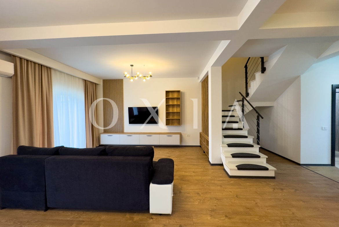 Proprietatea se inchiriaza complet mobilata si utilata, incluzand: masina de spalat vase, hota, plita, cuptor, televizoare, masina de spalat rufe cu uscator, si multe altele.